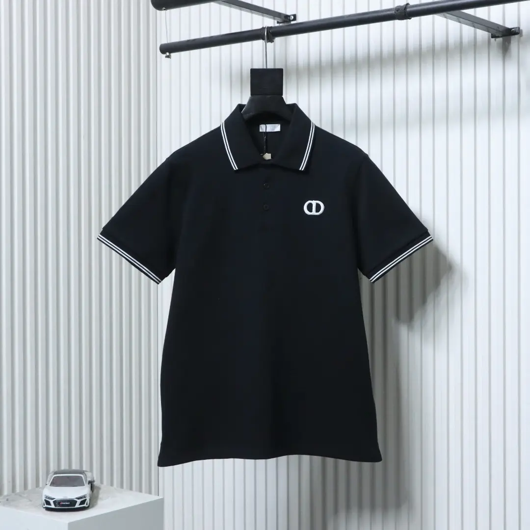 Kurzarm-Poloshirt mit farblich abgesetztem Besatz und gesticktem CD-Buchstaben XXL