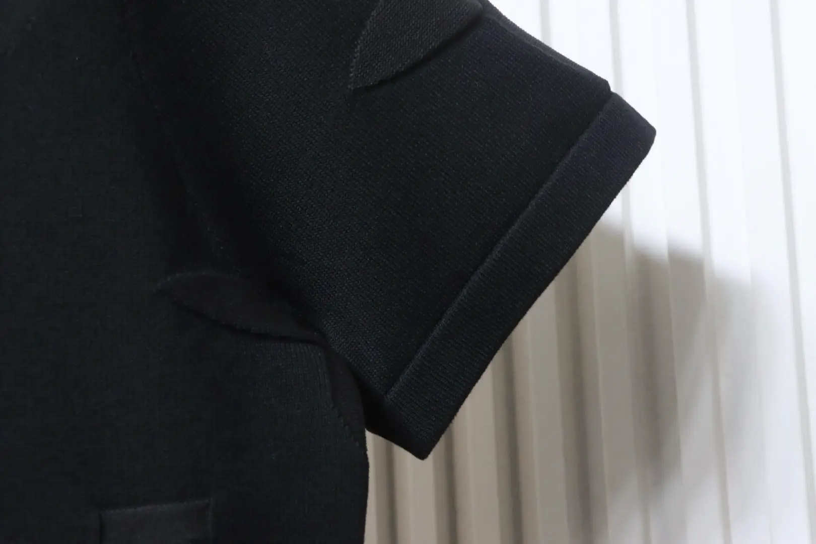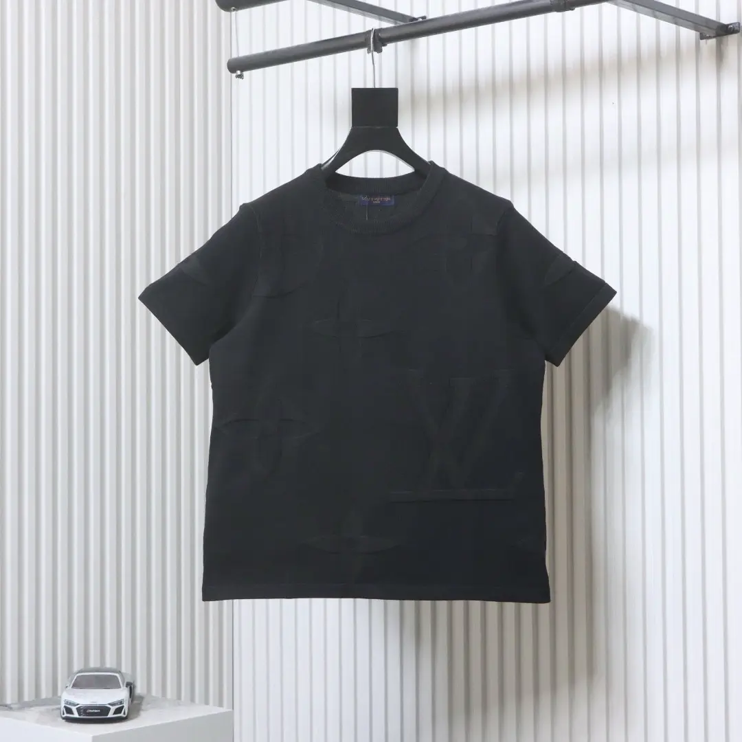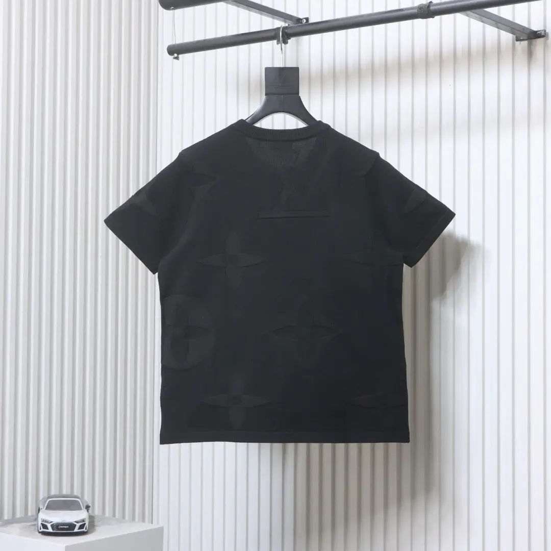 Kurzarm-T-Shirt aus dunklem Jacquard-Strick mit Monogramm