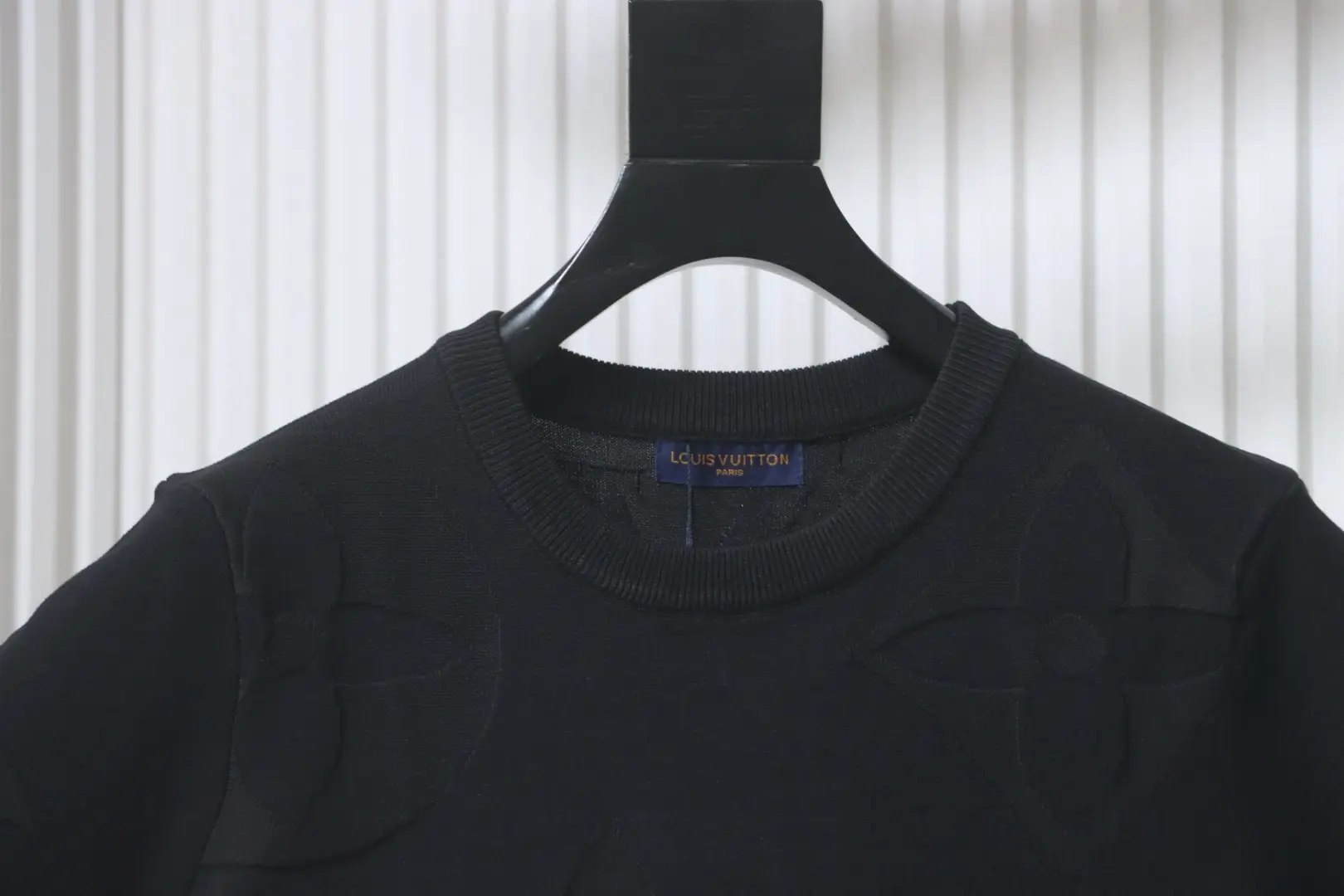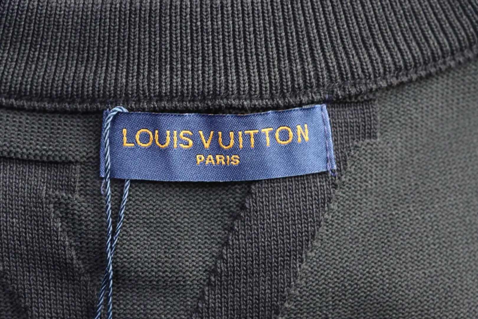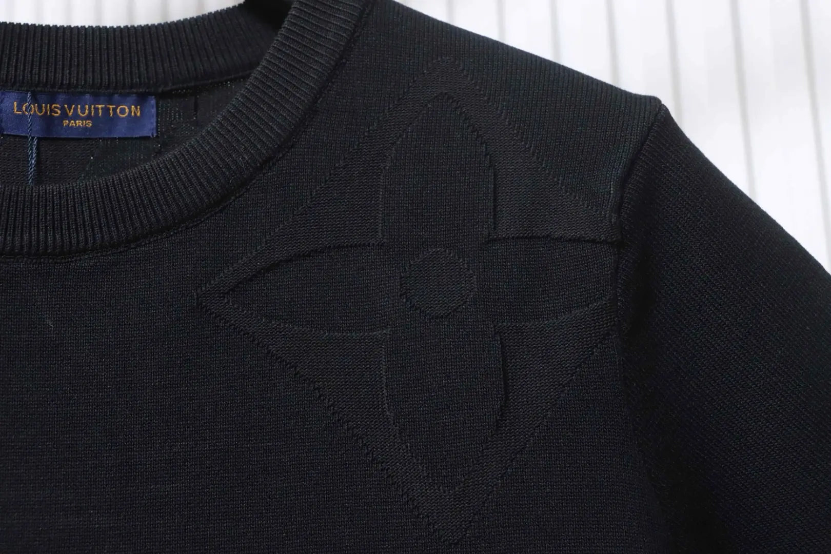 Kurzarm-T-Shirt aus dunklem Jacquard-Strick mit Monogramm