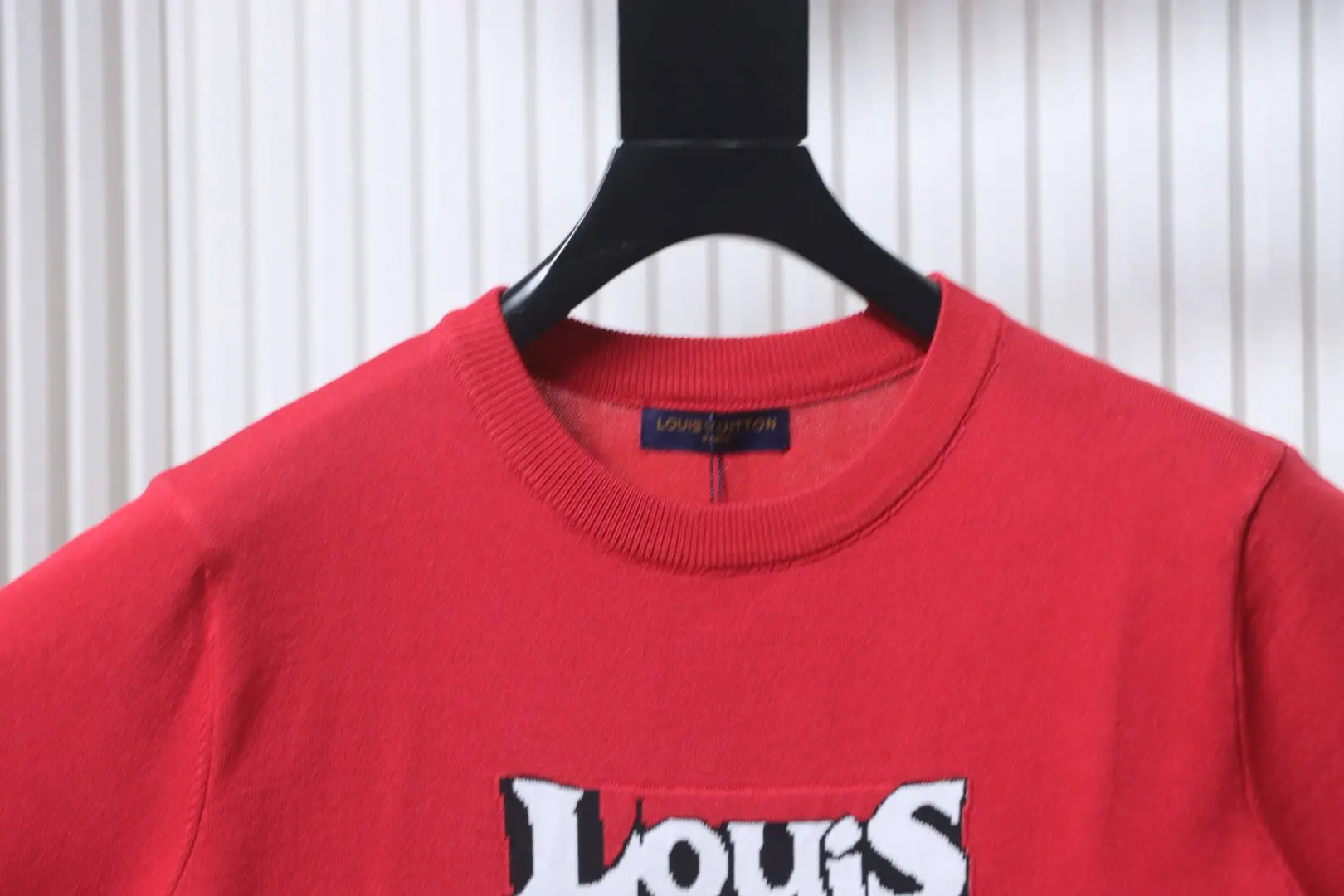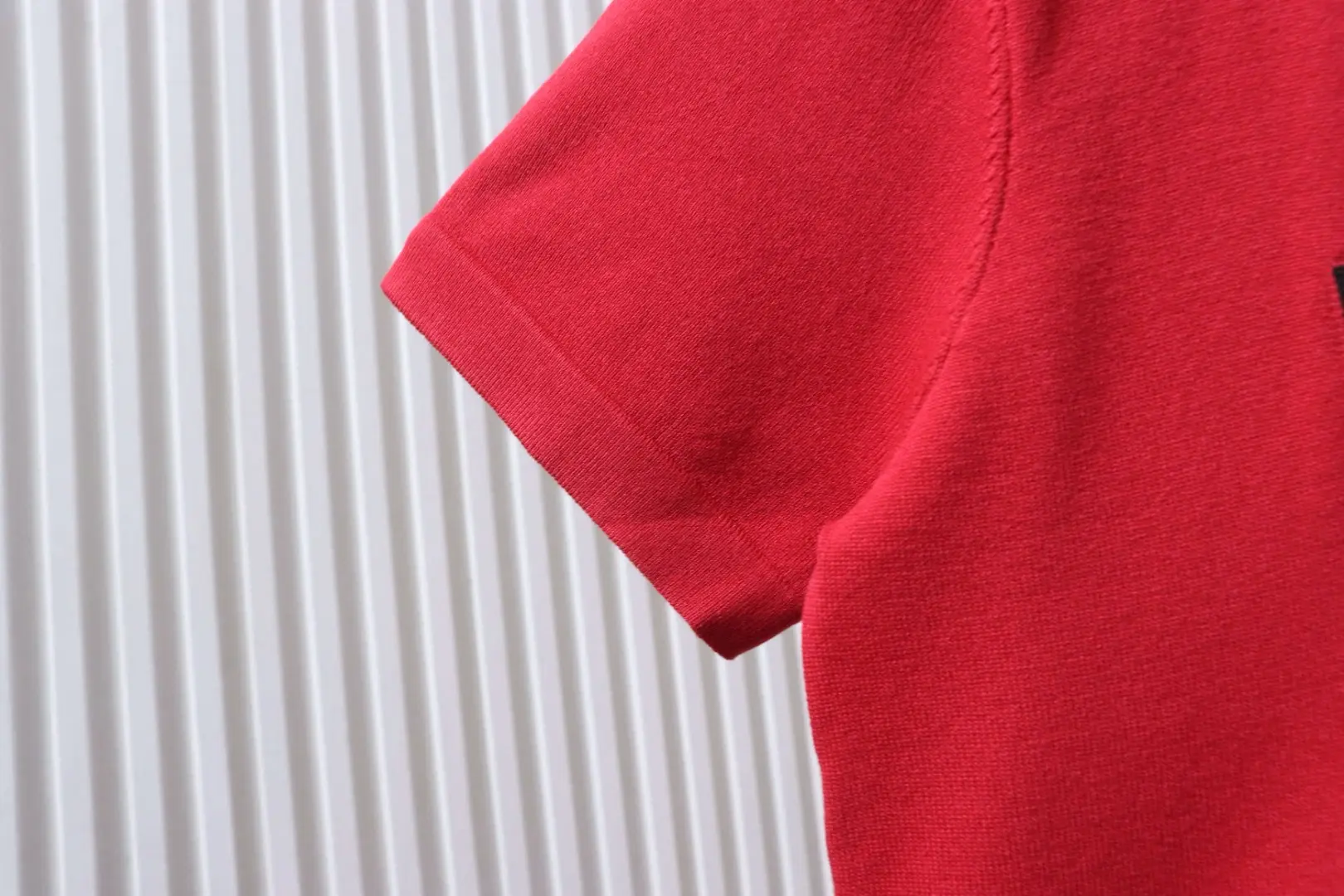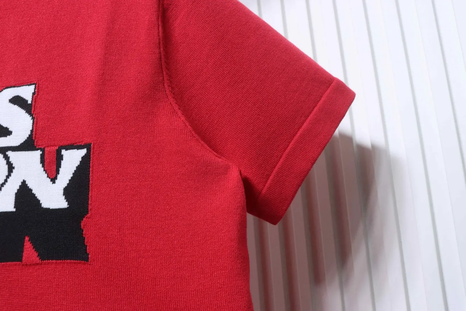 Kurzarm-T-Shirt mit Buchstabenmuster und doppelseitigem Jacquard-Strickmuster