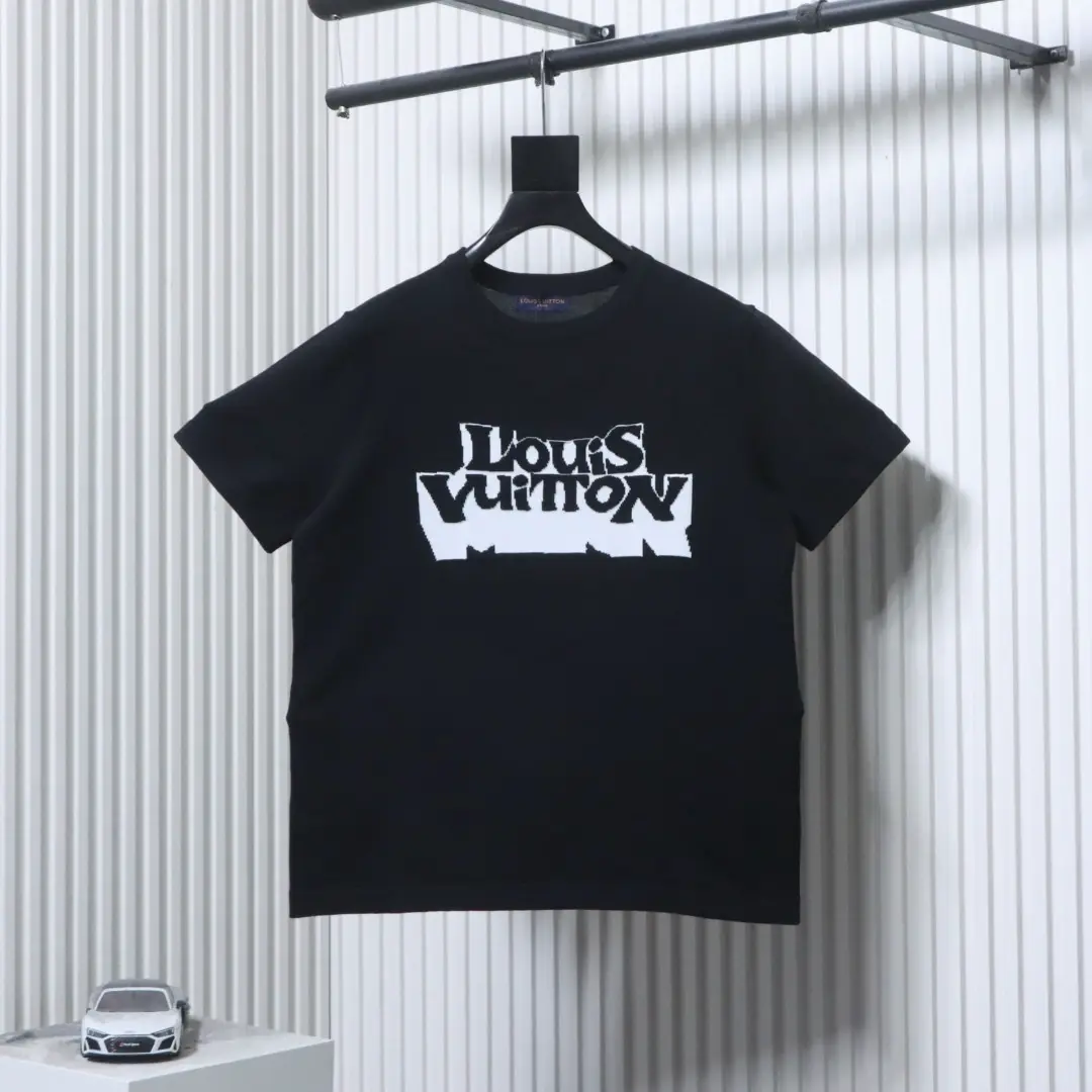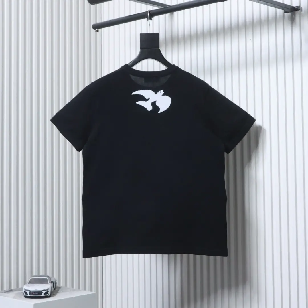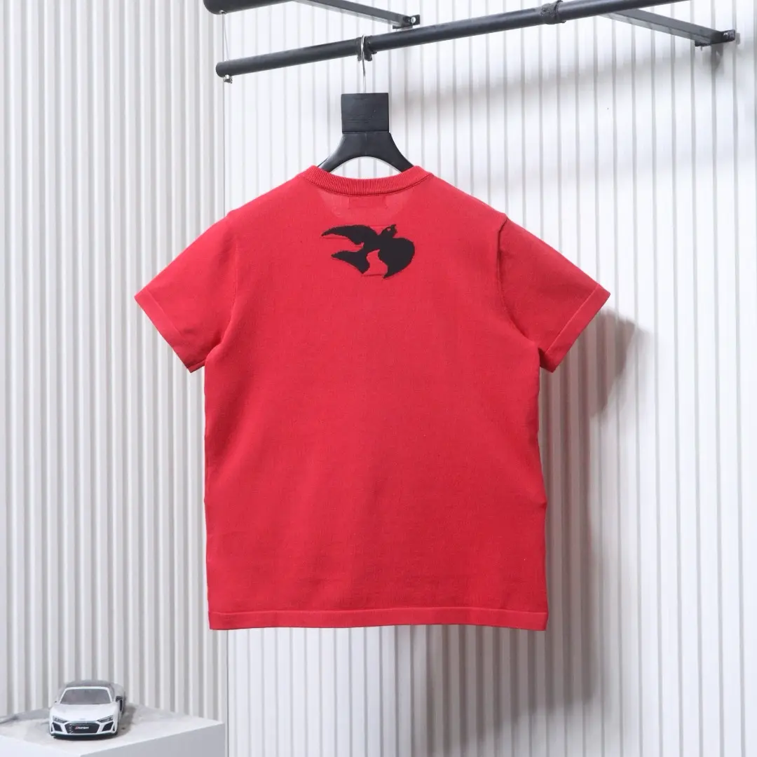 Kurzarm-T-Shirt mit Buchstabenmuster und doppelseitigem Jacquard-Strickmuster
