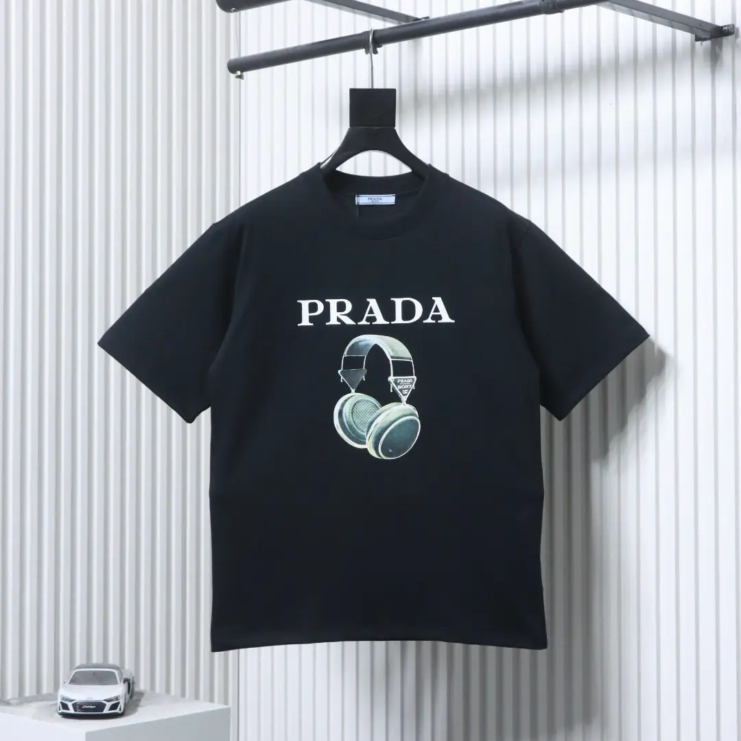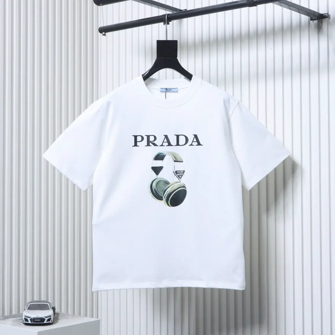 Kurzarm-T-Shirt mit digitalem Kopfhörer-Schriftzug