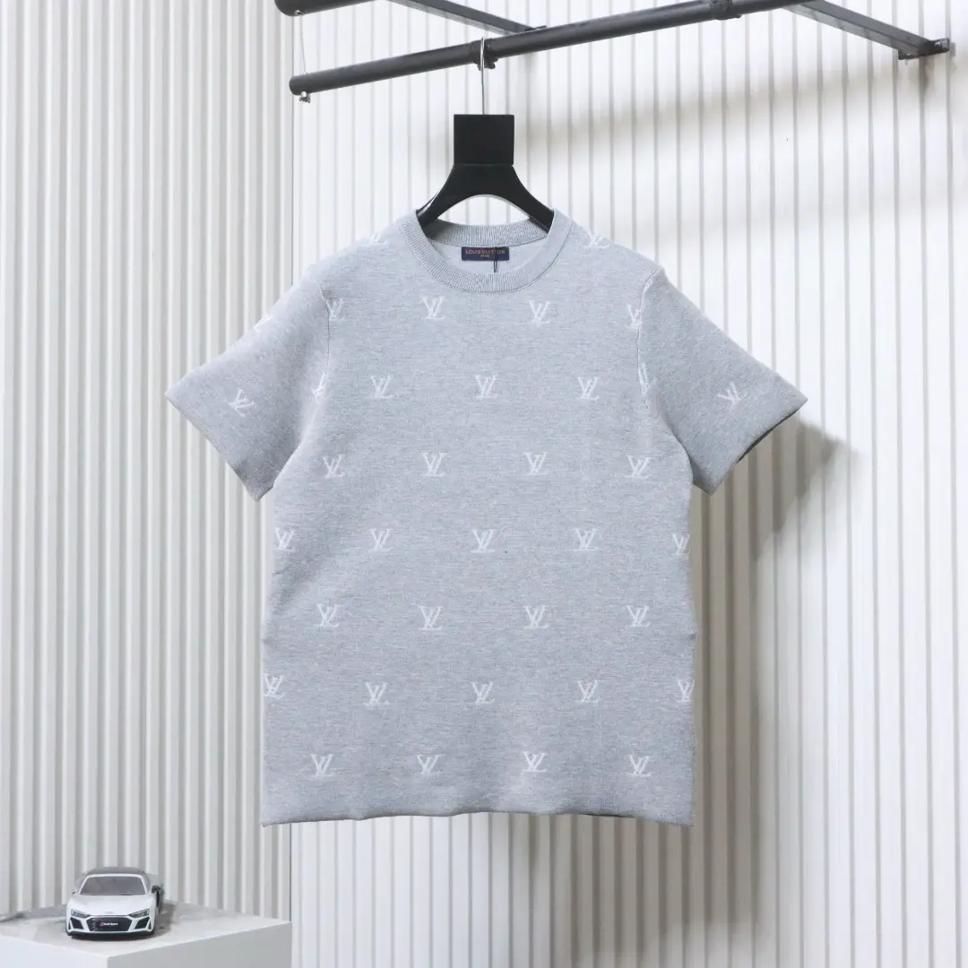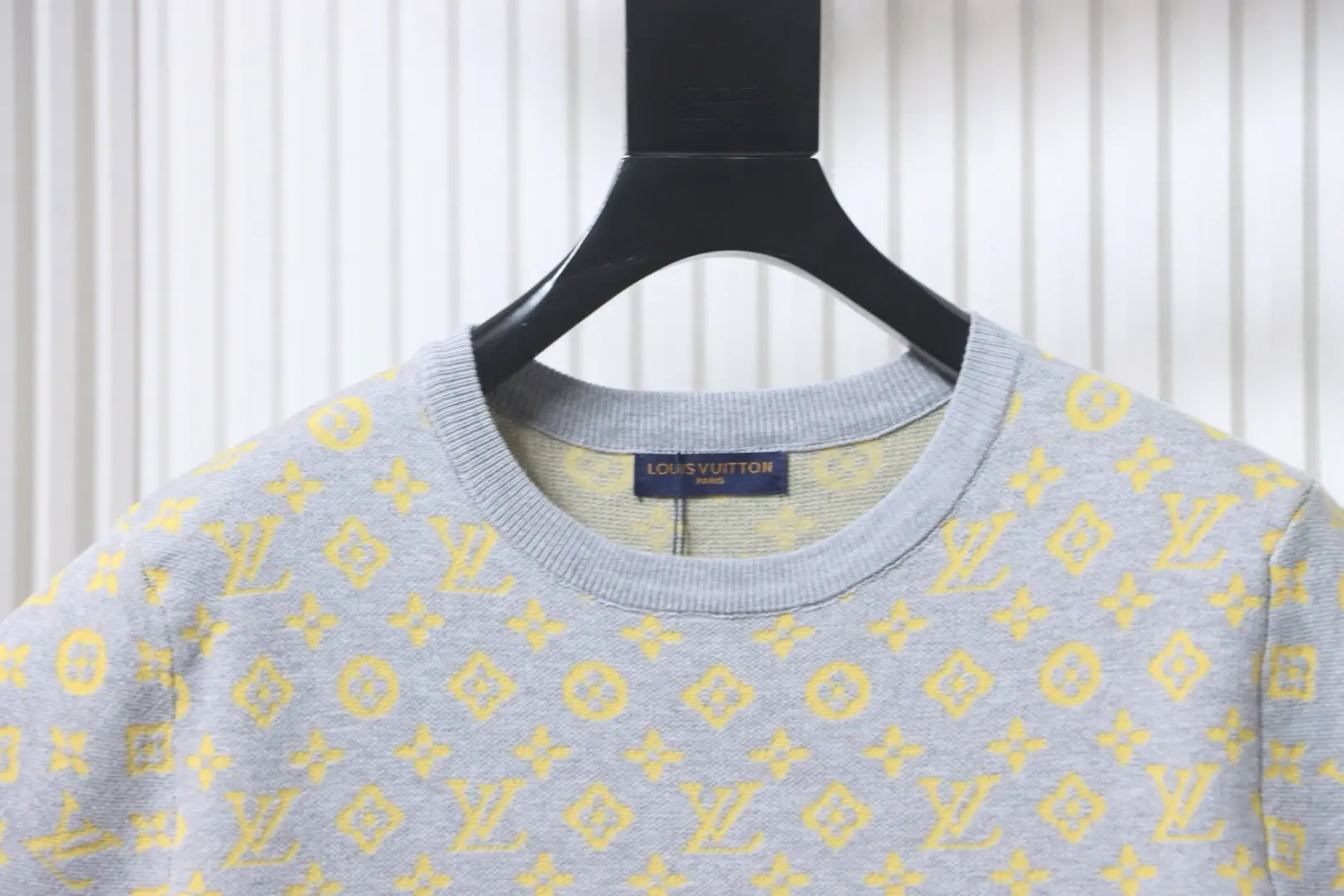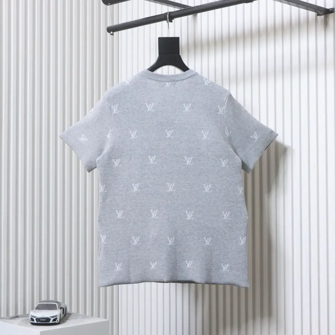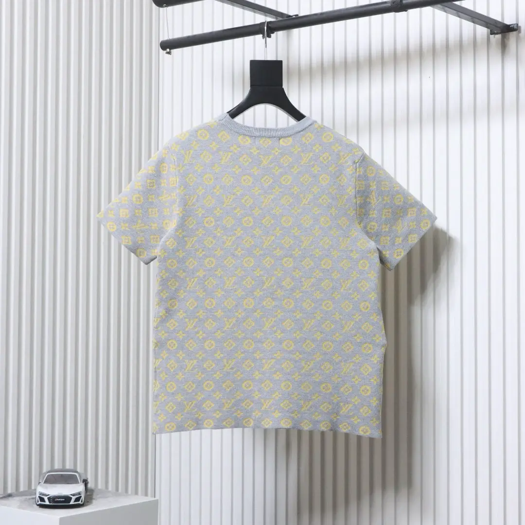 Kurzarm-T-Shirt mit durchgehendem Monogramm-Logo-Jacquard-Strickmuster