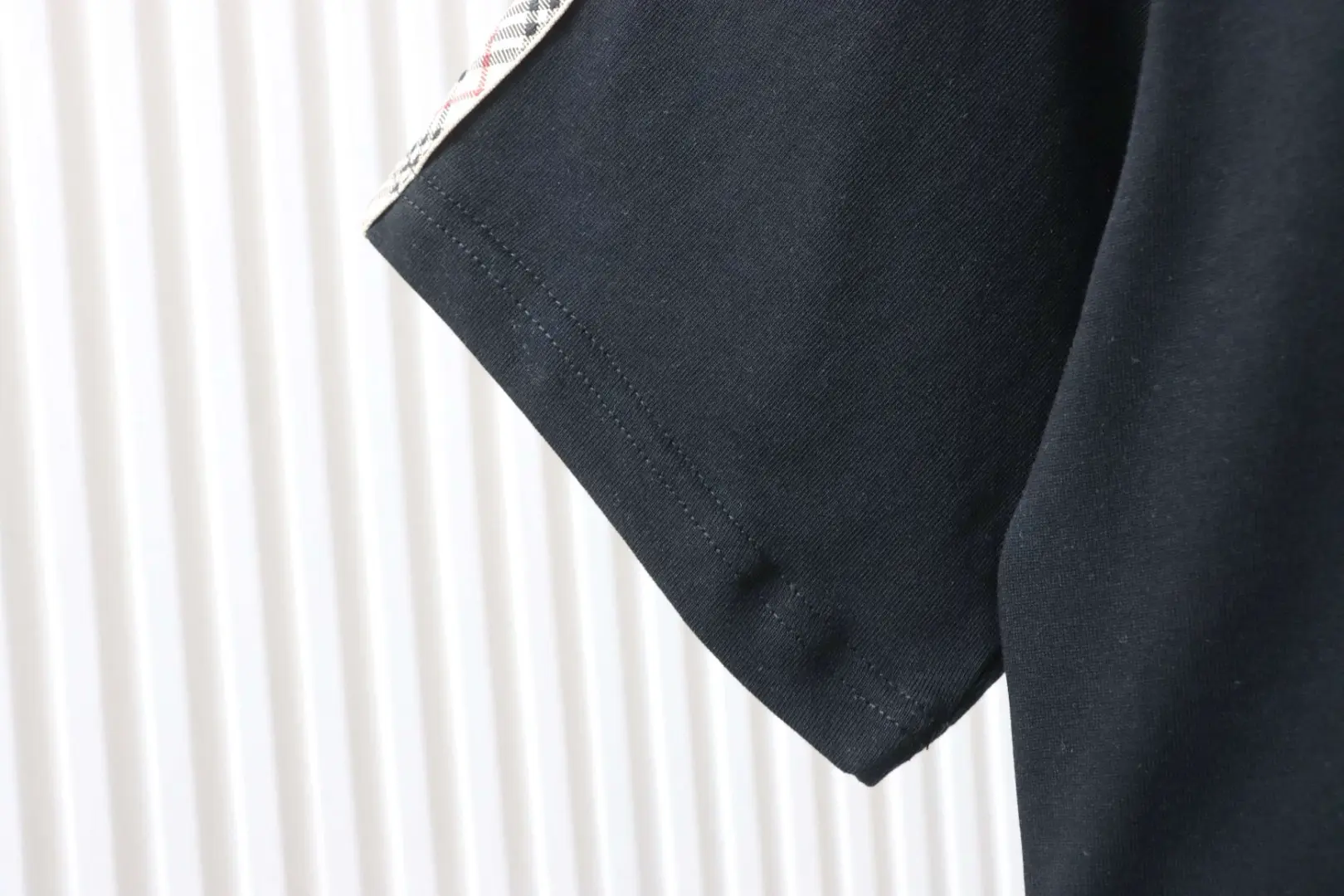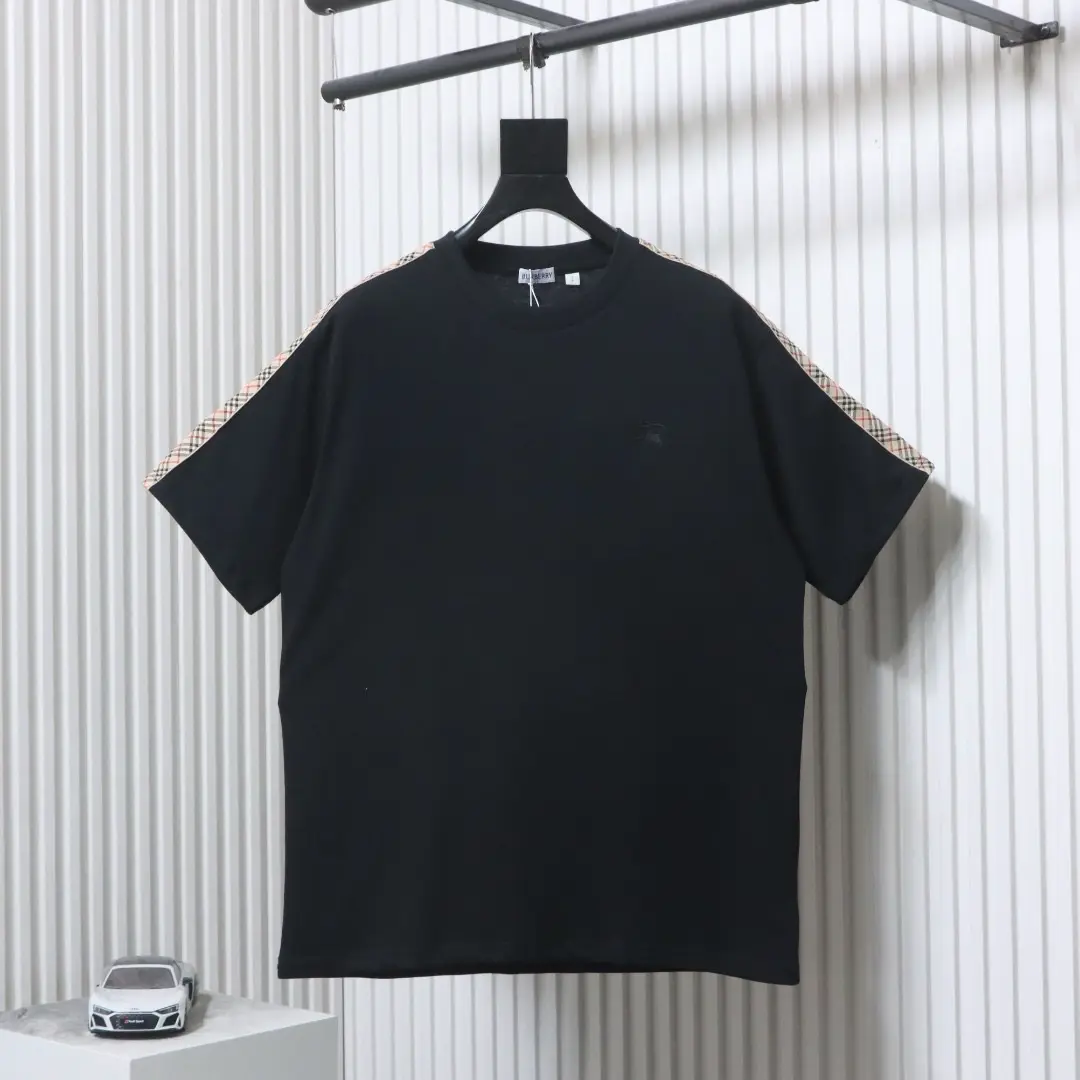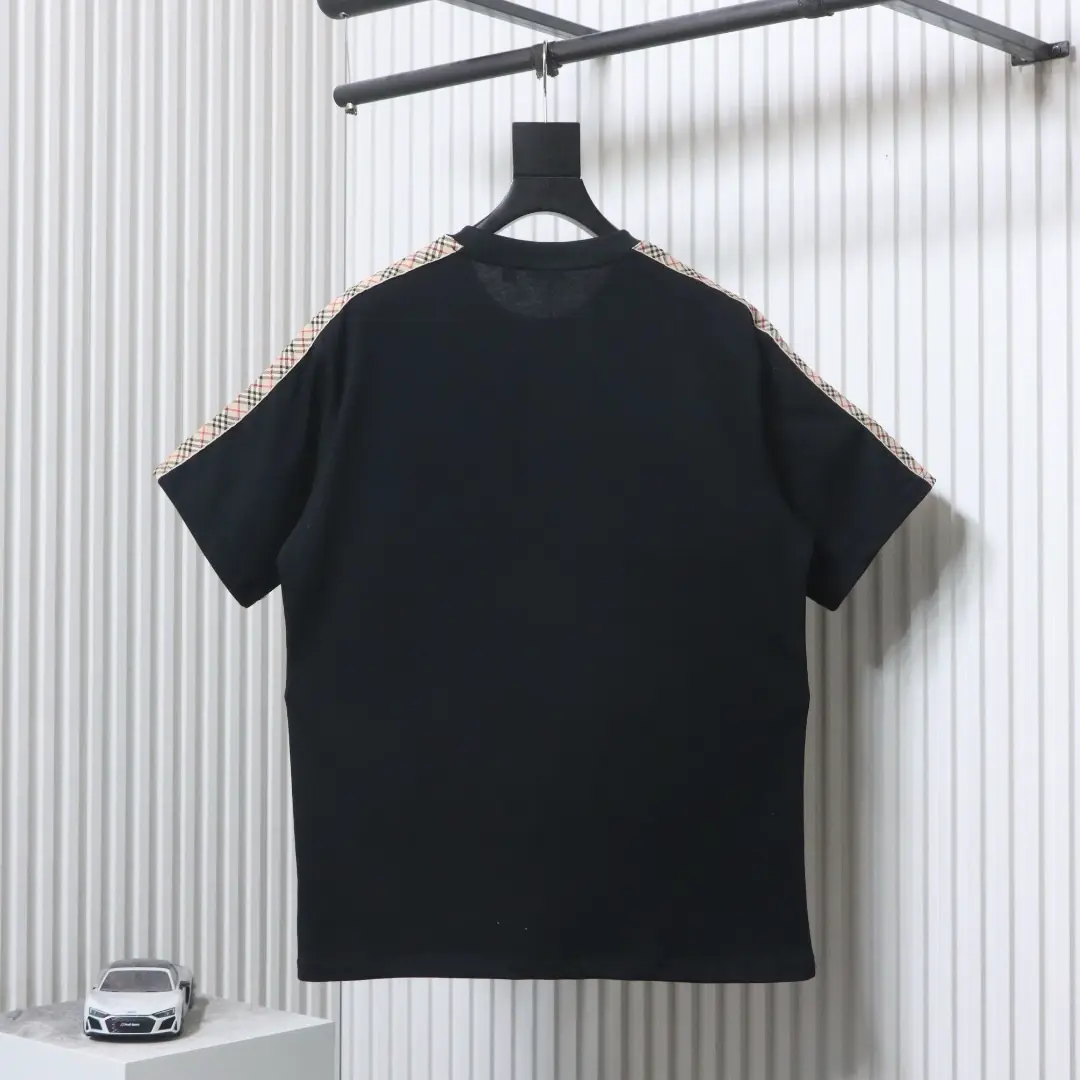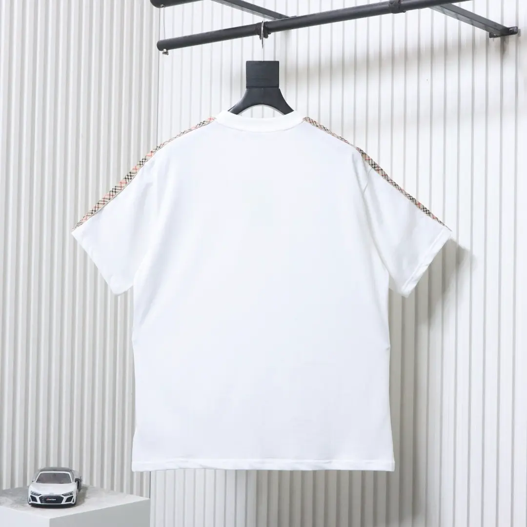Kurzarm-T-Shirt mit kariertem Webmuster und besticktem Pferd an der Schulter