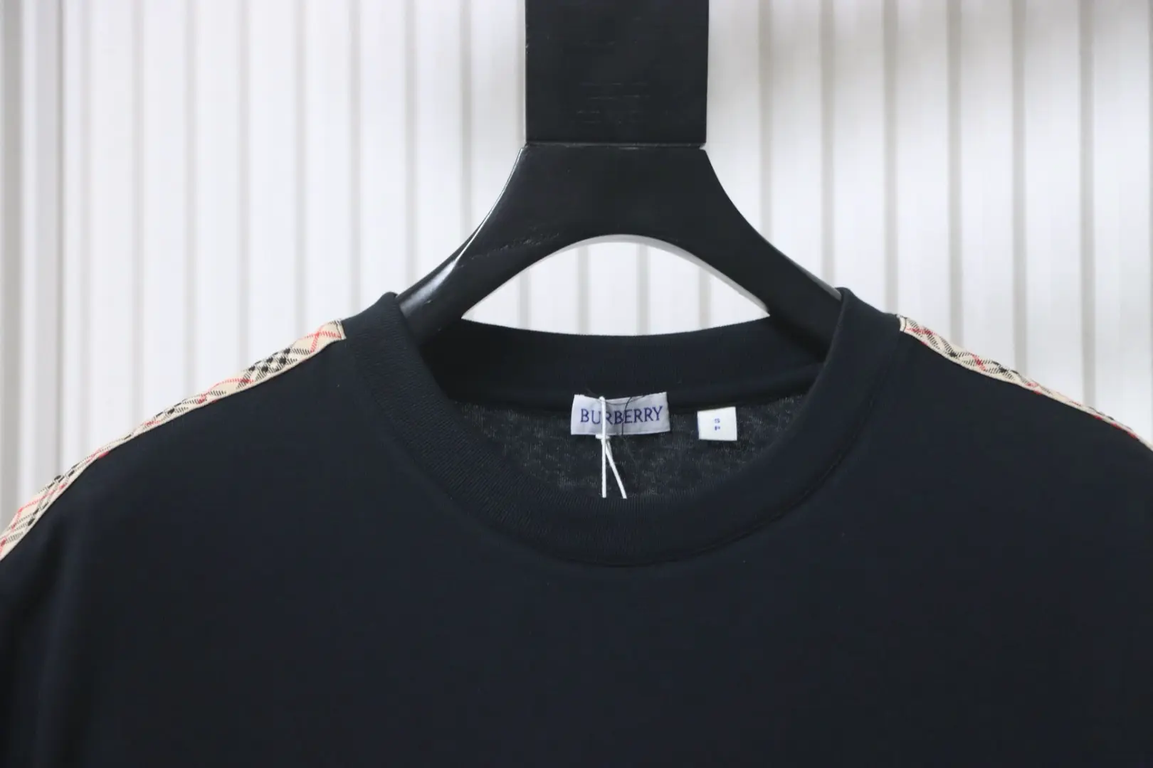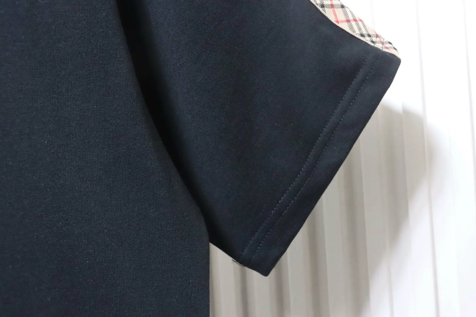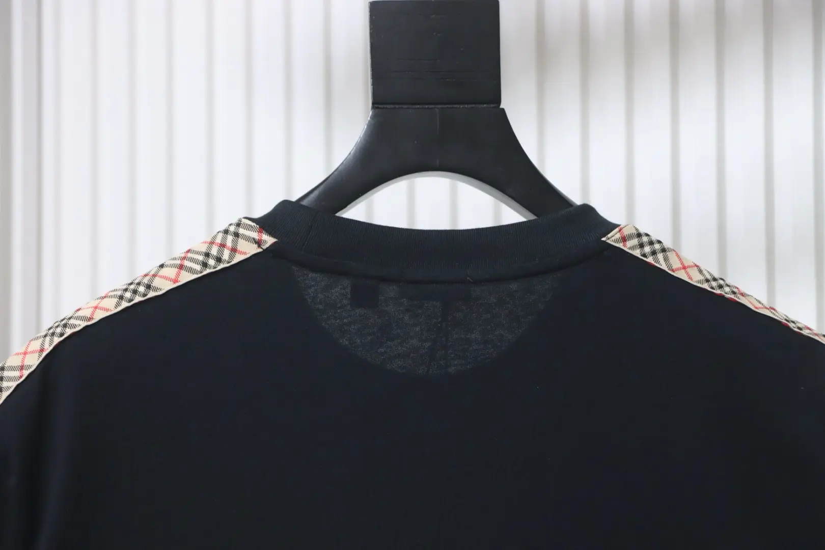 Kurzarm-T-Shirt mit kariertem Webmuster und besticktem Pferd an der Schulter