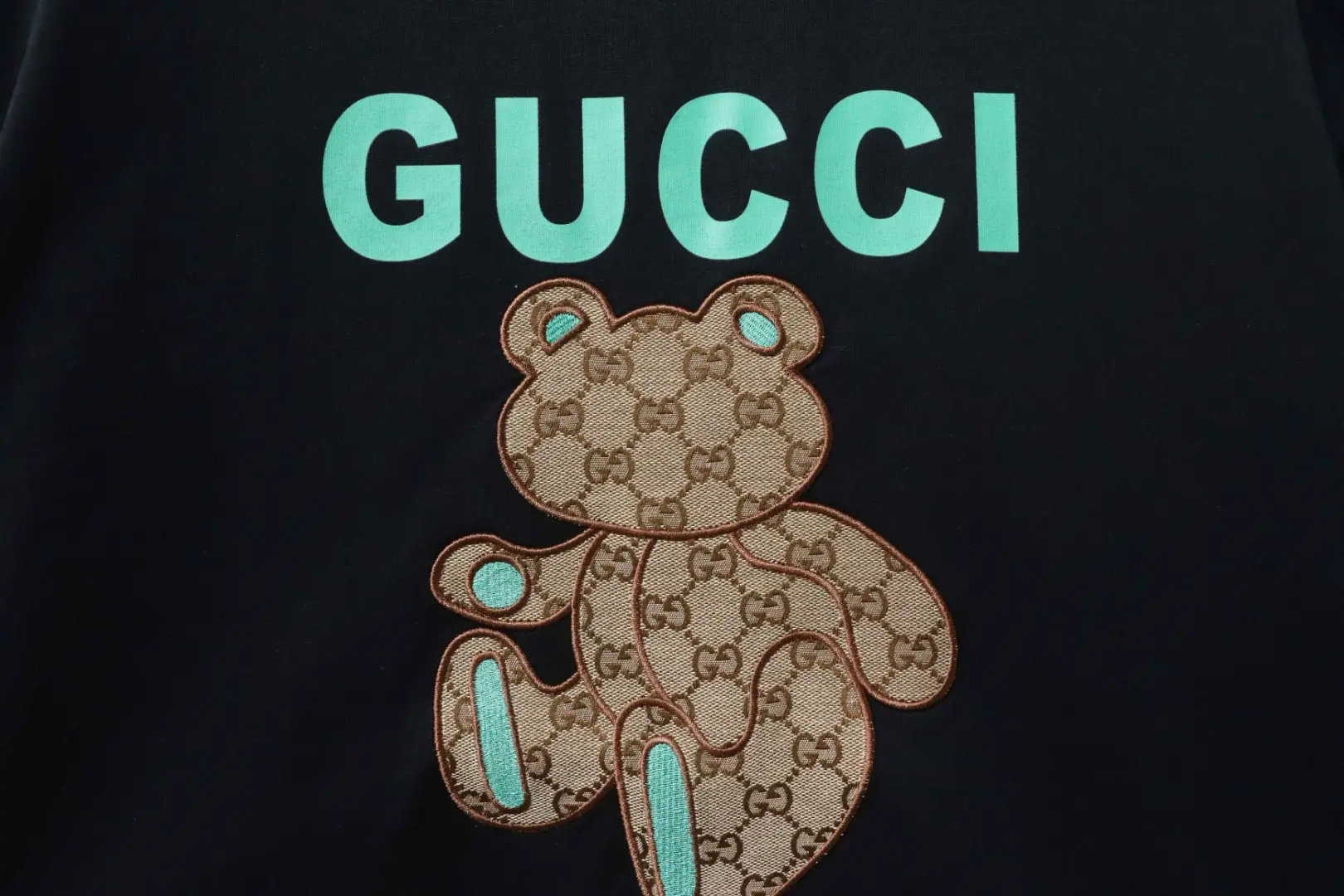 Kurzarmhemd mit floraler Applikation und Bärenstickerei