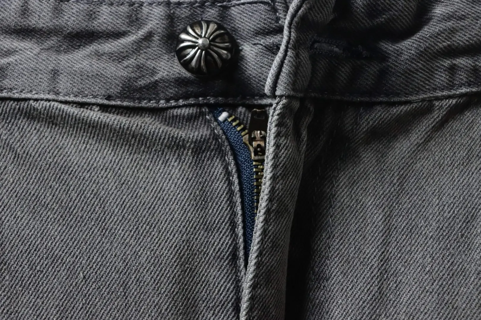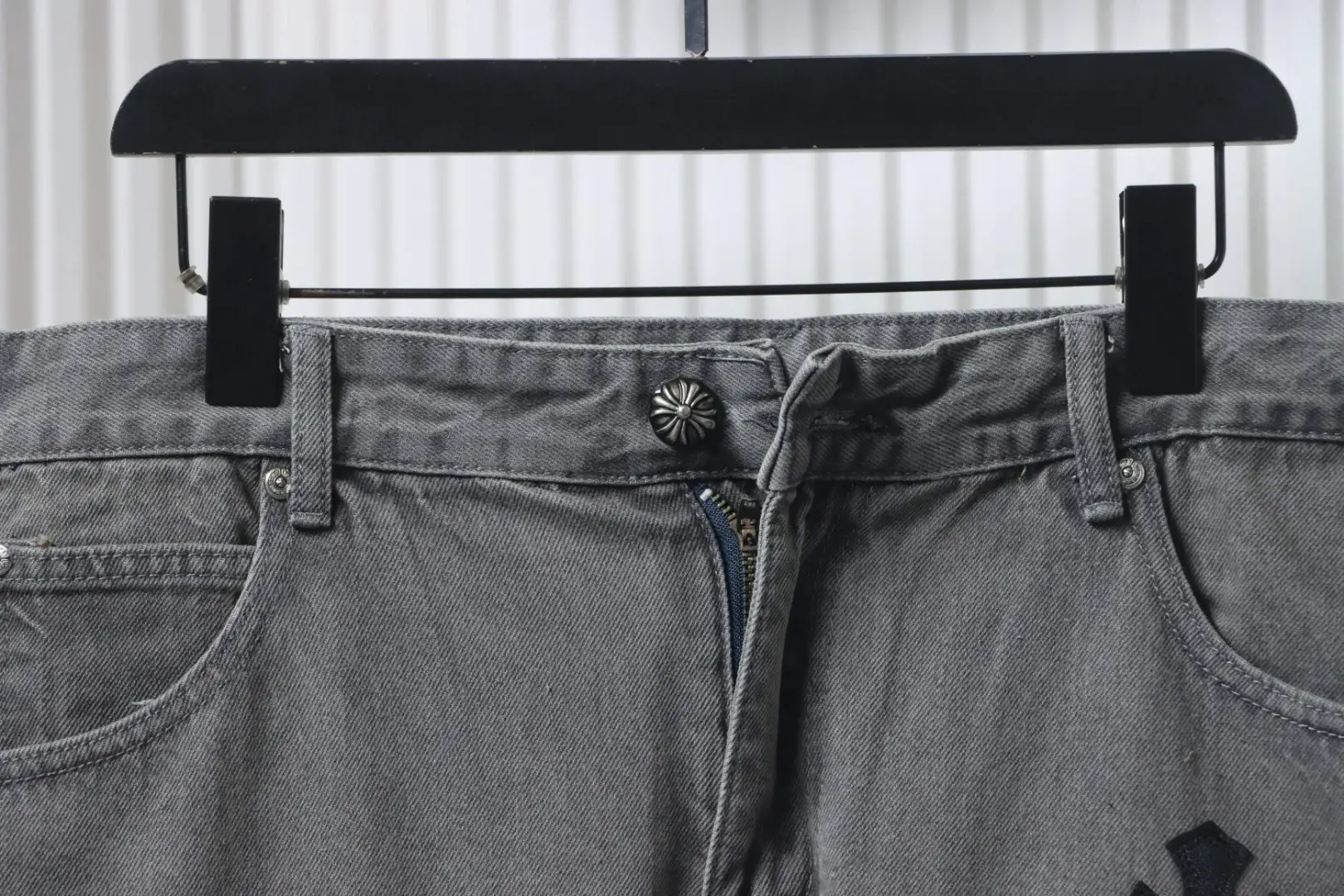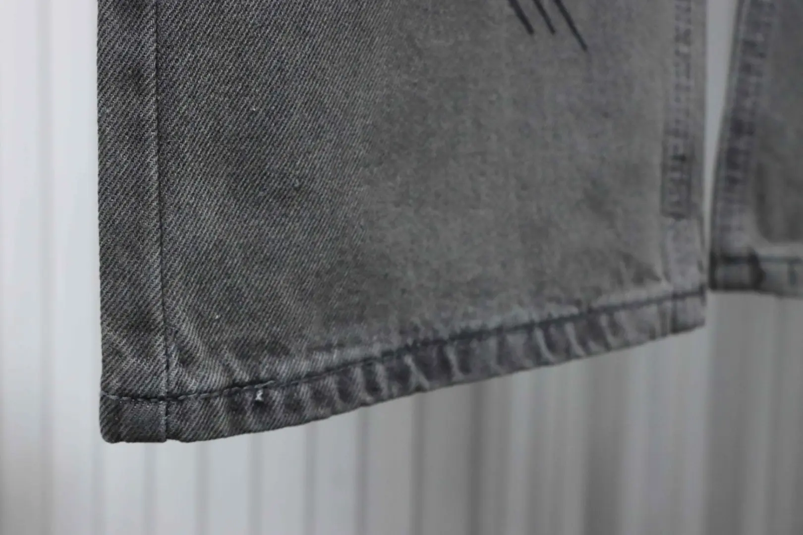 Lilafarbene Jeans aus Patchwork-Leder mit Graffiti-Sprühfarbe in limitierter Auflage