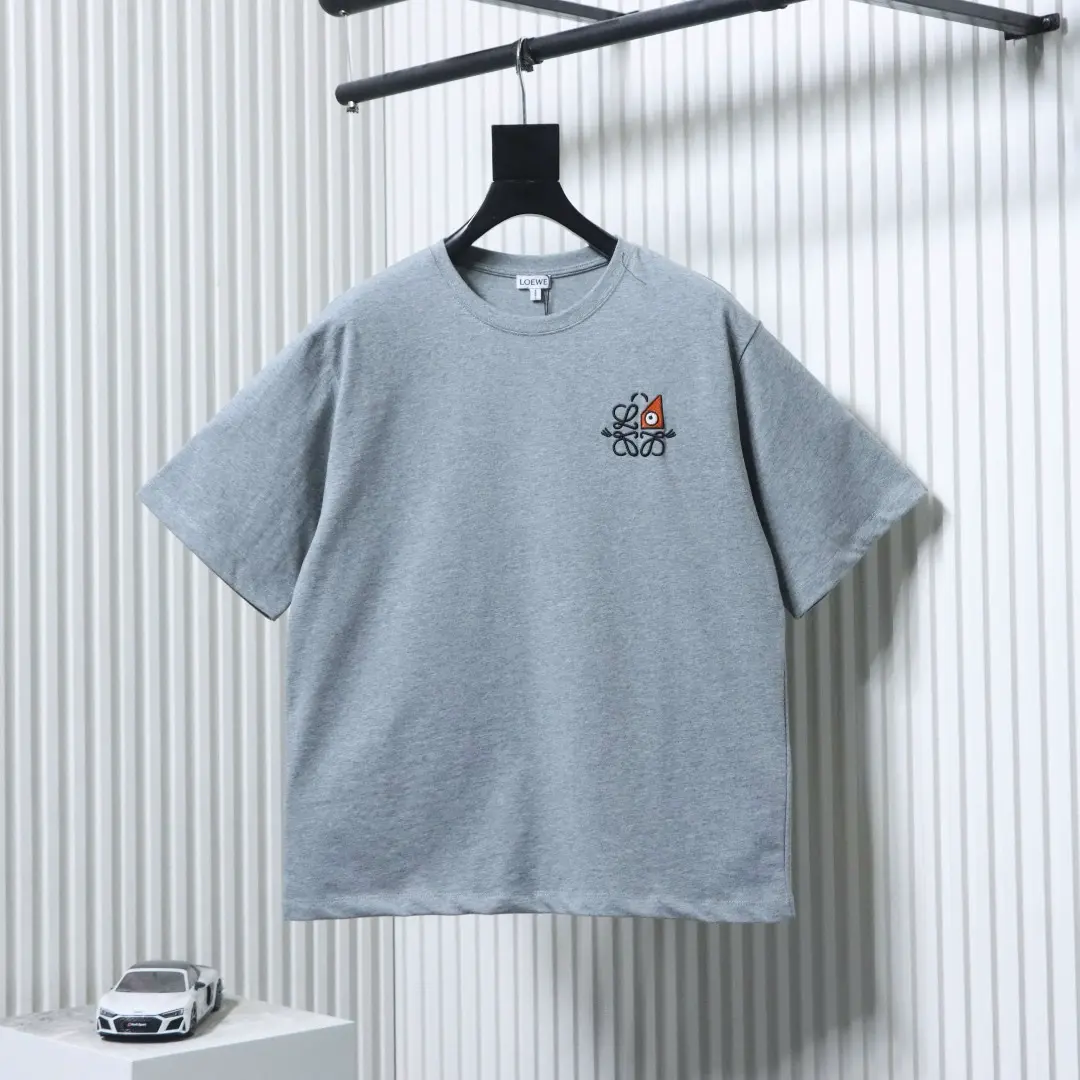 Kurzarm-T-Shirt mit gesprenkeltem Logo-Stickereimuster und dreieckigem Logo-Print auf der Rückseite