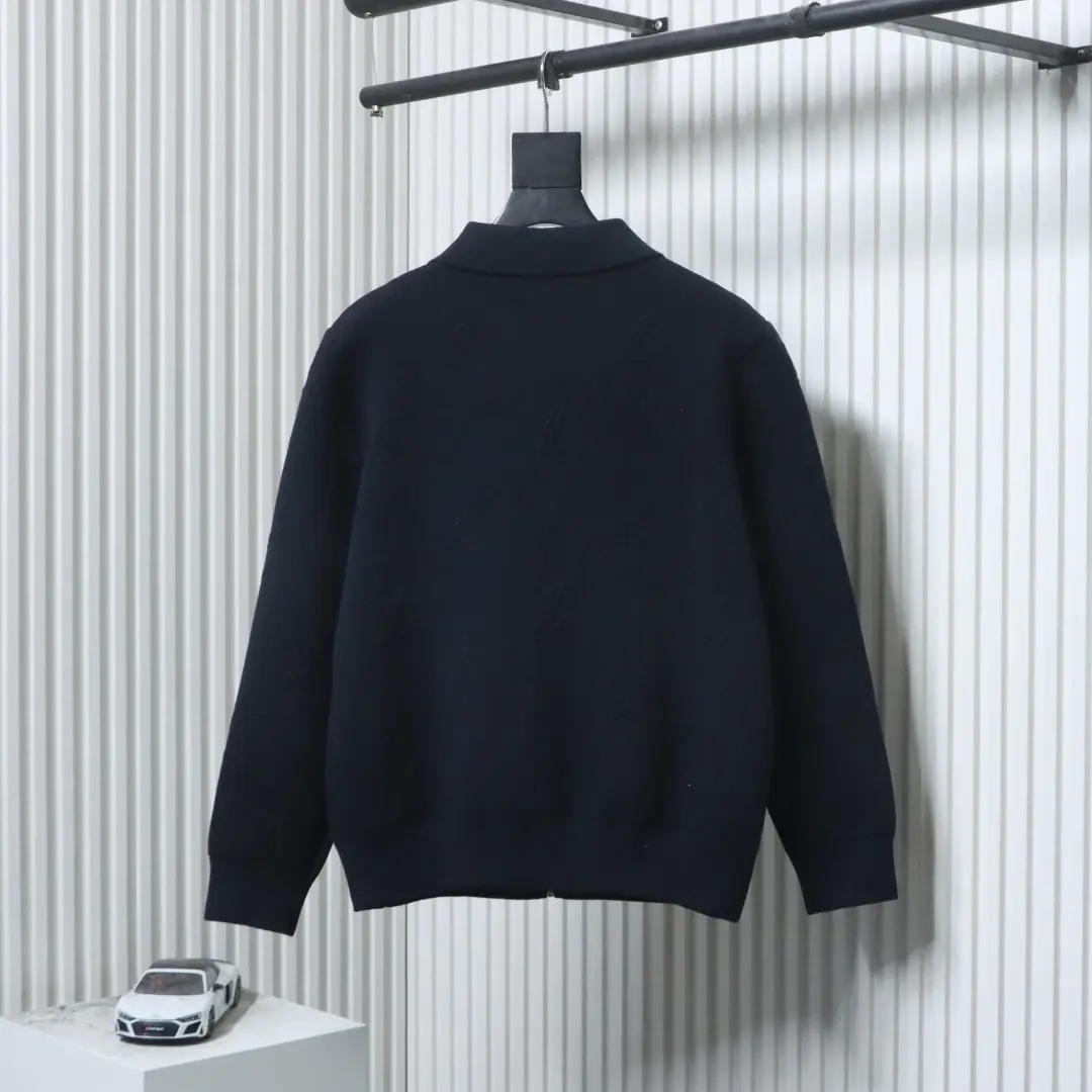 Strickjacke mit geprägtem Buchstabenreißverschluss und Strickkragen, schwarz