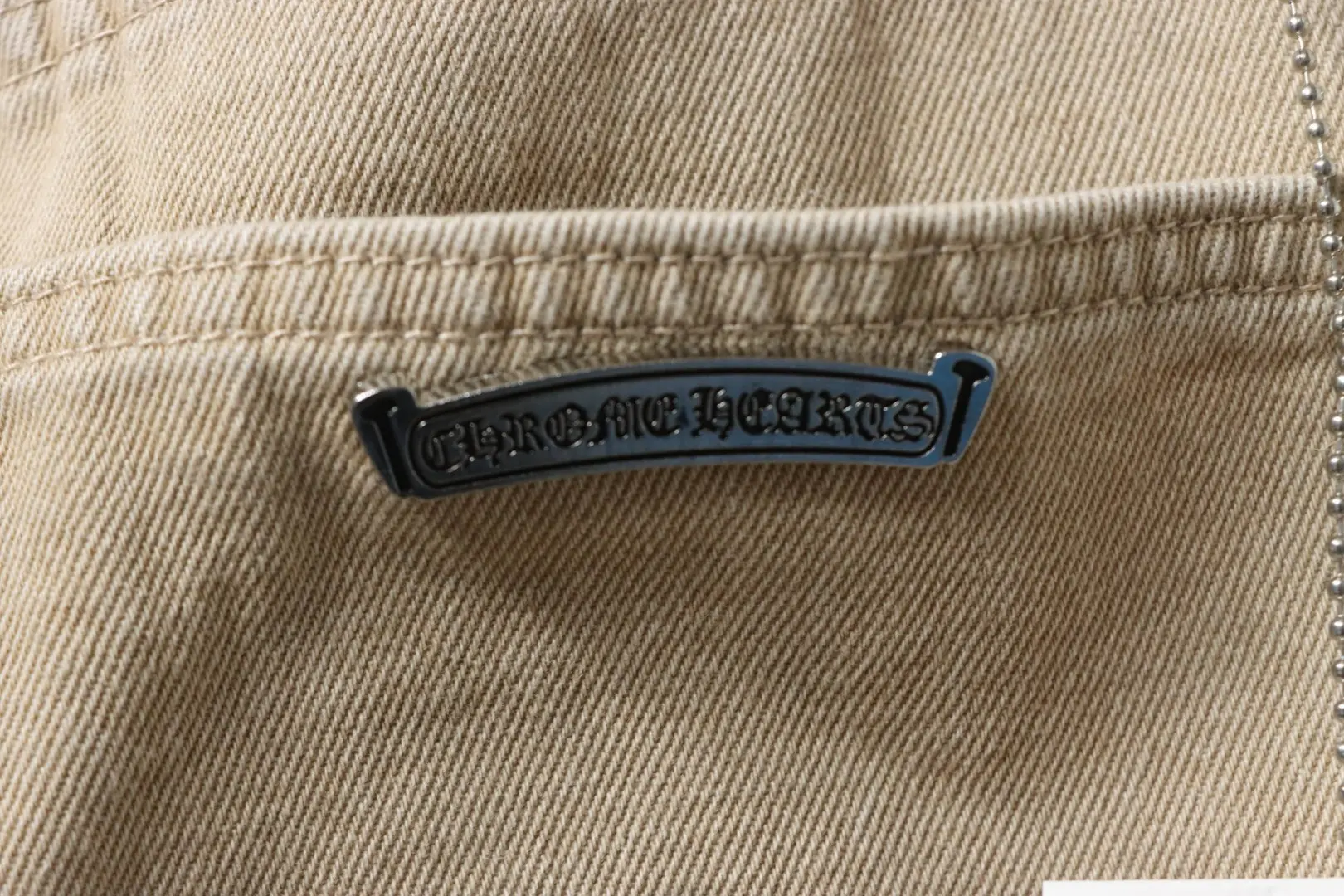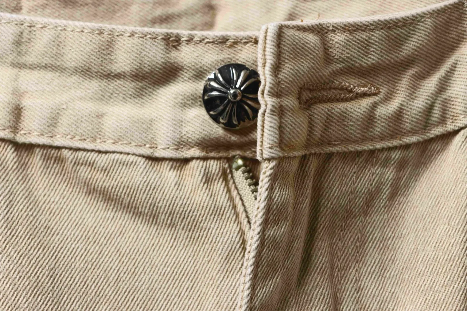 Miami Khaki-Jeans in Schwarz mit Kreuzaufnäher in limitierter Auflage
