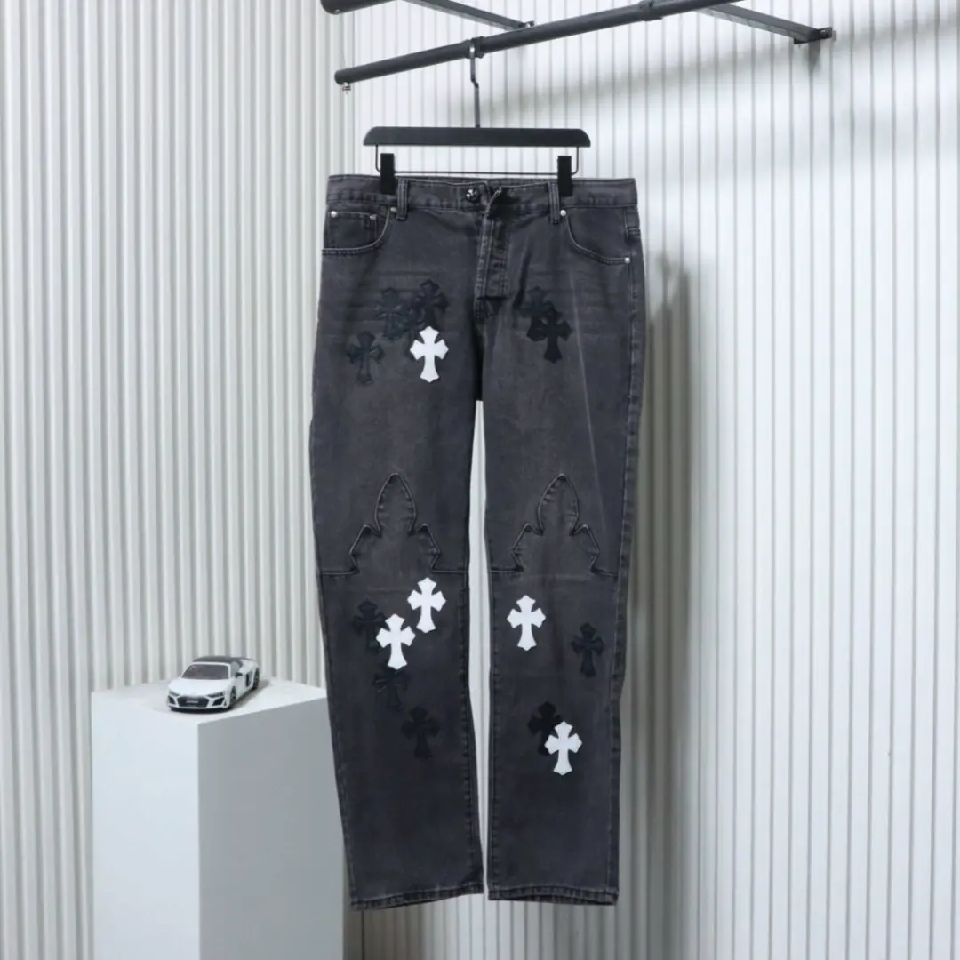 • Verwaschene Jeans mit appliziertem Kreuzmuster.