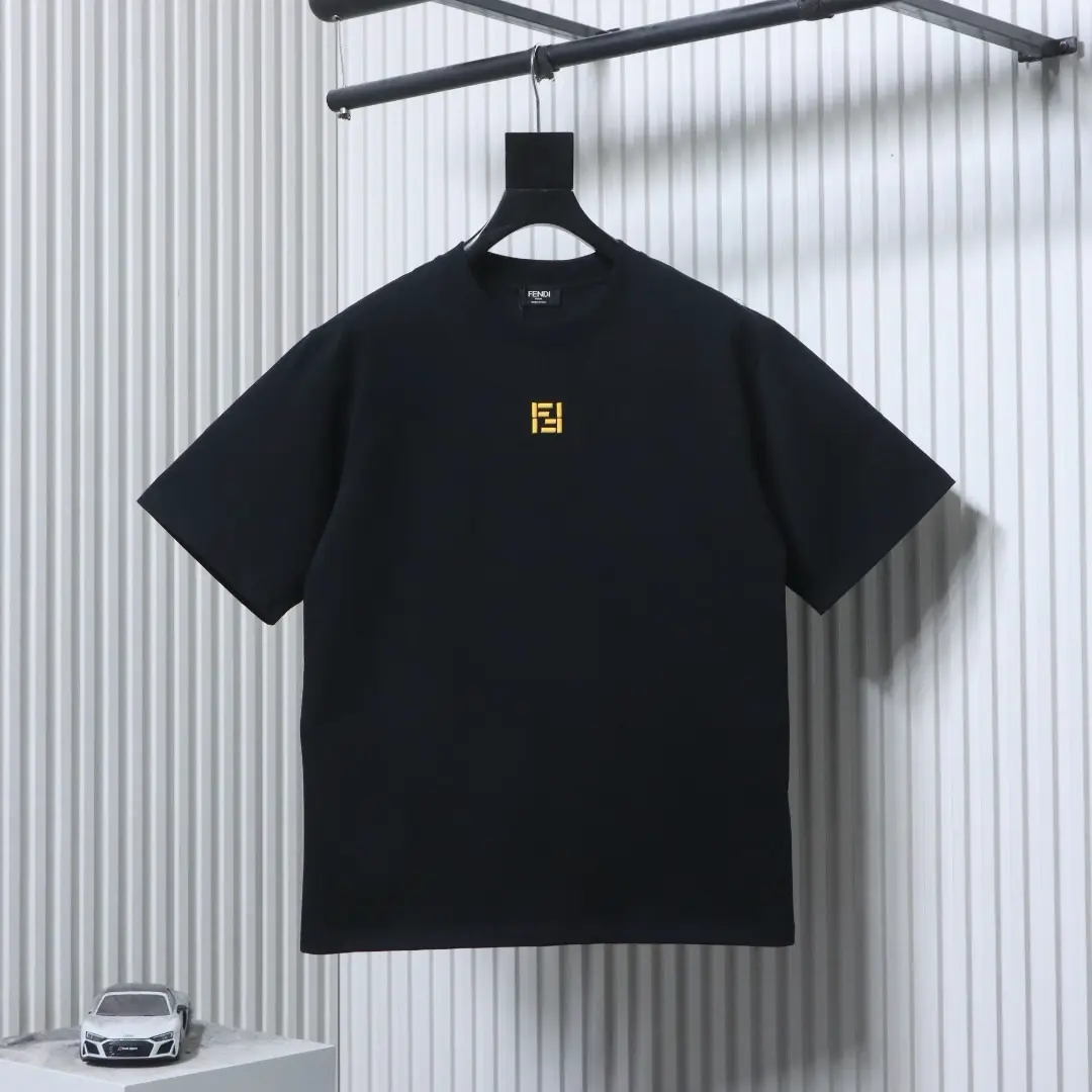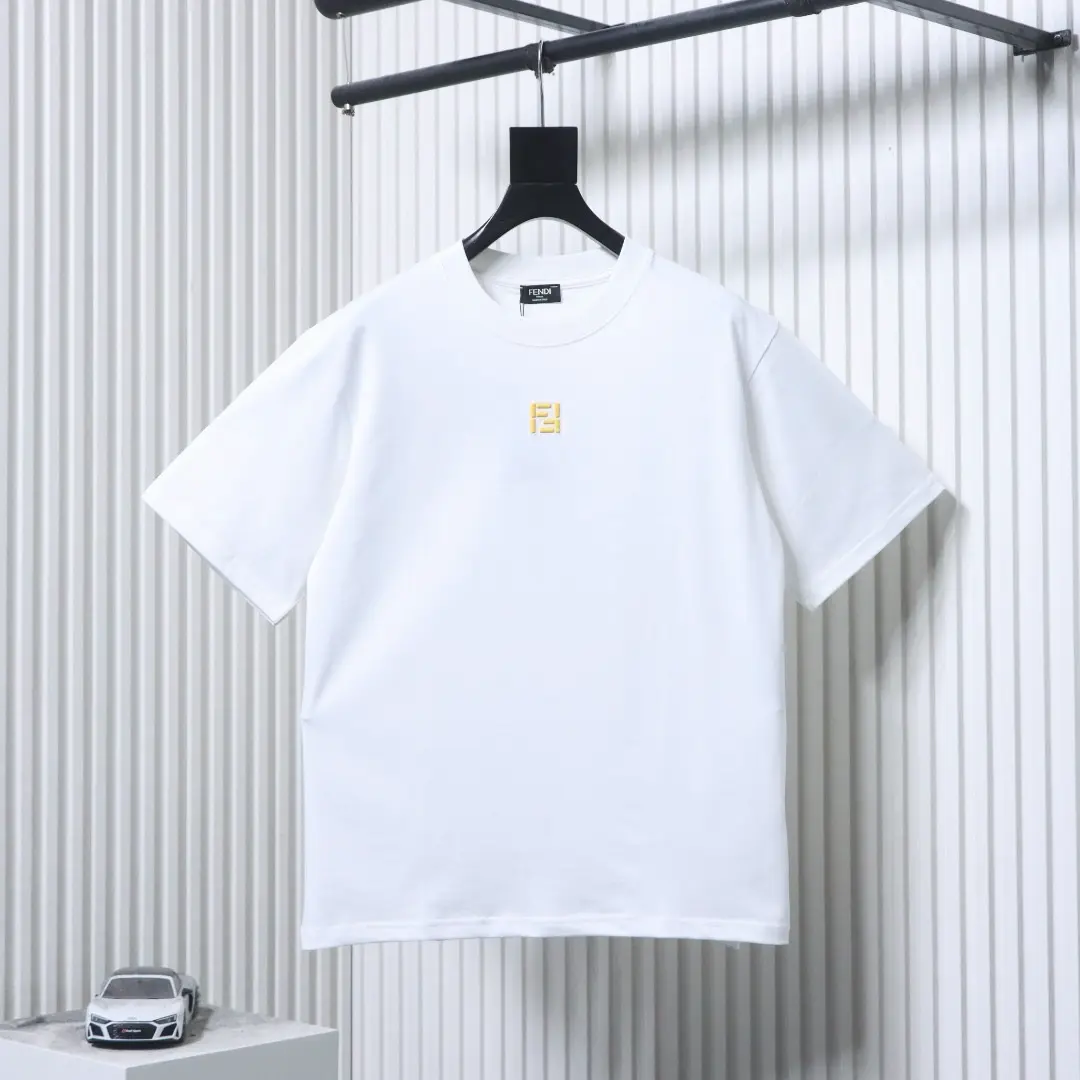 Minimalistisches T-Shirt mit 3D-FF-Stickerei und kurzen Ärmeln