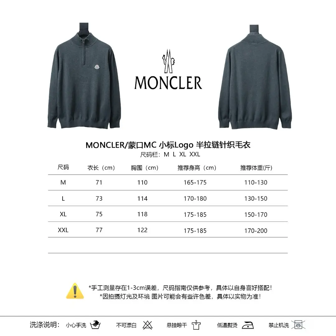 Moncler MC Strickpullover mit kleinem Logo und halbem Reißverschluss XXL