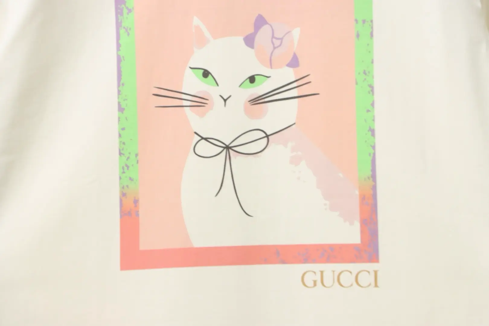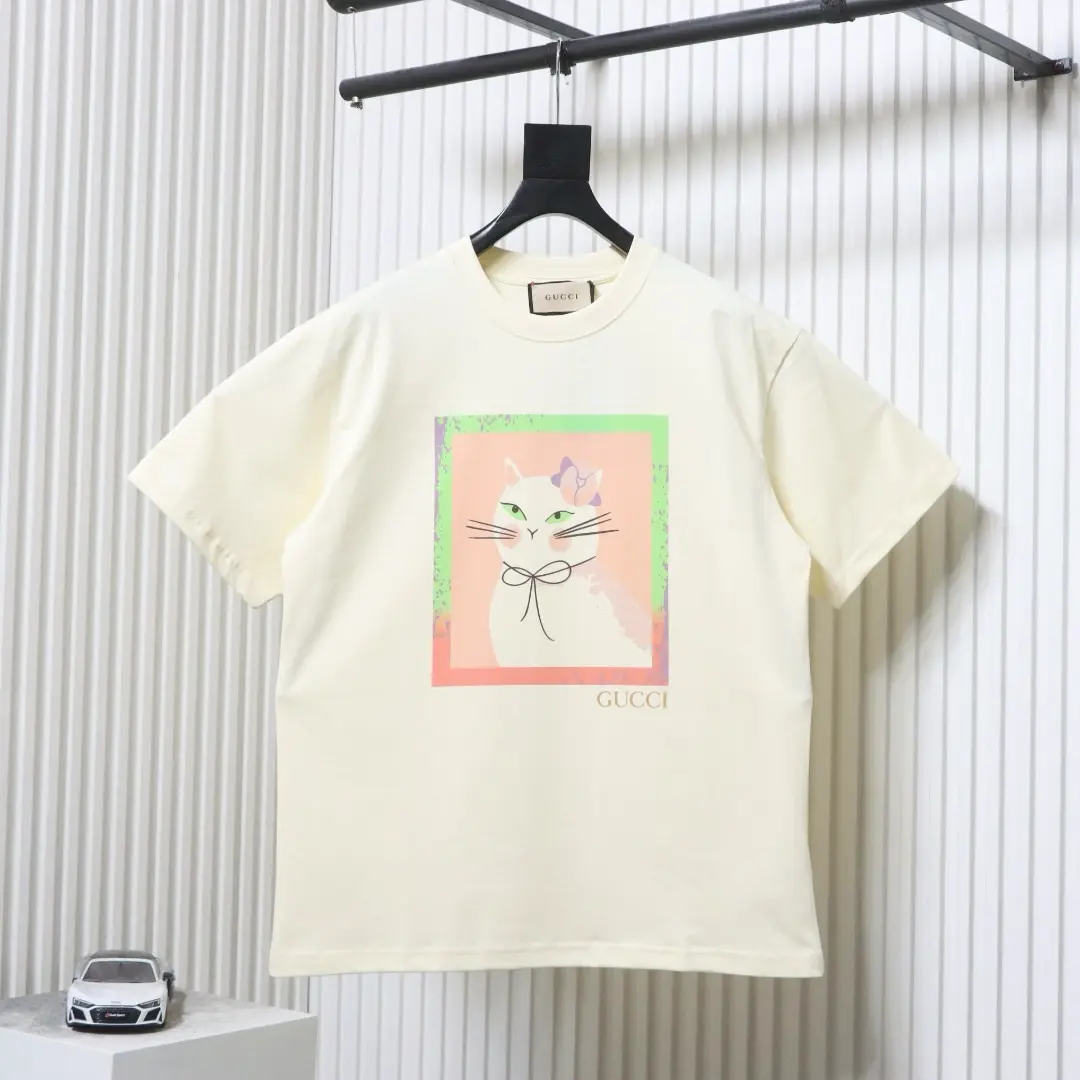 Neues kurzärmeliges Oberteil aus der Cartoon-Serie – Apricot-Weiß