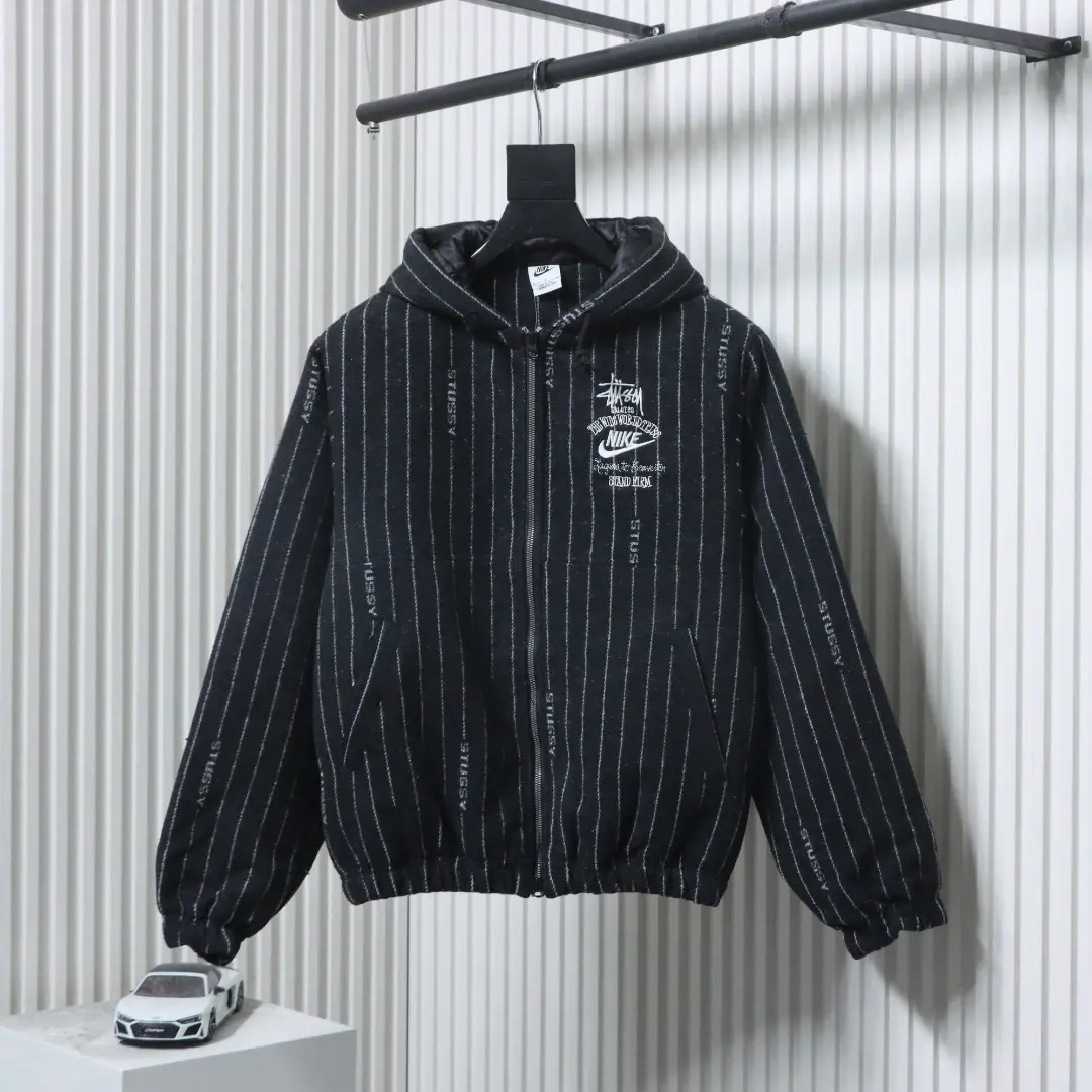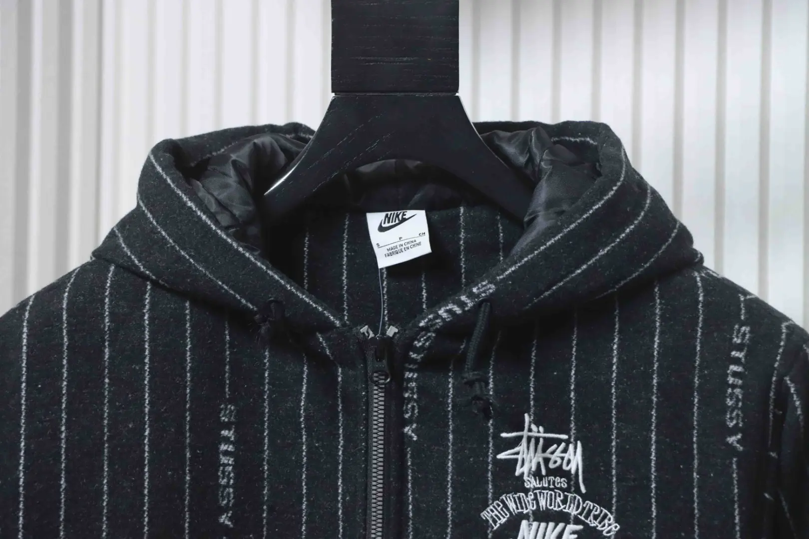Nike x Stussy Gestreiftes Kapuzensweatshirt aus Wolle
