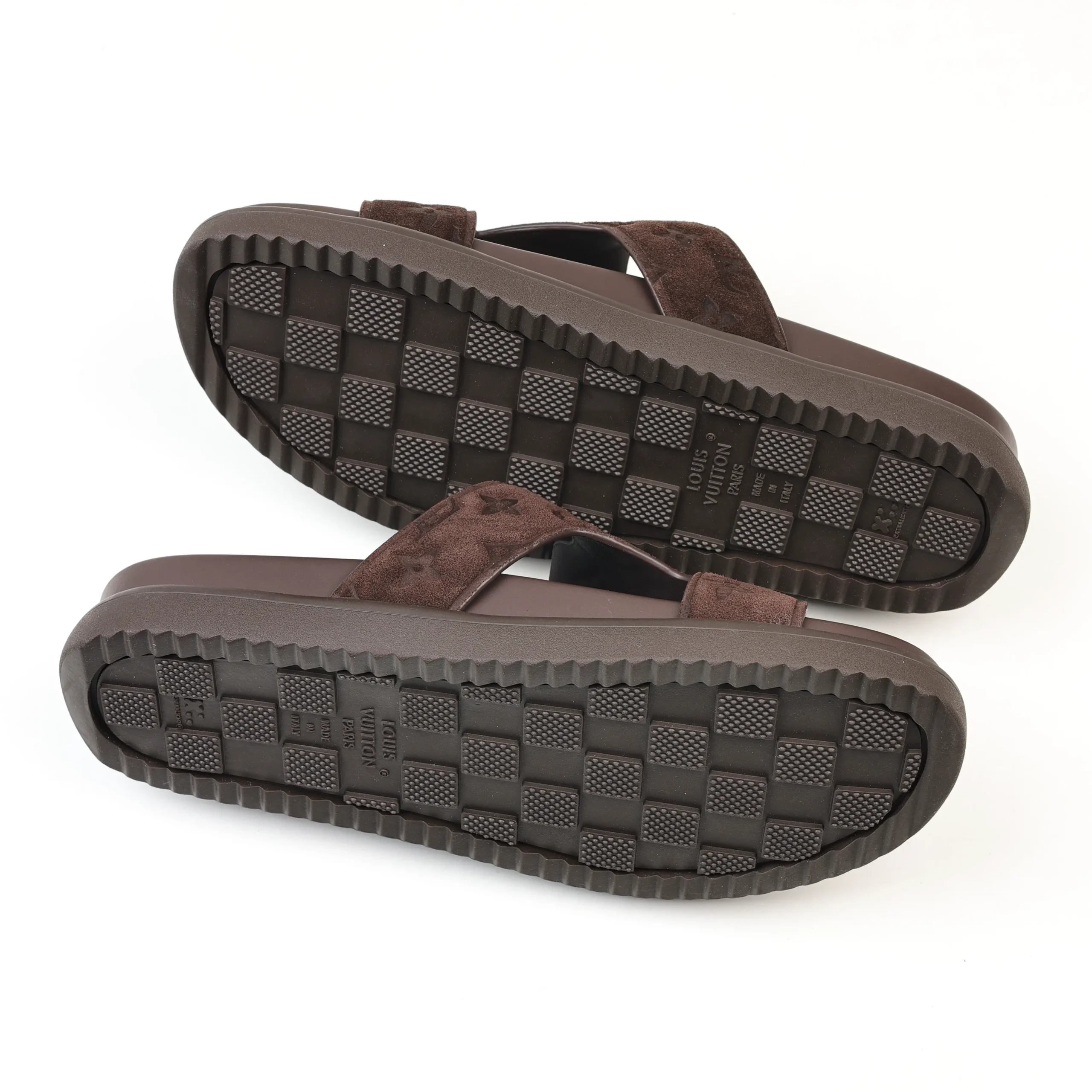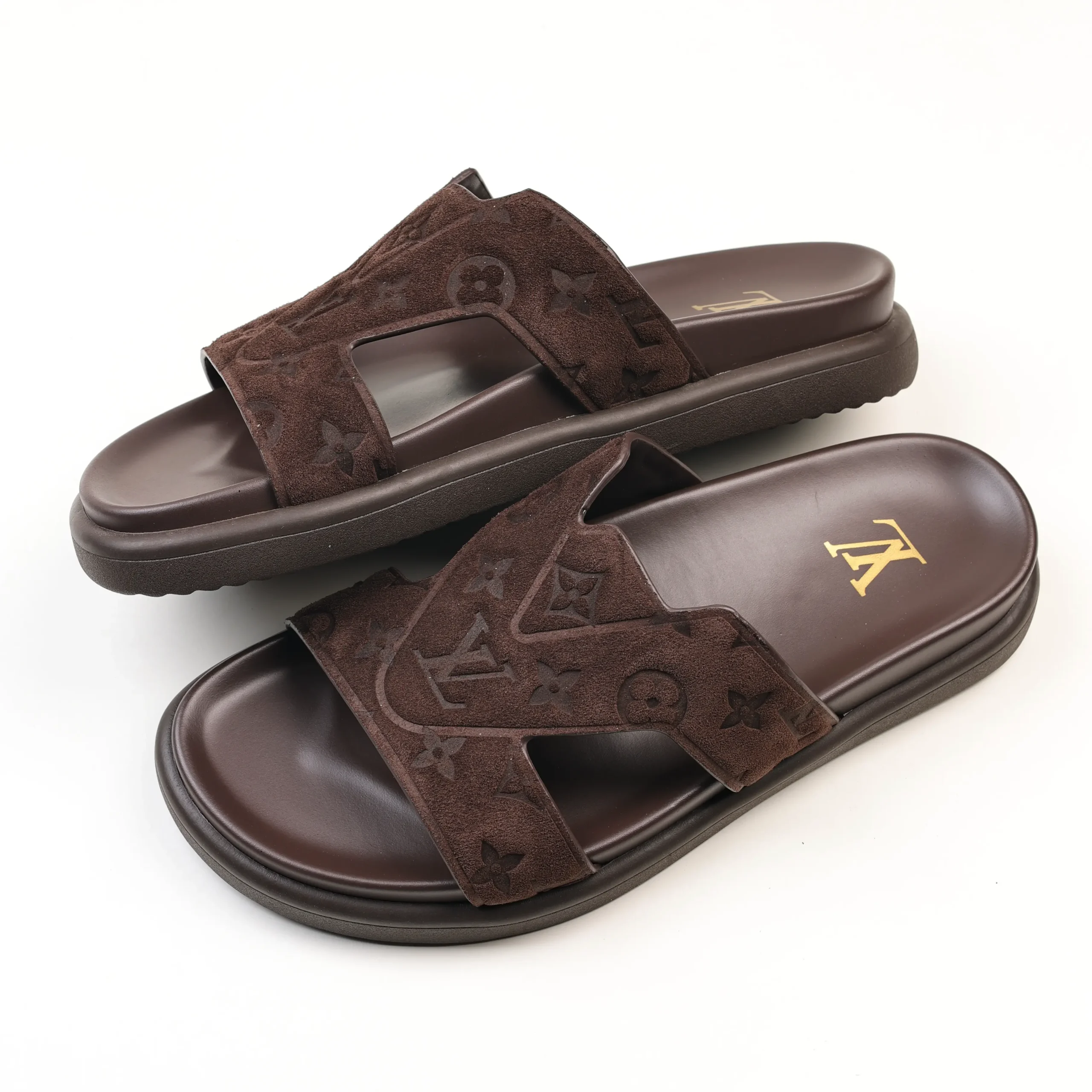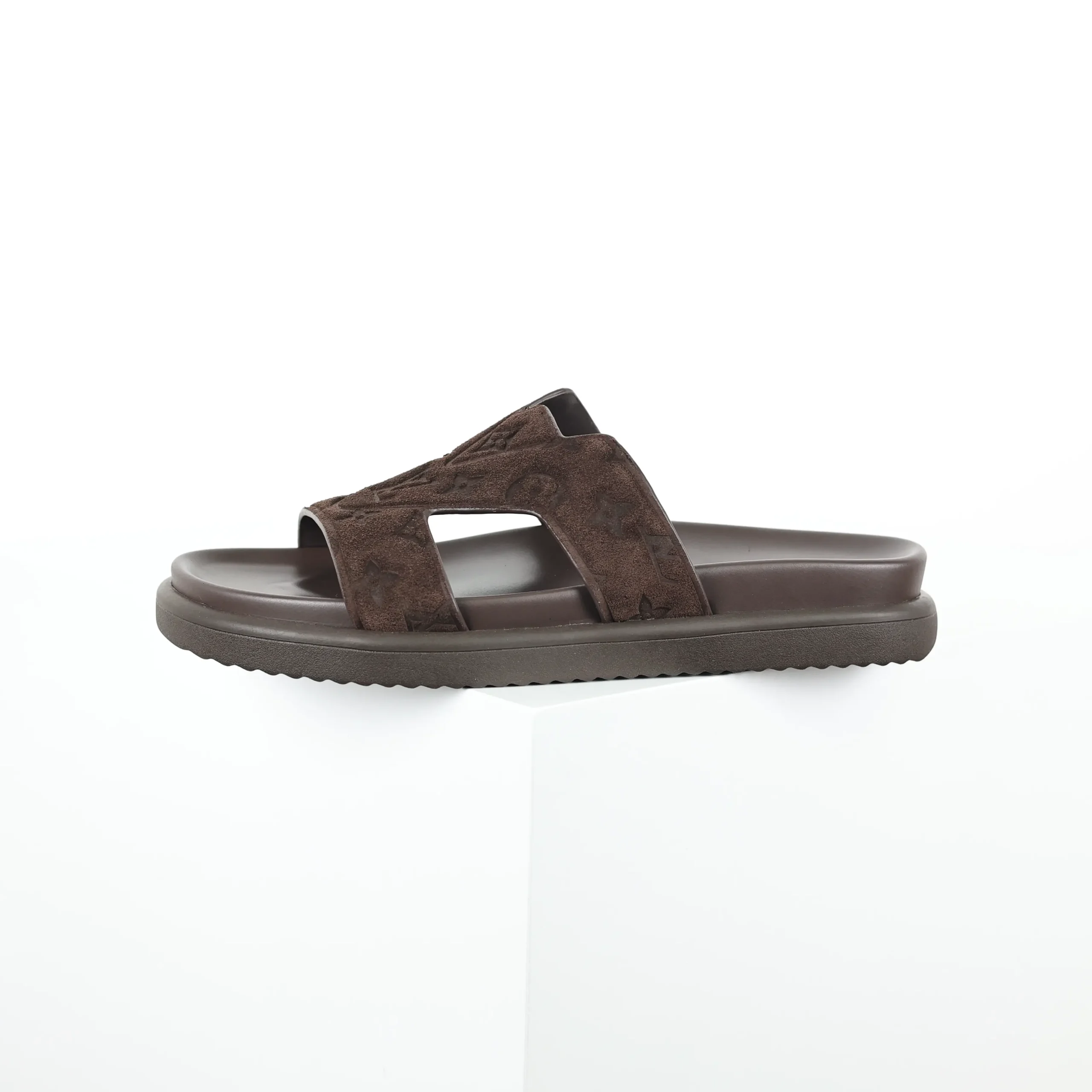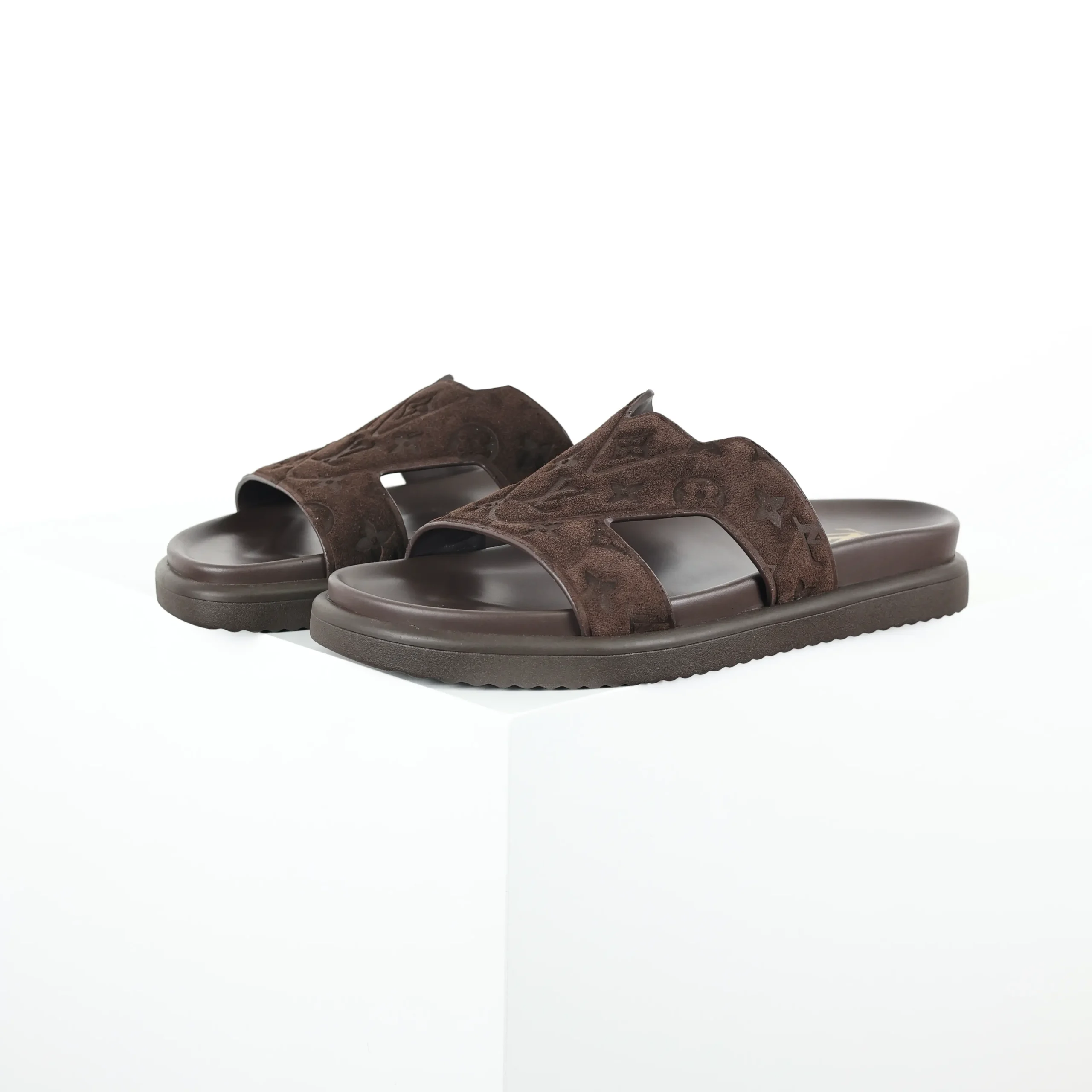 Oasis-Serie, flache Pantoletten aus Straußenleder für Herren, braun