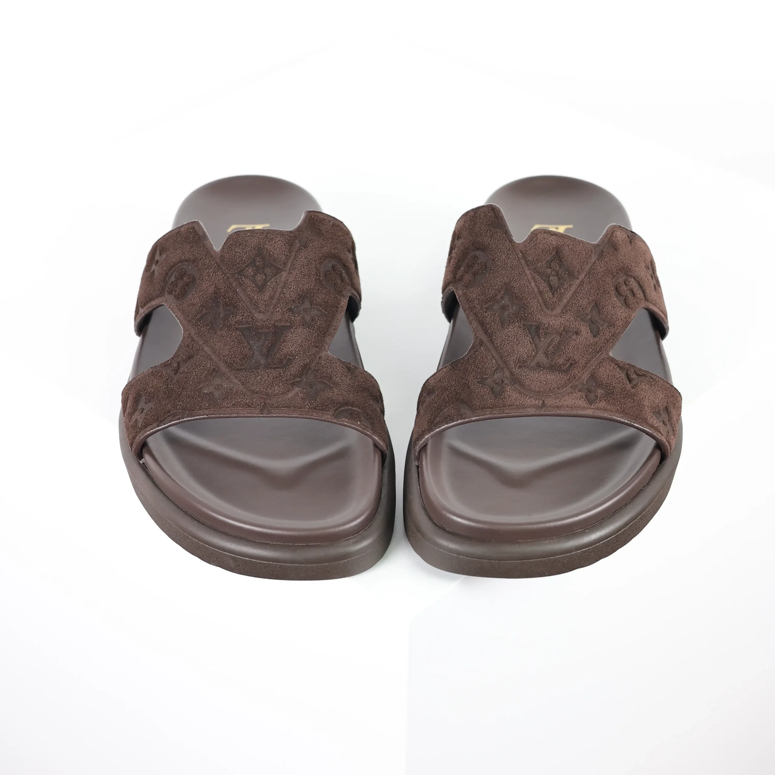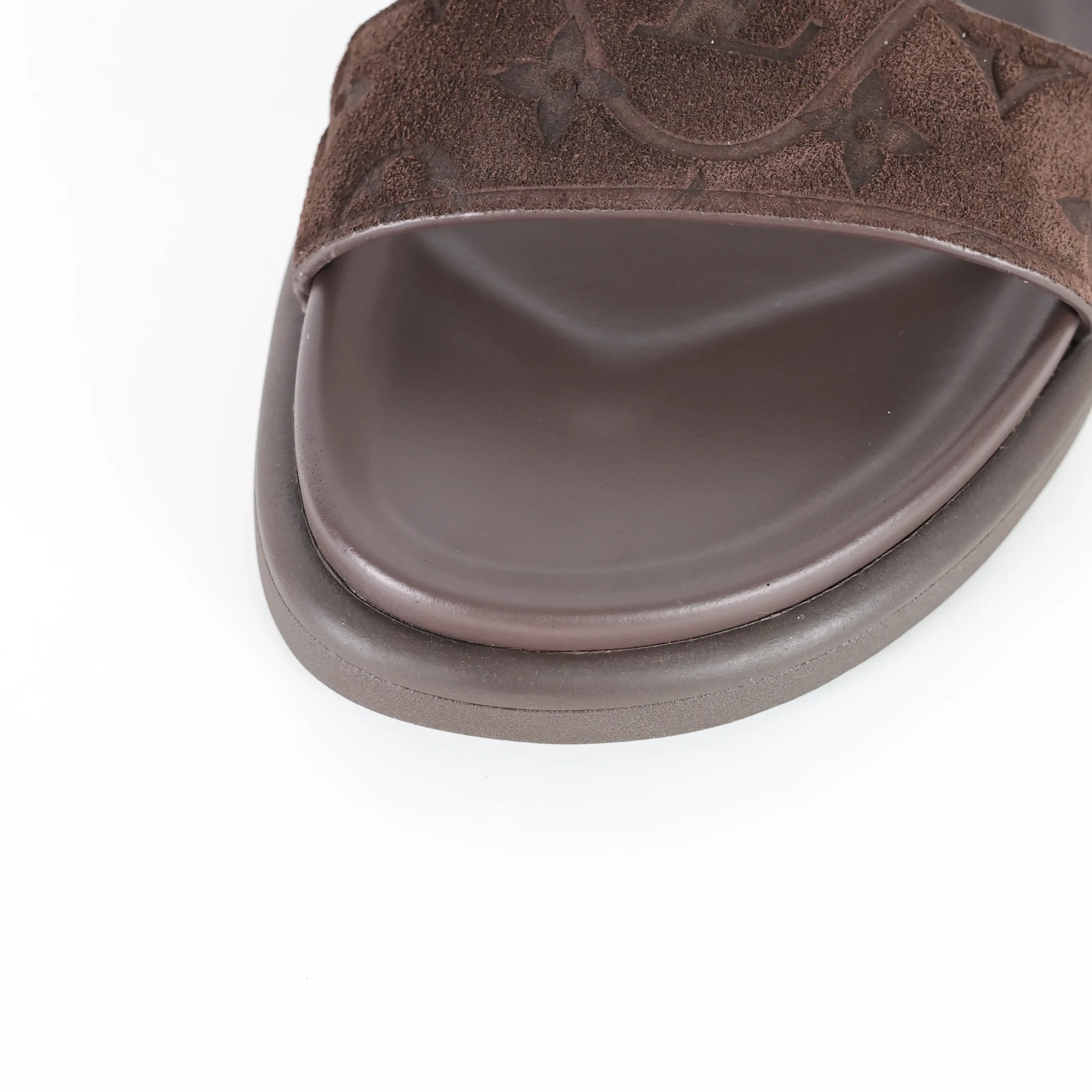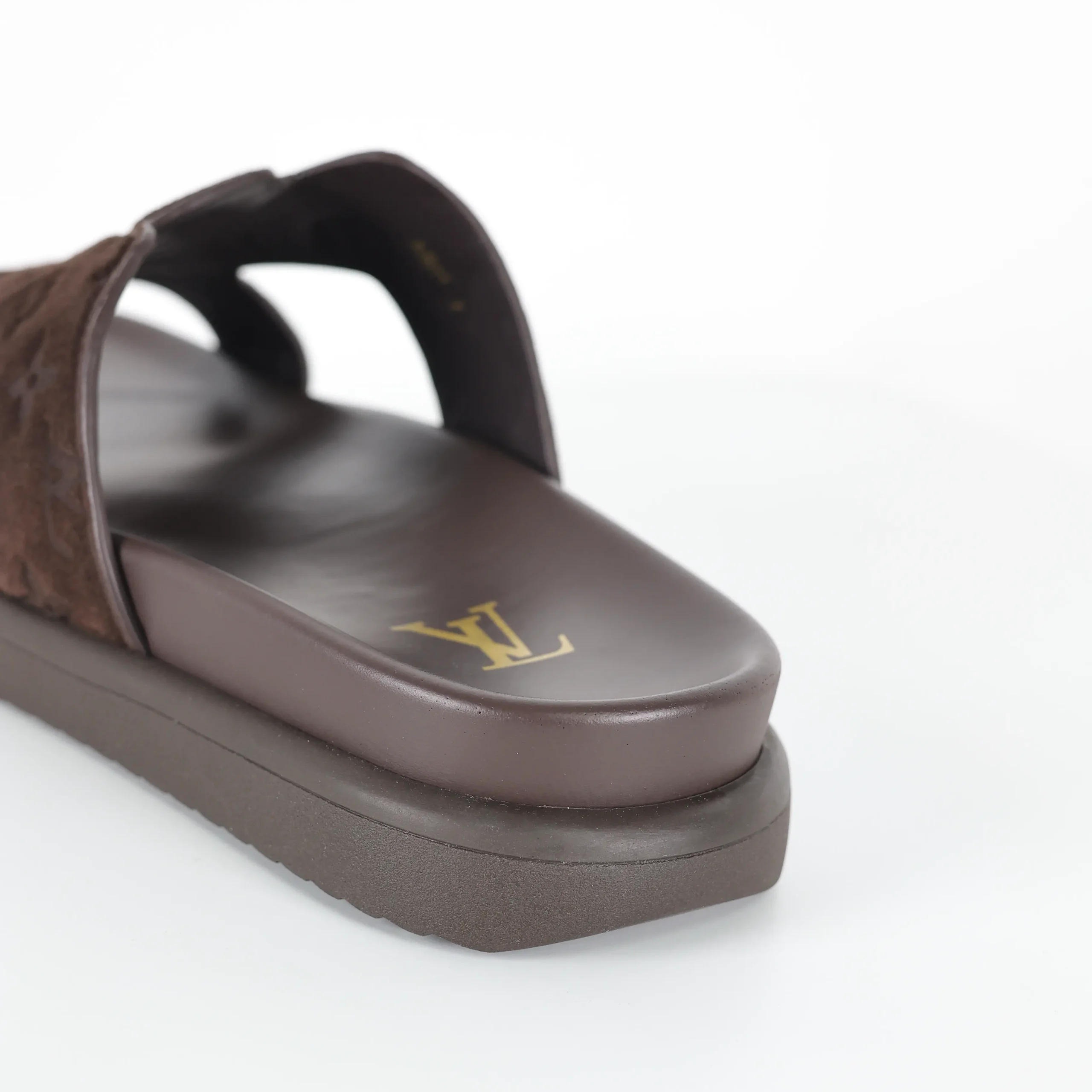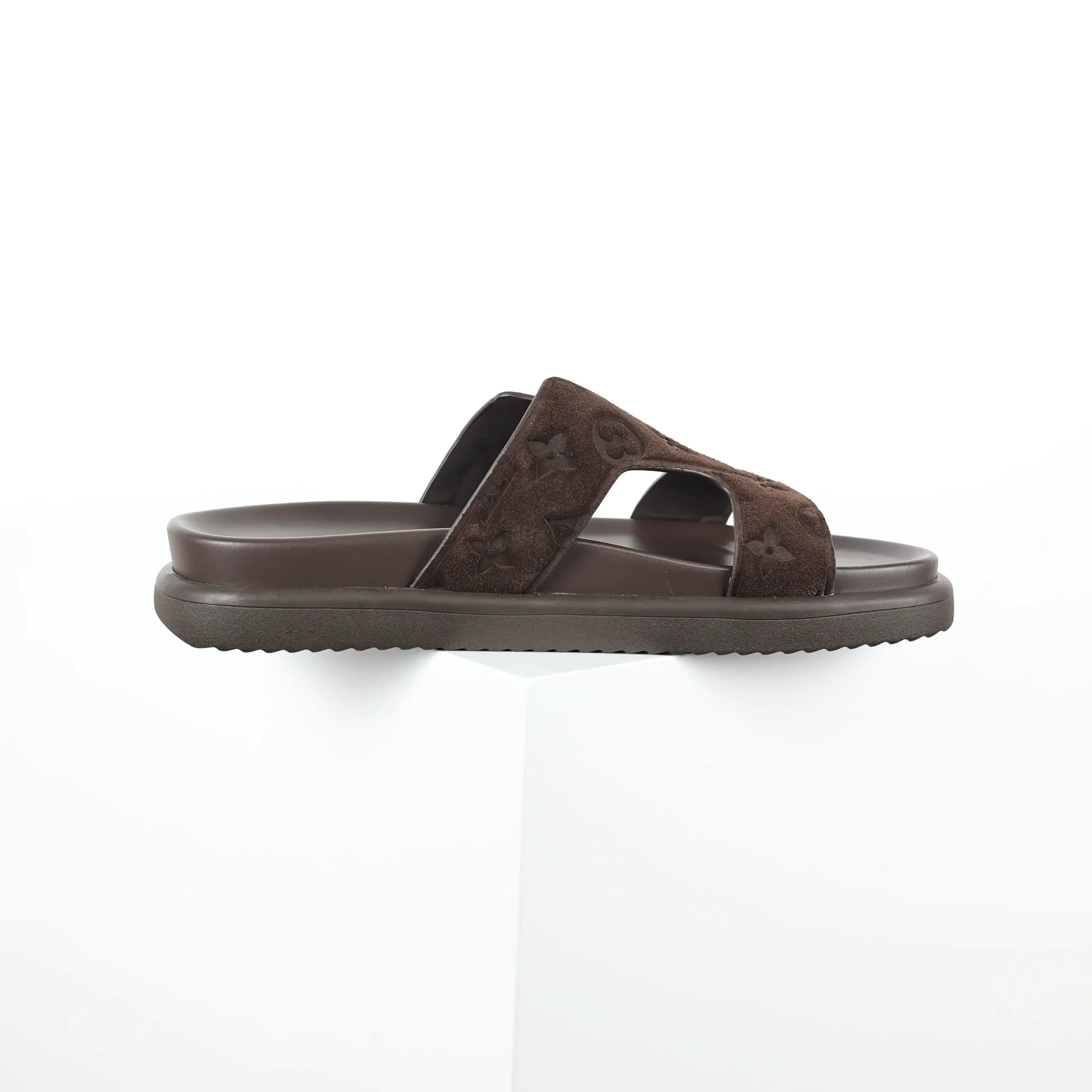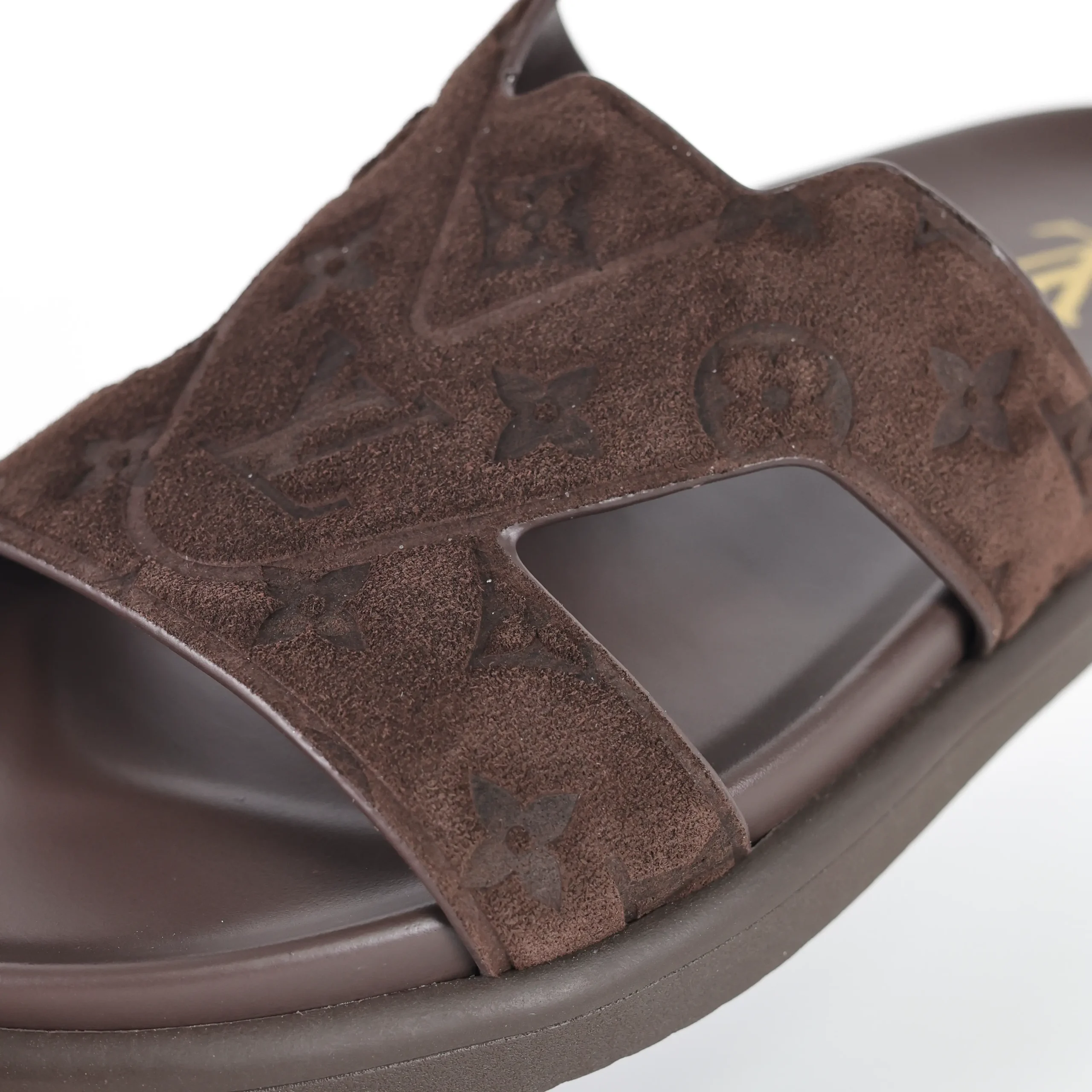 Oasis-Serie, flache Pantoletten aus Straußenleder für Herren, braun