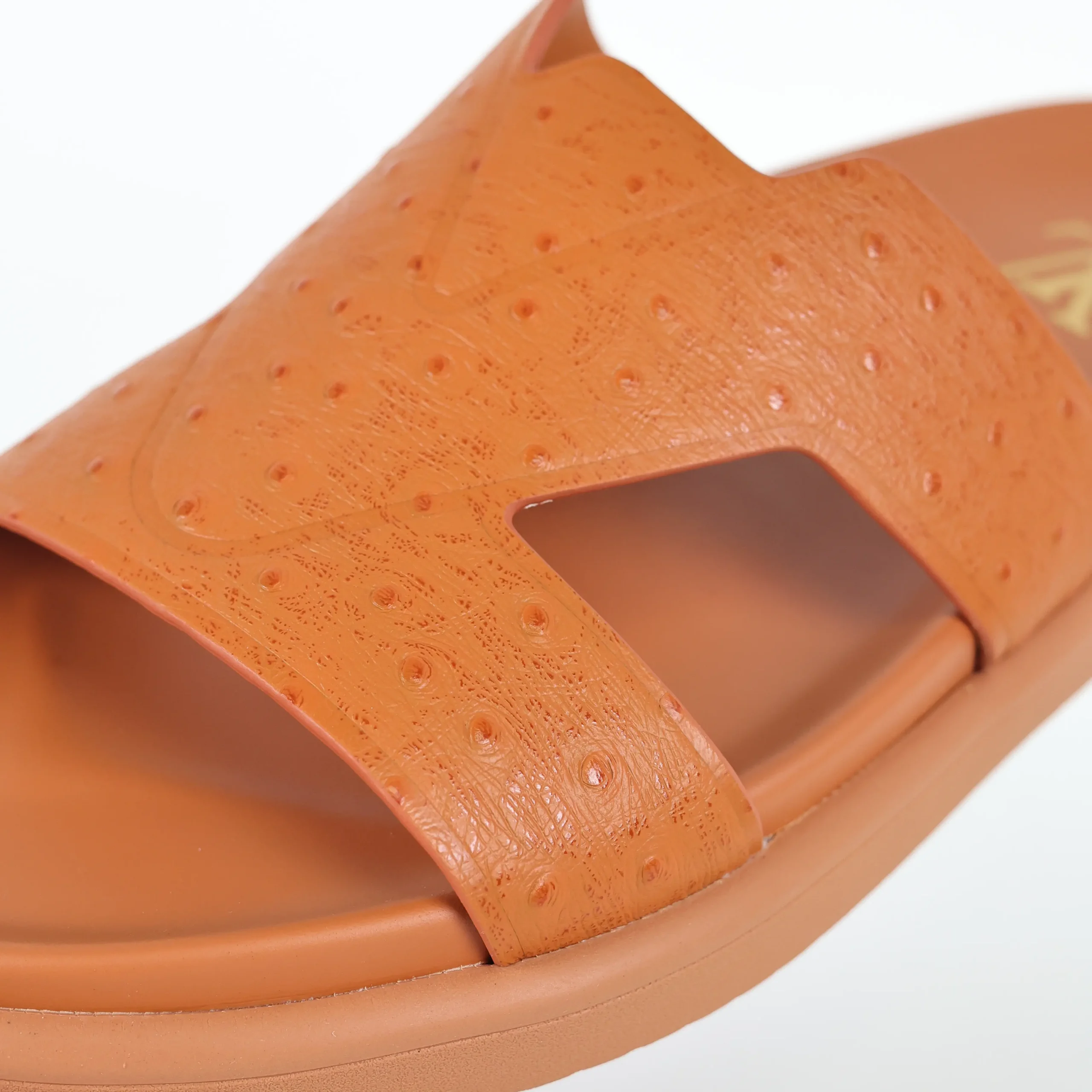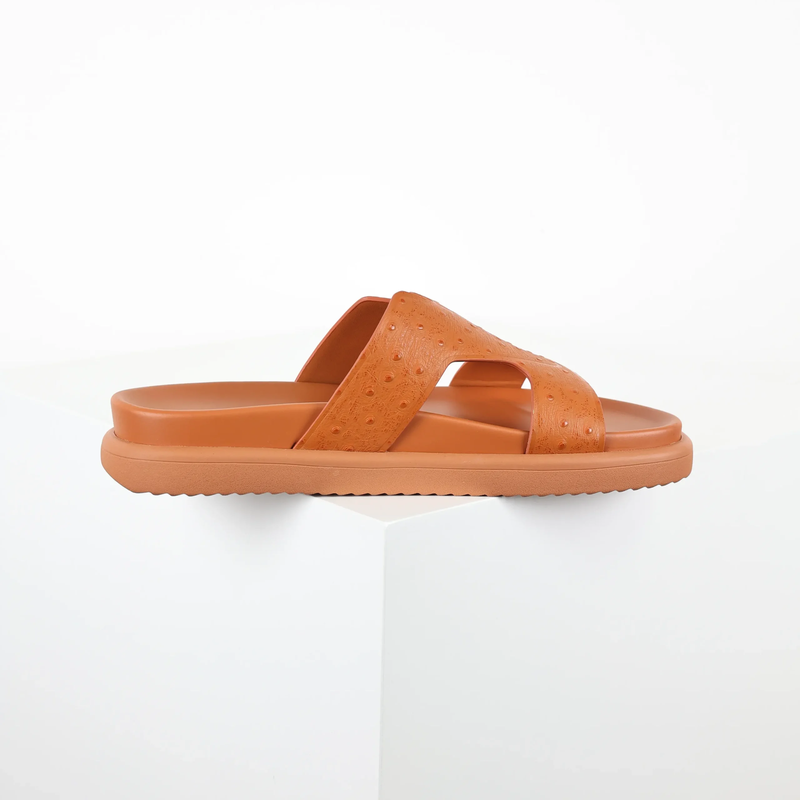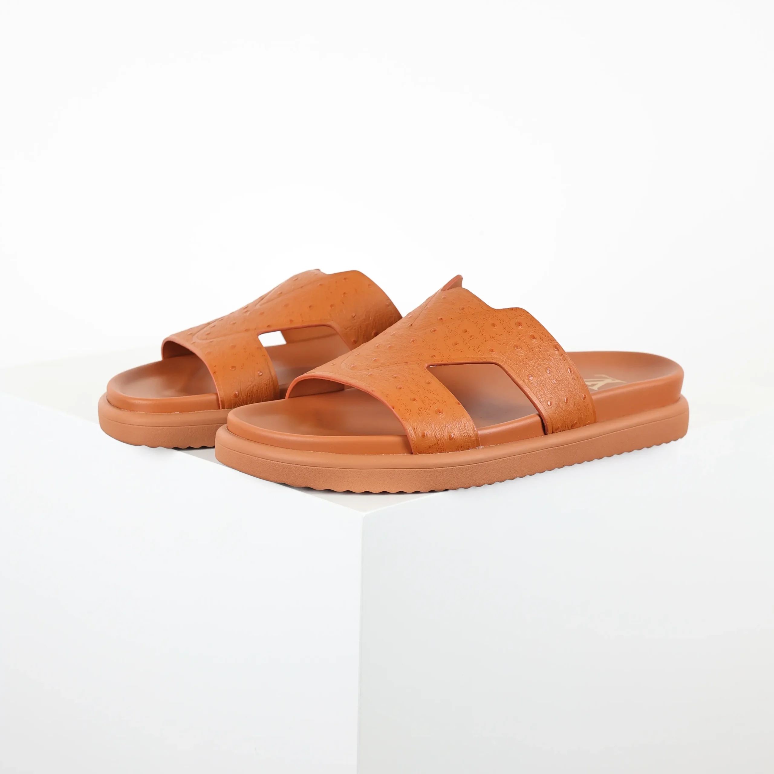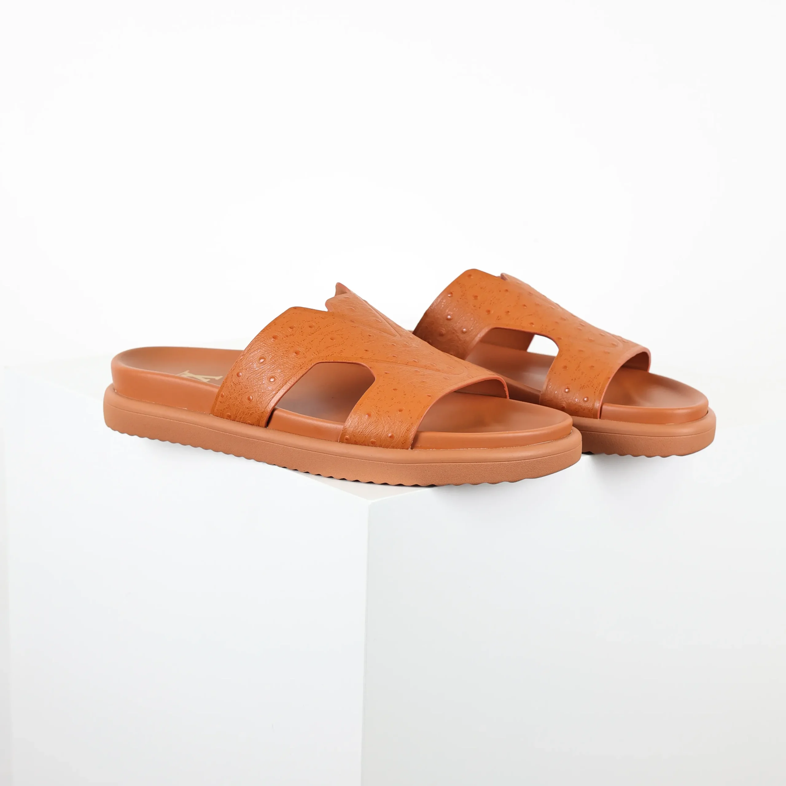 Oasis-Serie, flache Pantoletten aus Straußenleder für Herren, braun