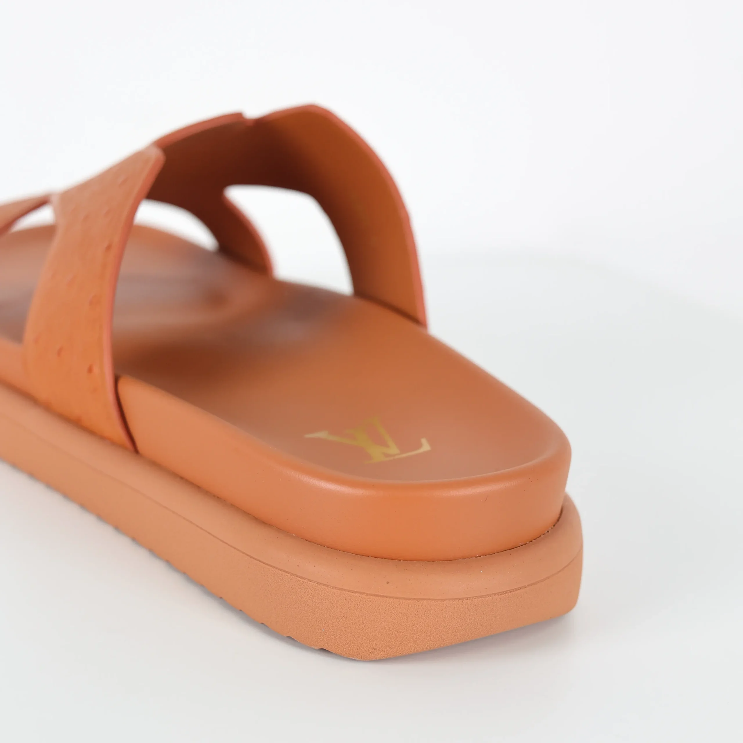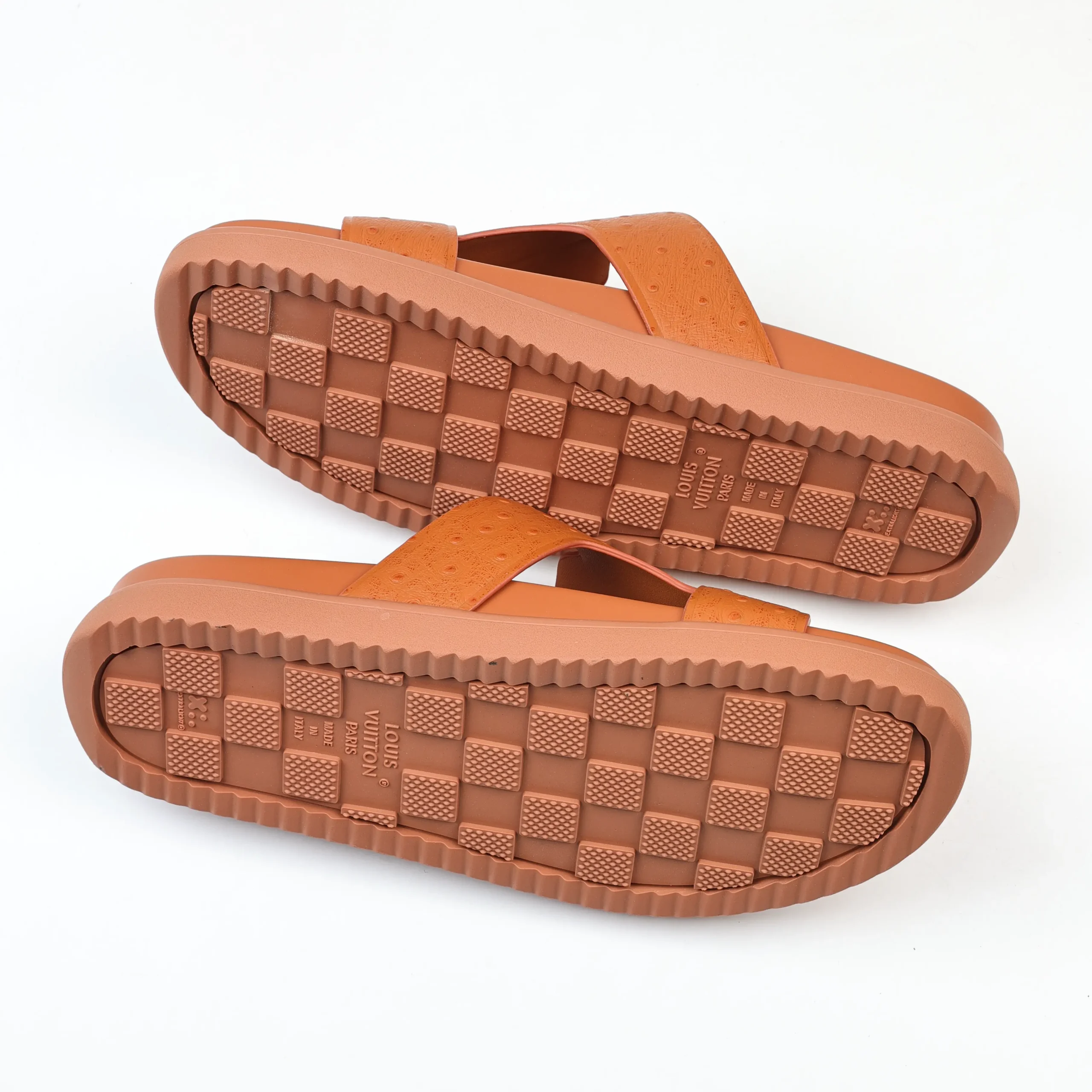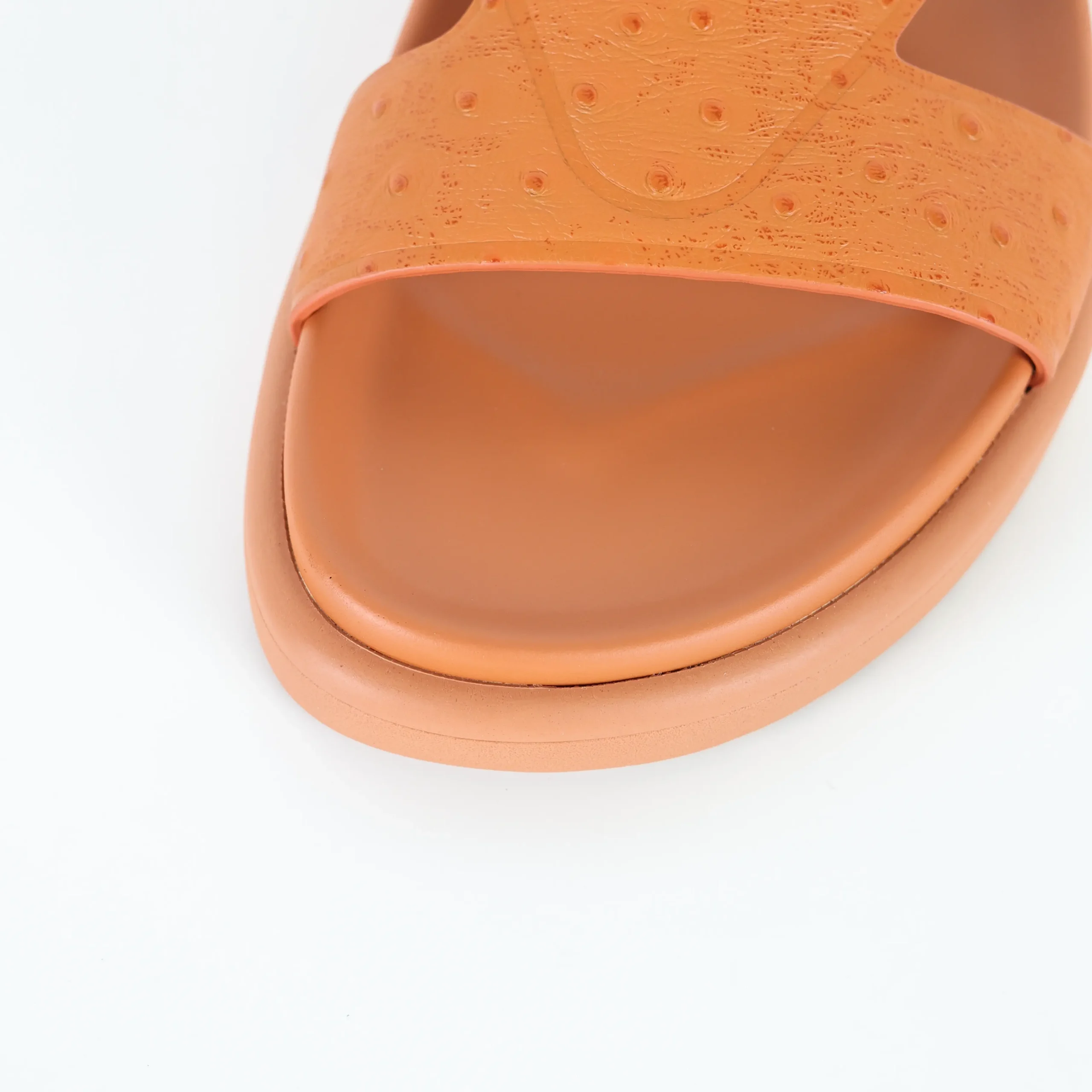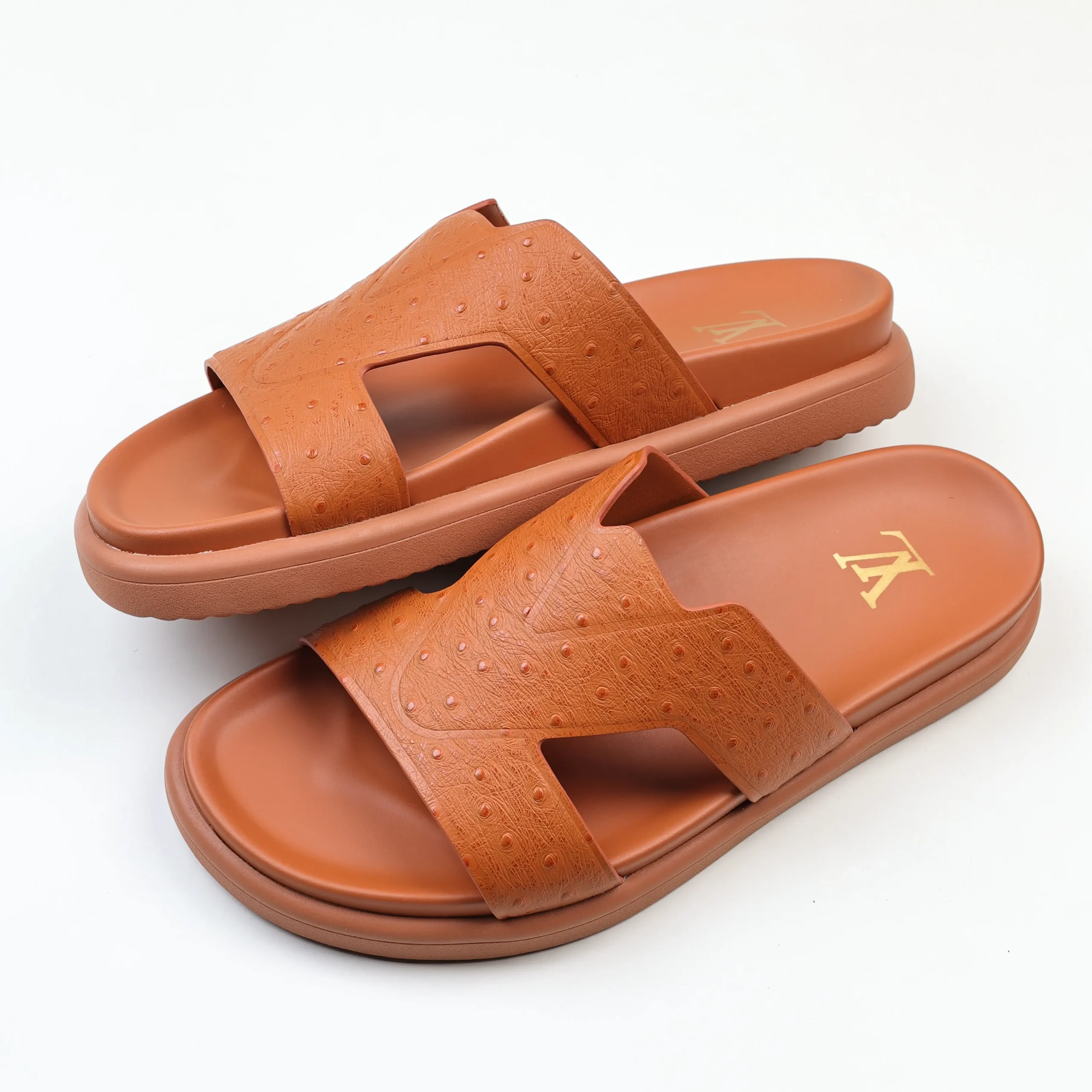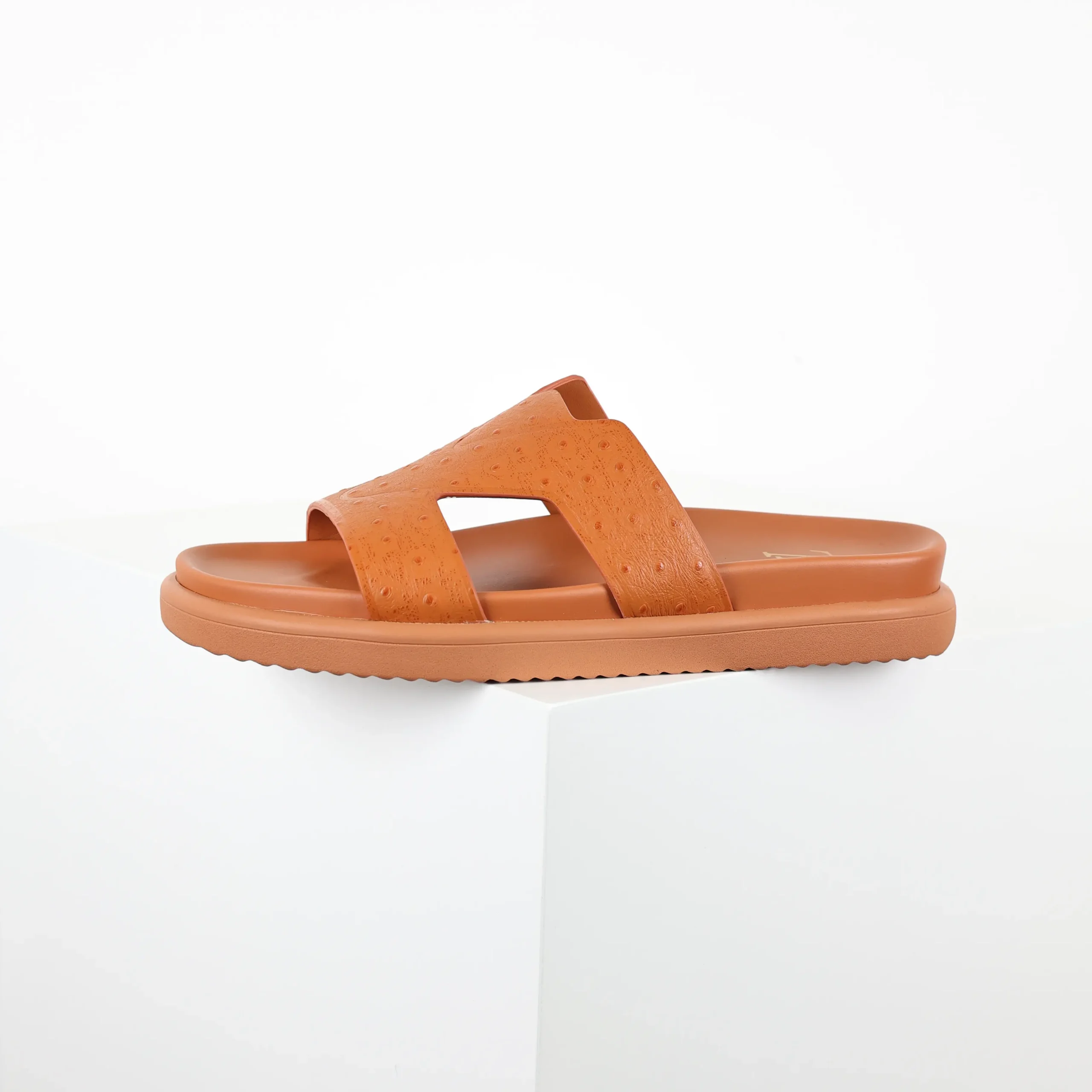 Oasis-Serie, flache Pantoletten aus Straußenleder für Herren, braun
