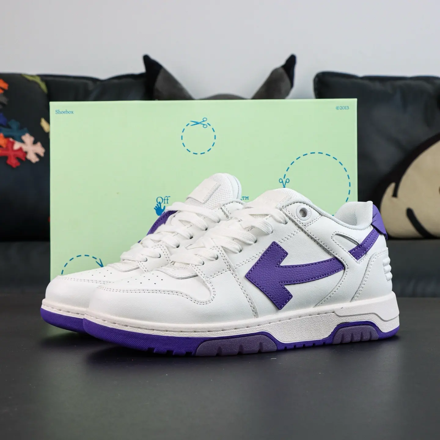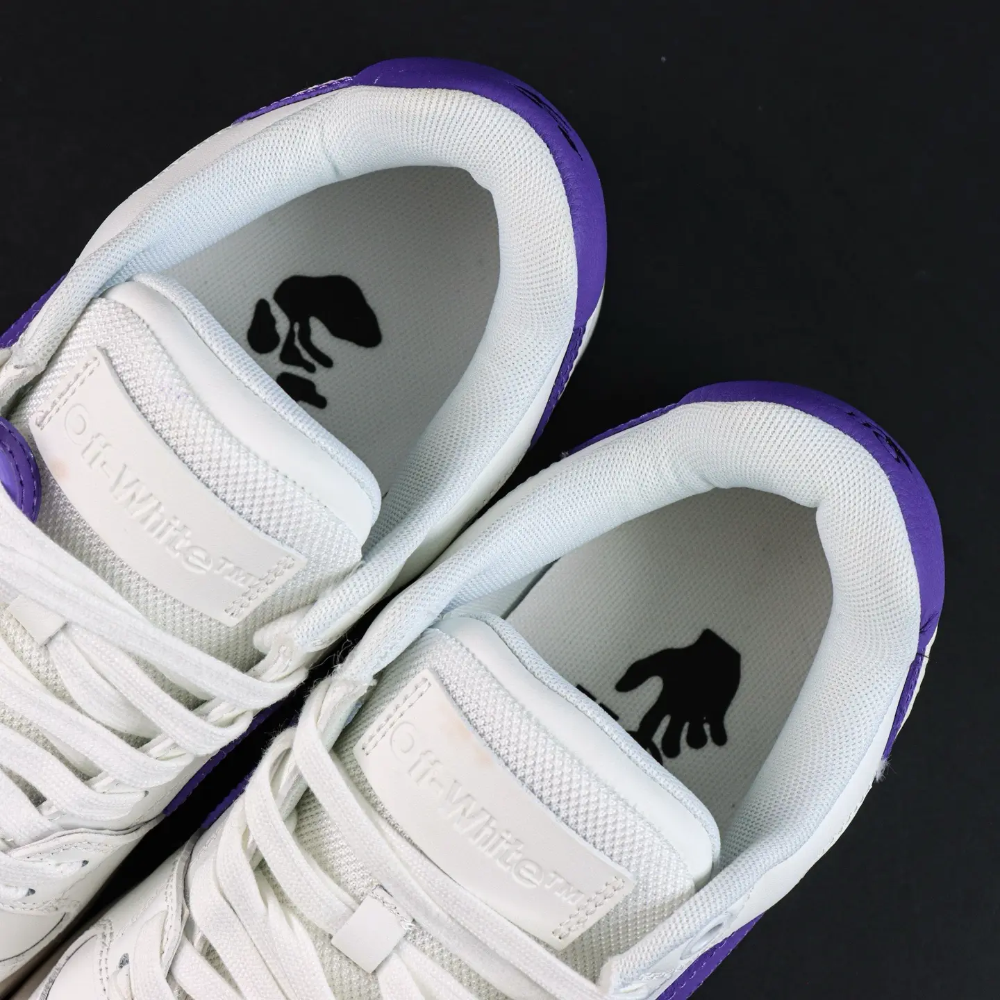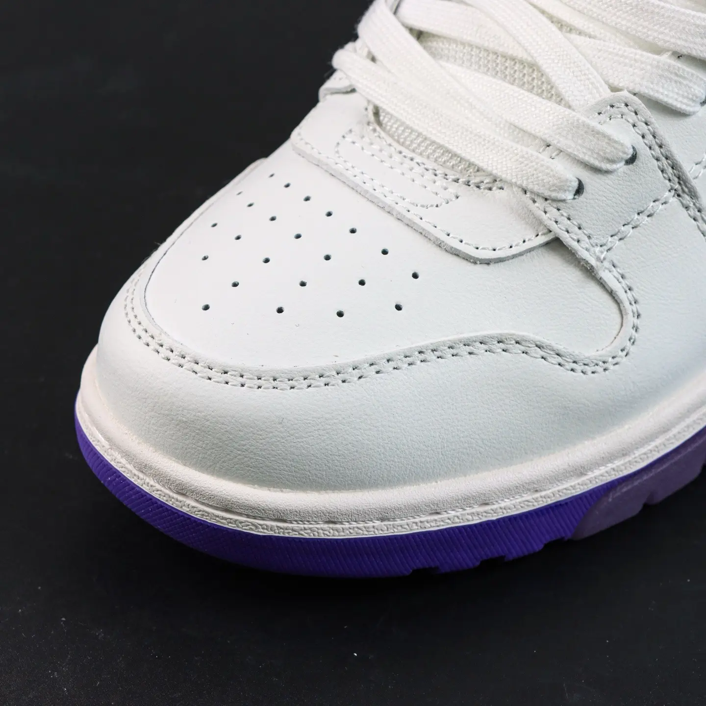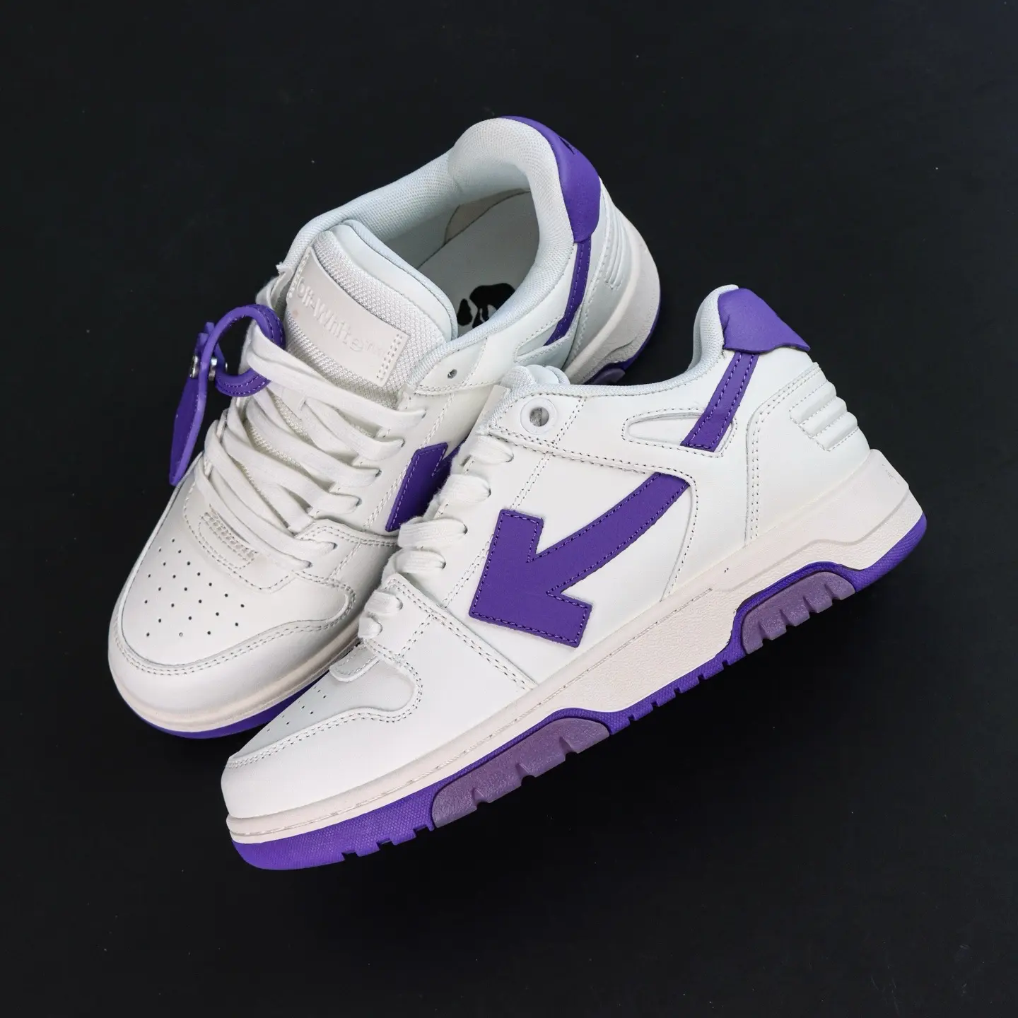 OFF-WHITE Out Of Office Leder-Sneaker, lässig, niedrig geschnitten, Premium-Version in Lila und Weiß