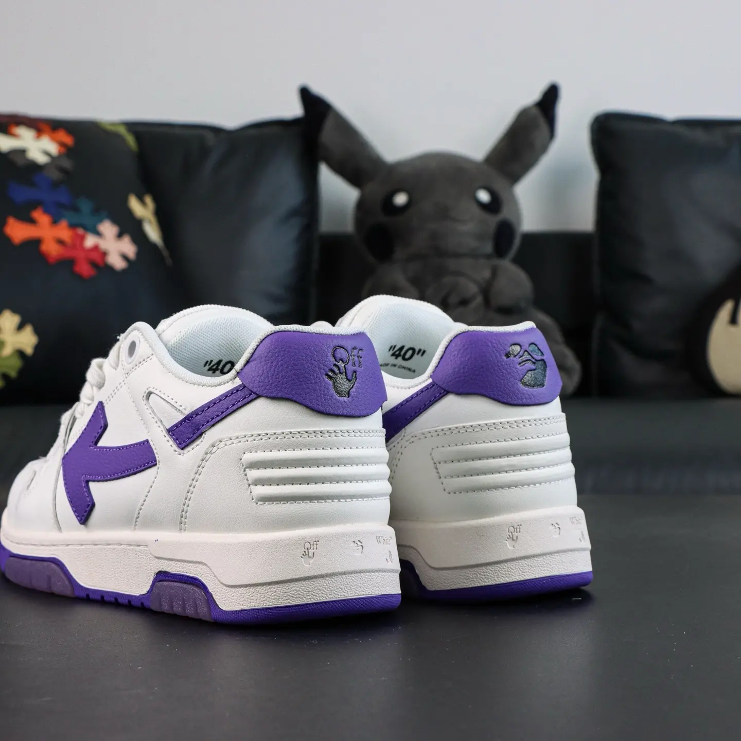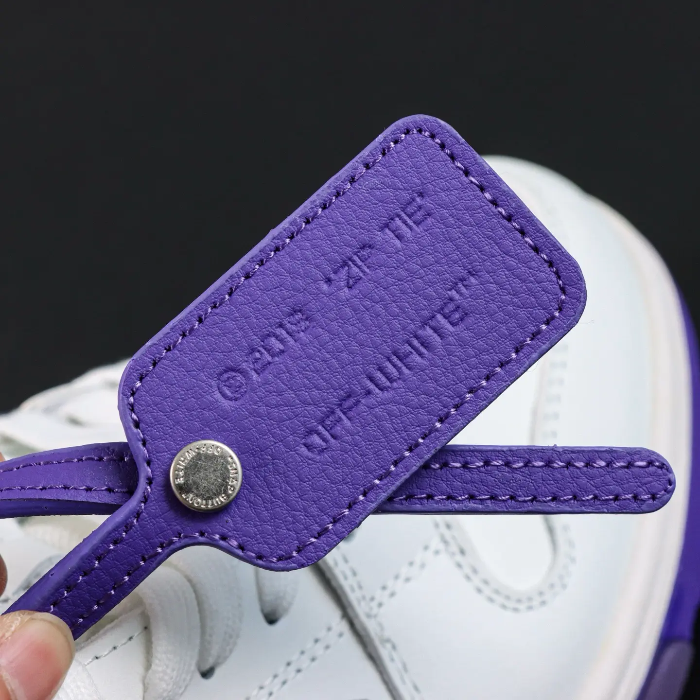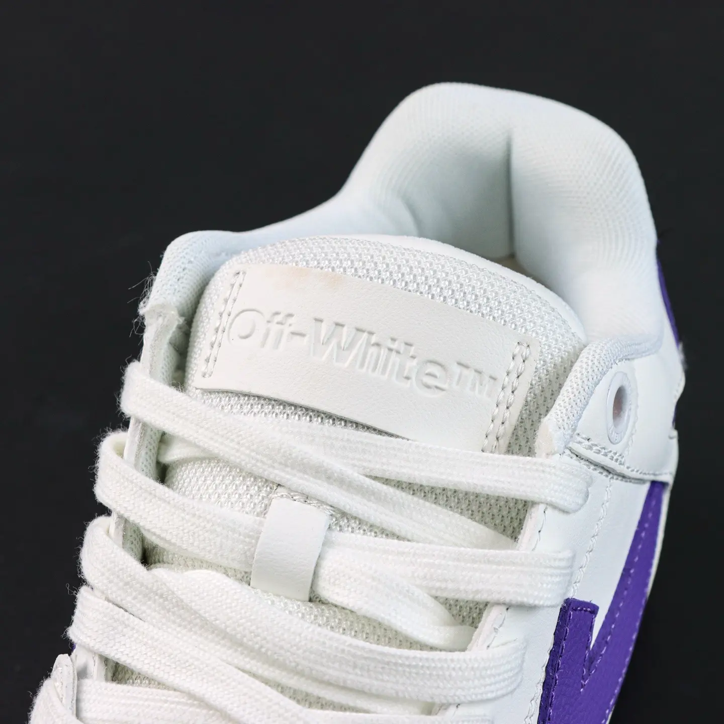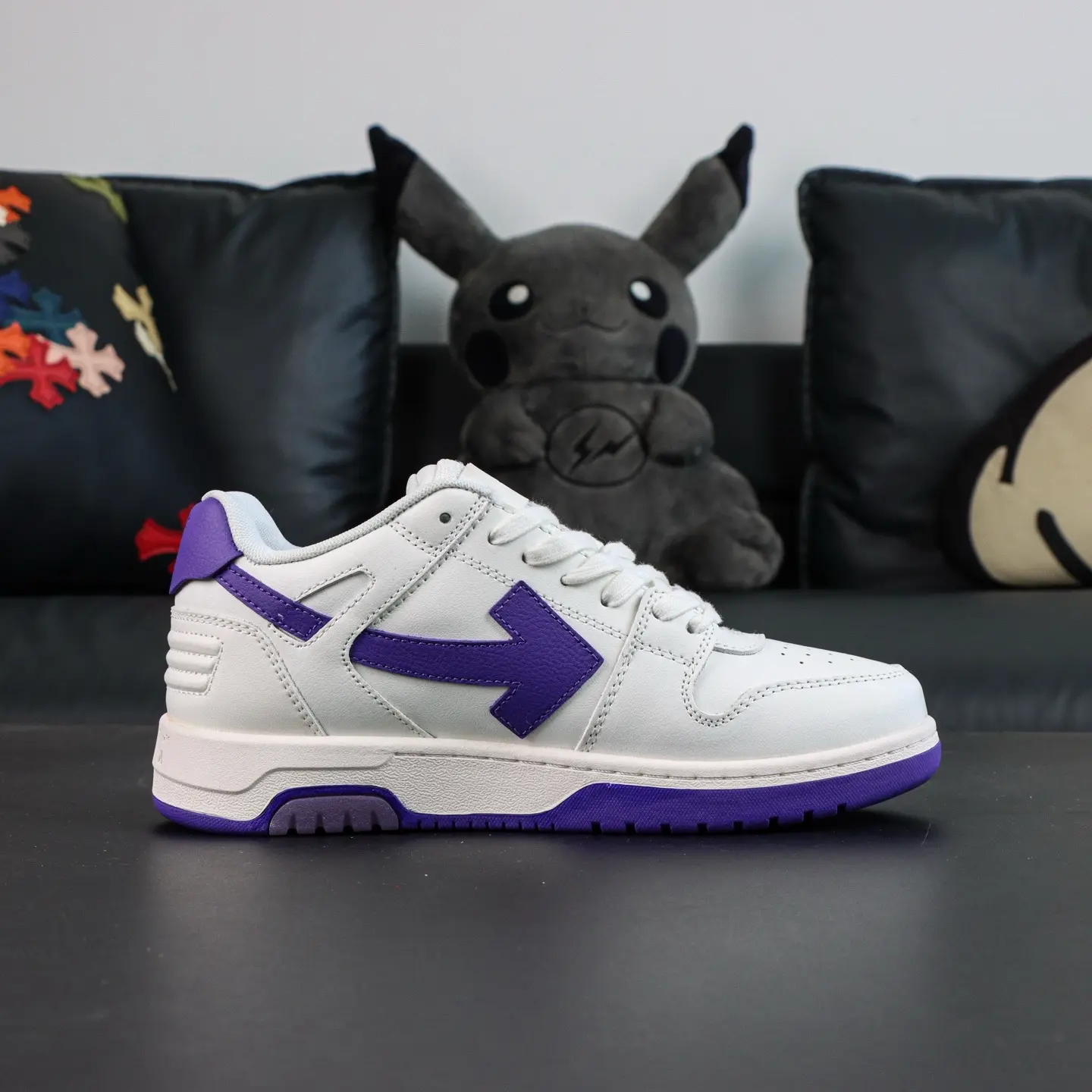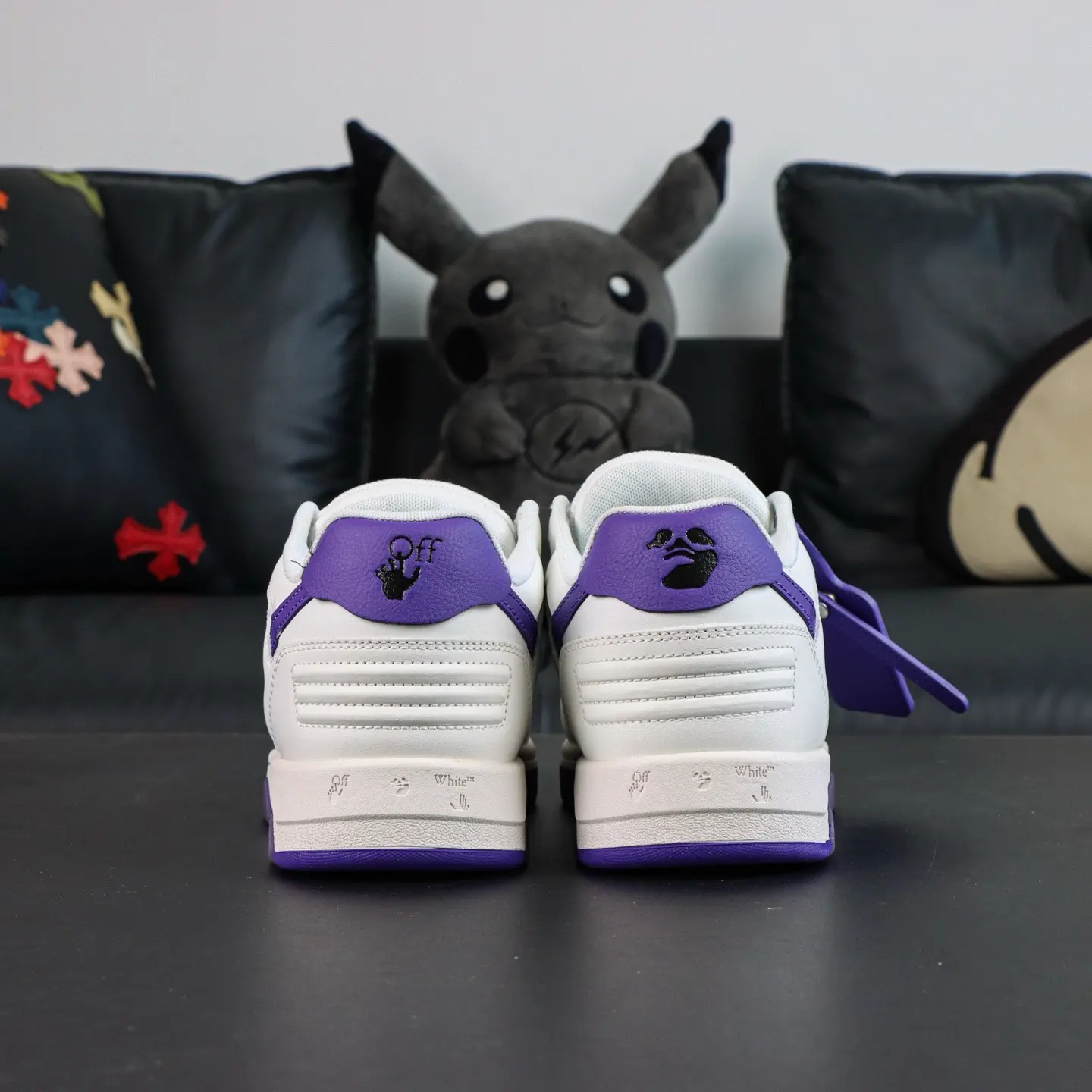 OFF-WHITE Out Of Office Leder-Sneaker, lässig, niedrig geschnitten, Premium-Version in Lila und Weiß