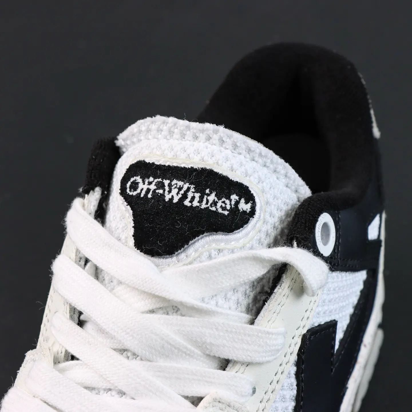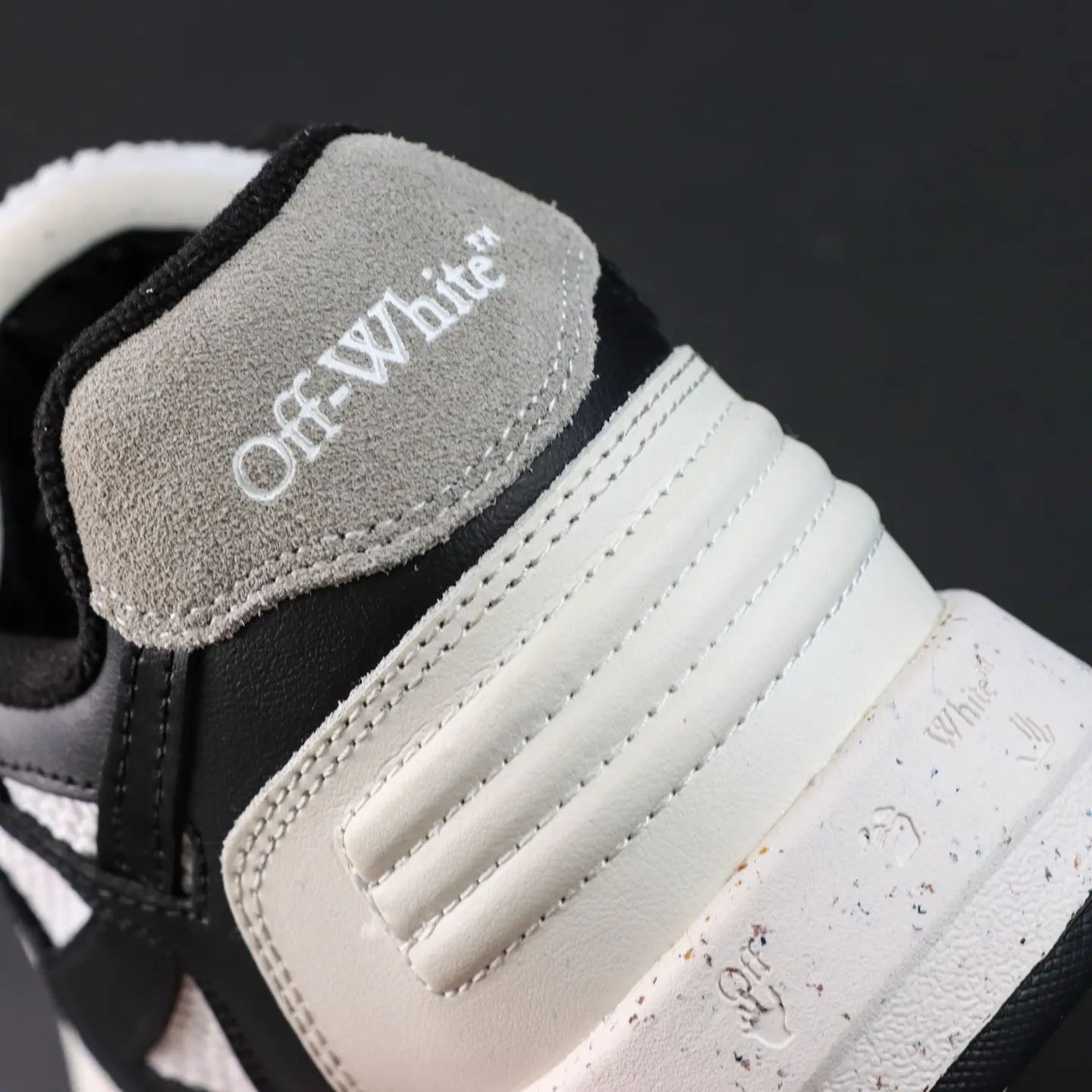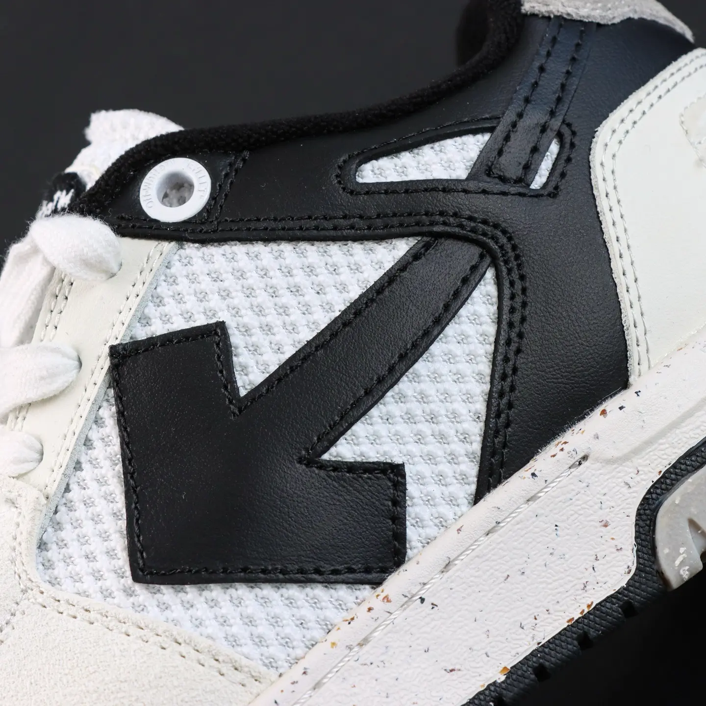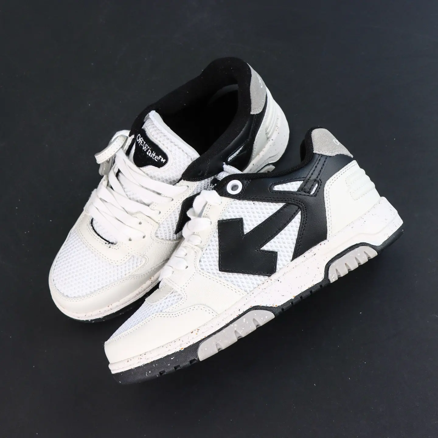OFF-WHITE Out Of Office Leder-Sneaker, Weiß/Grau/Schwarz, Pfeil-Design, Top-Sneaker