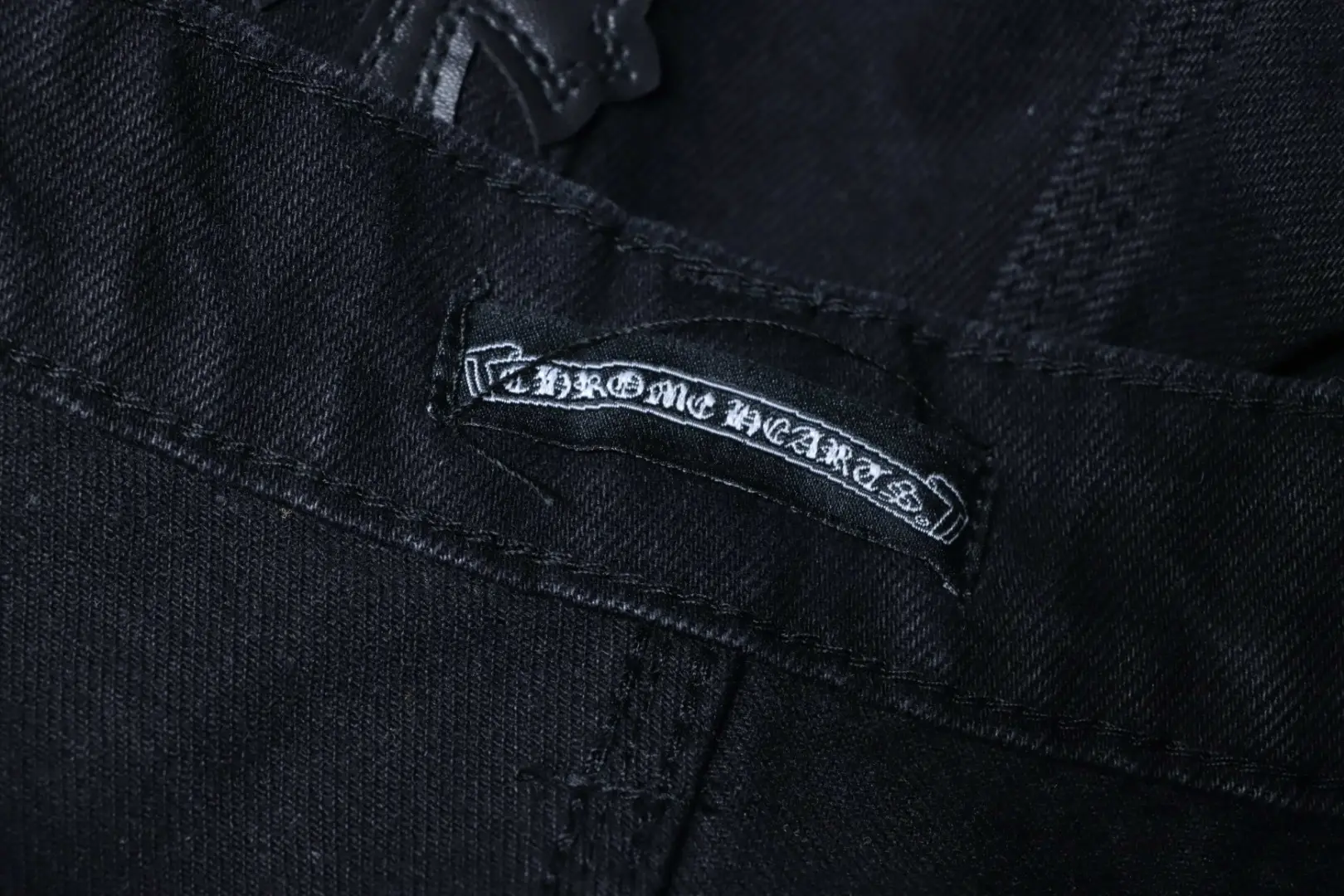Rundhals-T-Shirt mit überschnittenen Schultern und Brust-Stickpatch