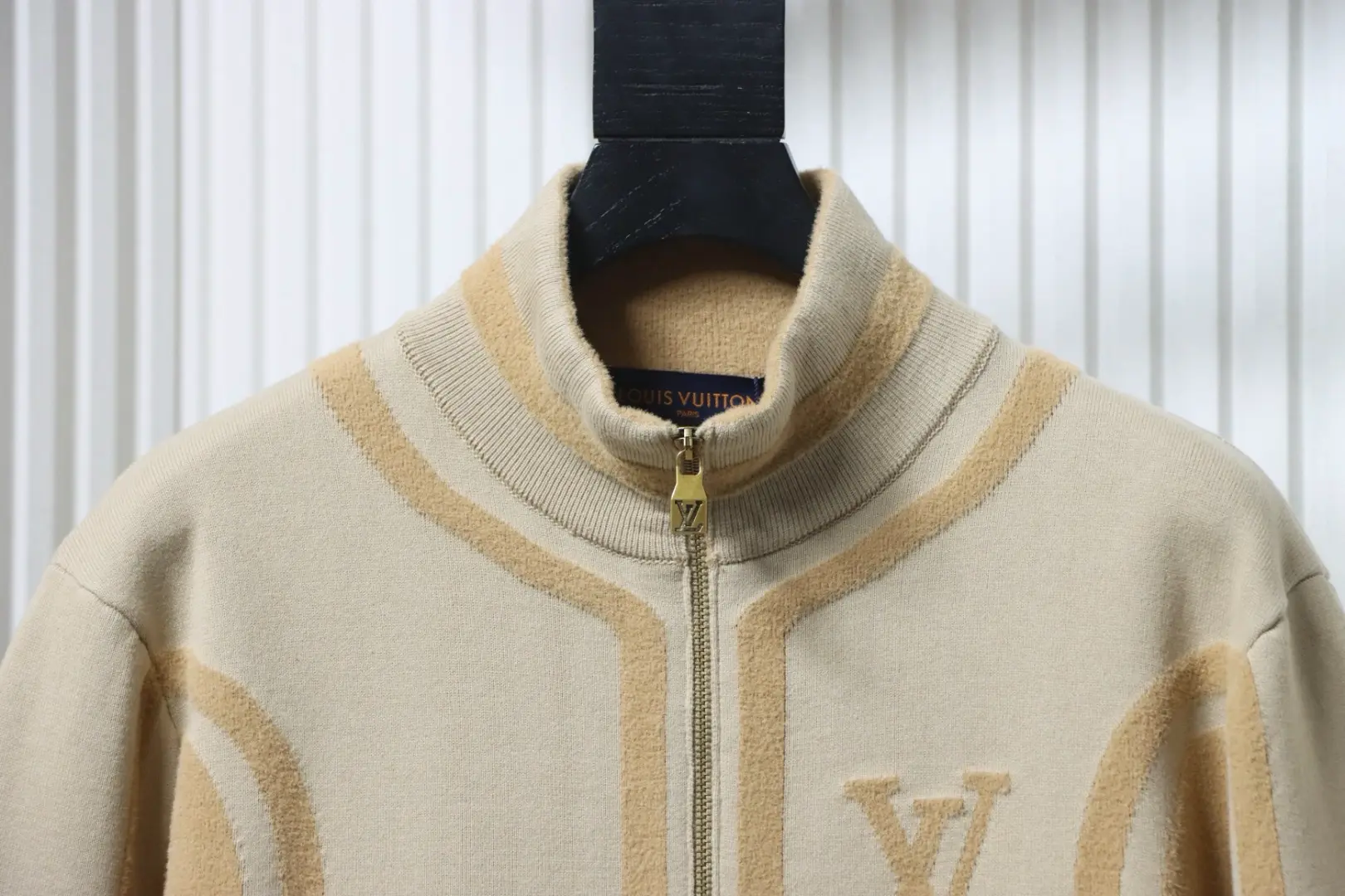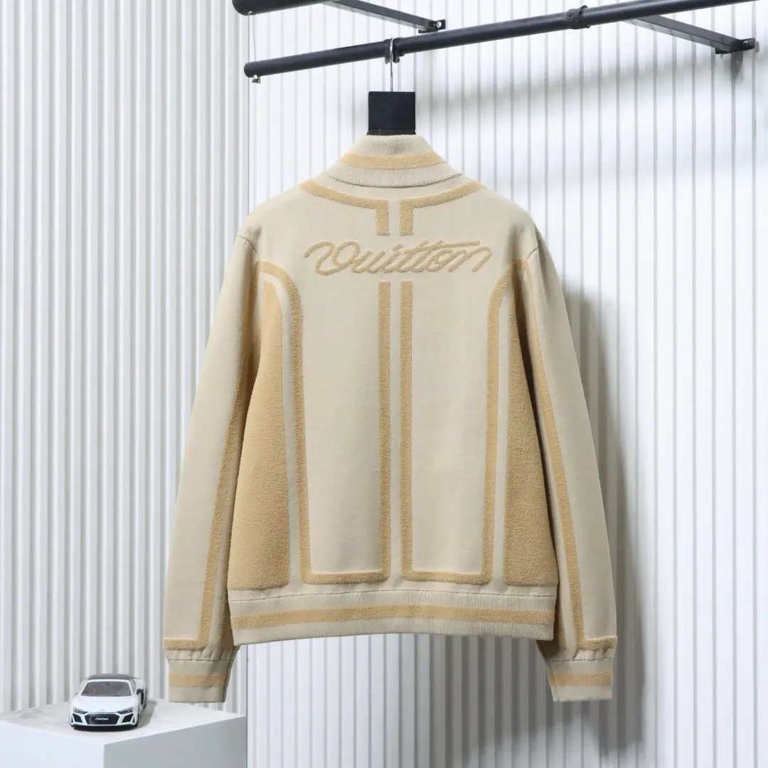 - Er verfügt über ein gelb-weißes Jacquardmuster, einen Stehkragen, einen speziell angefertigten Reißverschluss aus reinem Kupfer (Größe 5) und ist ein Originaldesign. Alle Etiketten und Accessoires sind im Lieferumfang enthalten.