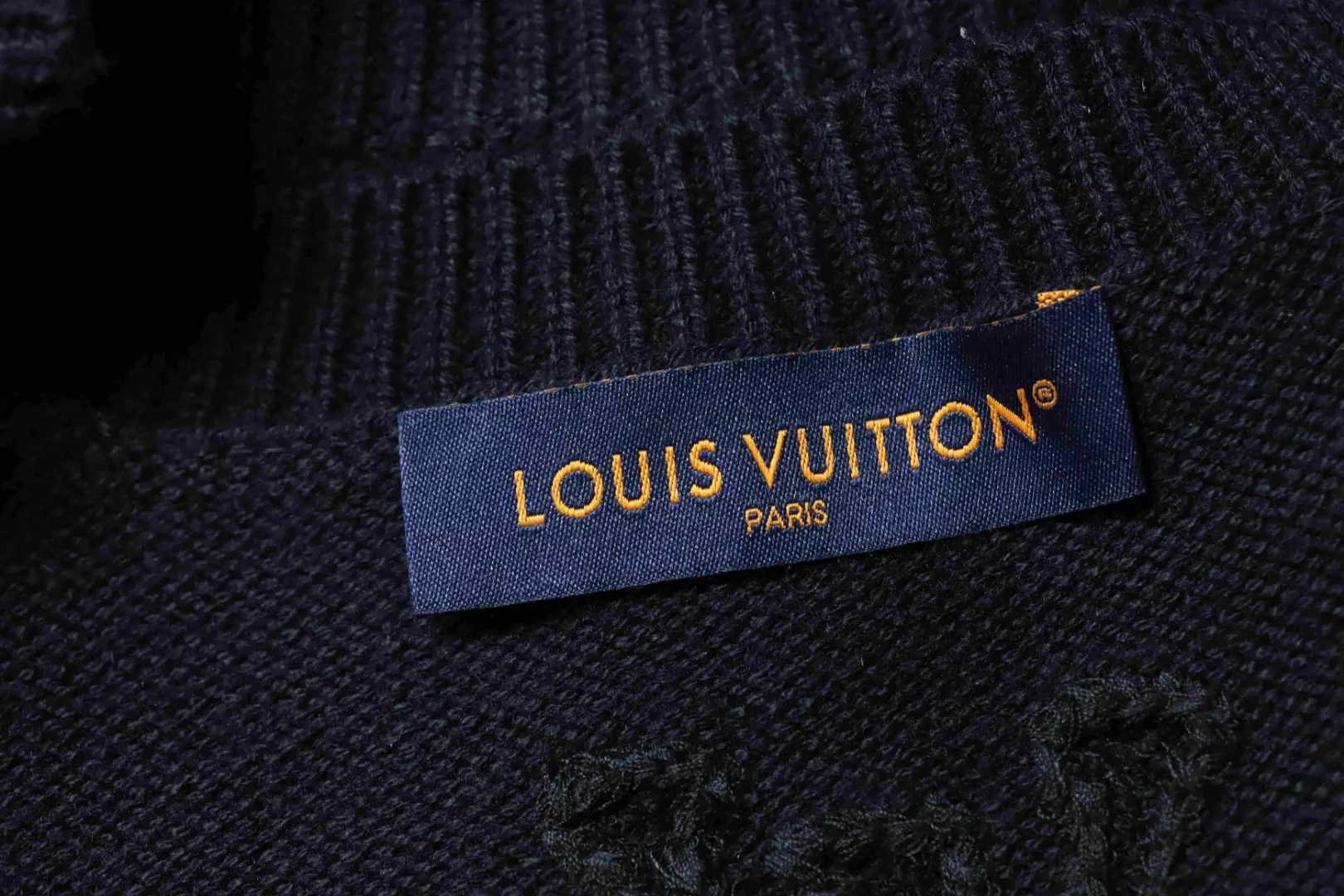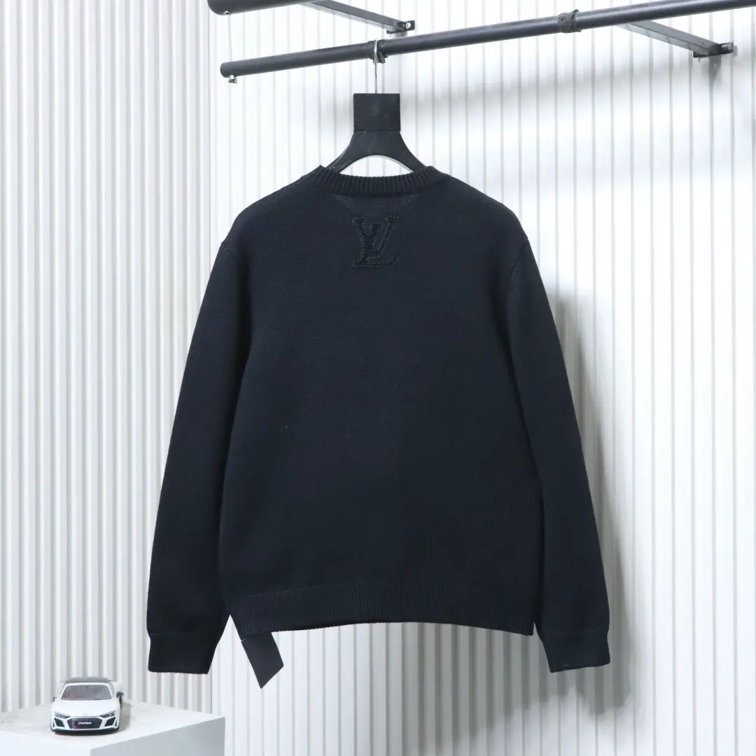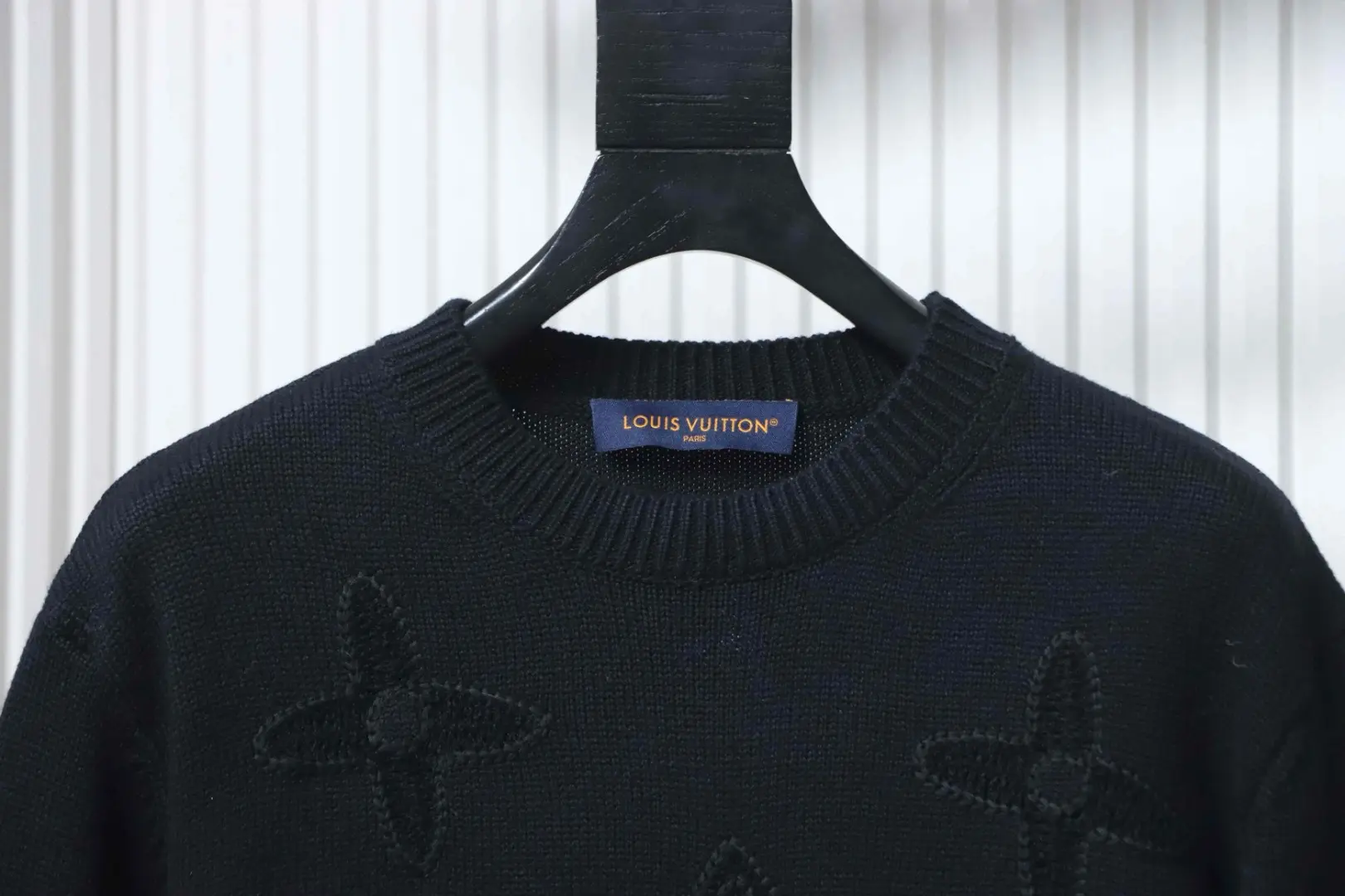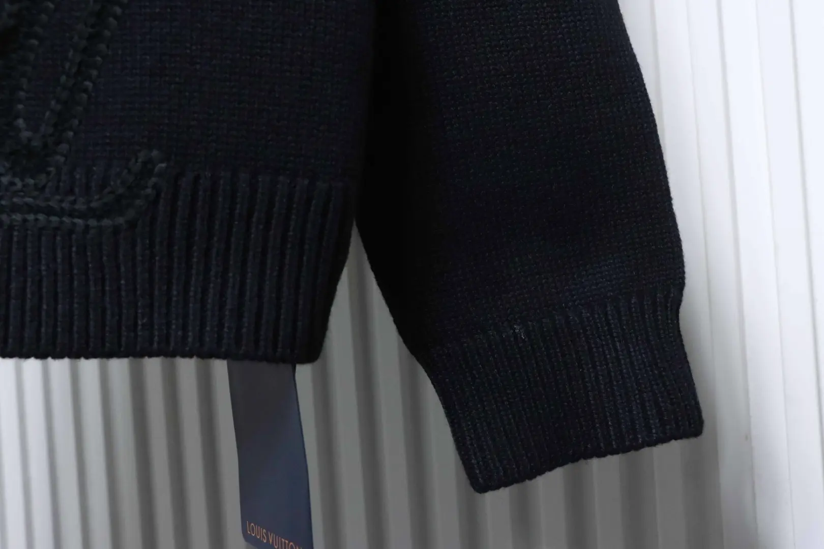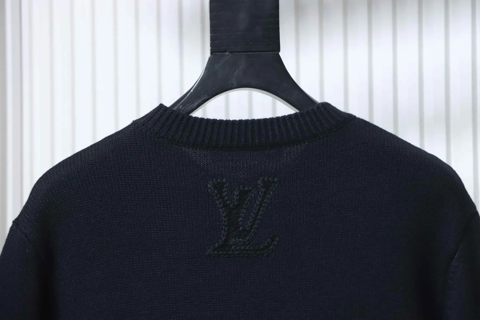 Pullover aus dunklem Jacquard-Stoff mit gesticktem Monogrammmuster