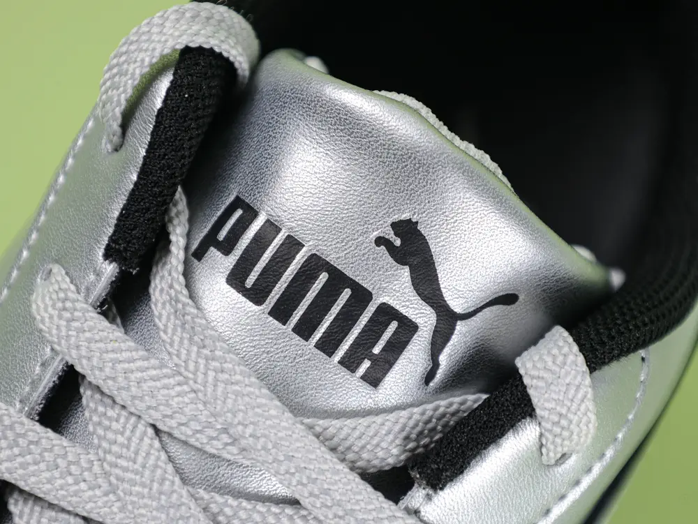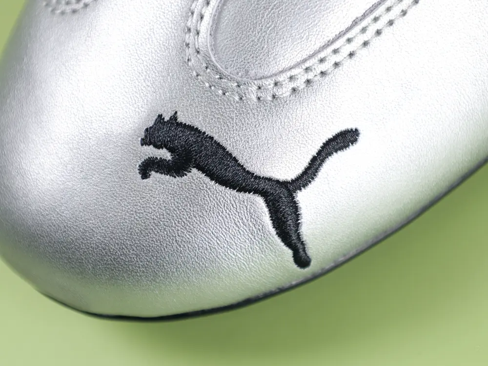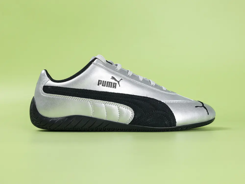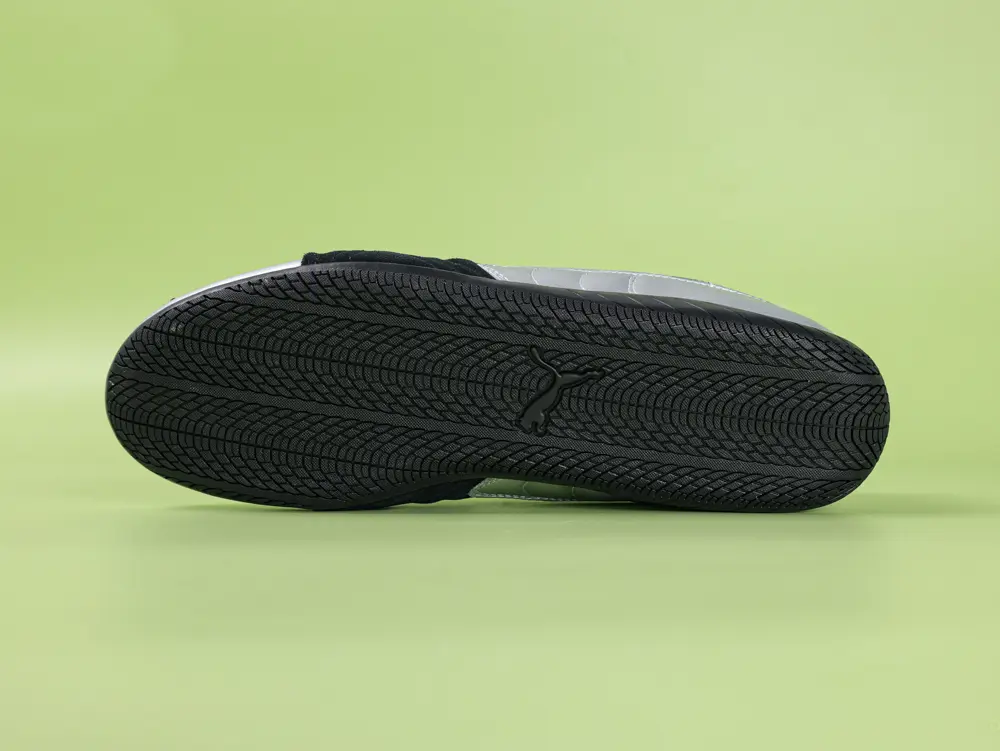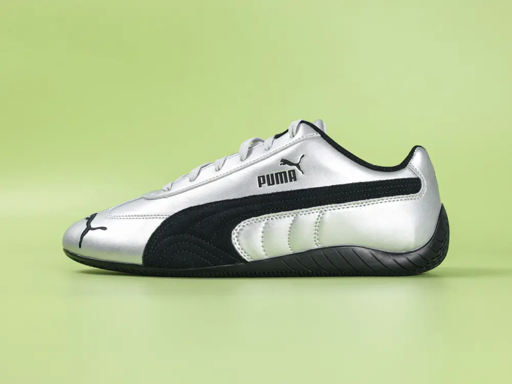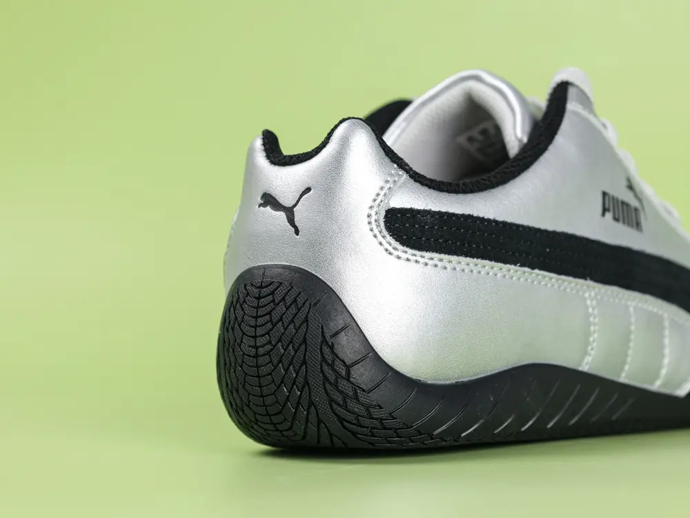 Die PUMA Speedcat-Serie ist von der Rennsportkultur inspiriert und besticht durch ihr Design, das an die Schuhe der Formel-1-Fahrer angelehnt ist. Dieses Modell in Schwarz und Silber strahlt trotz seiner dezenten Eleganz Dynamik aus – eine Anspielung auf die Geschwindigkeit und Leidenschaft der Rennstrecke.