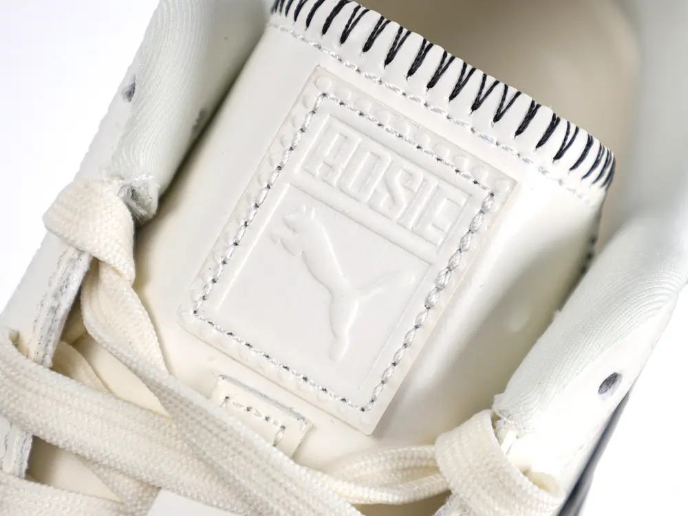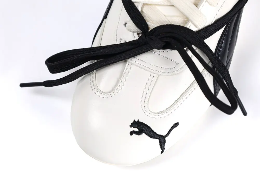 PUMA x ROSÉ Speedcat Lea Warmweiß Schwarz ist eine sorgfältige Zusammenarbeit zwischen PUMA und der berühmten Marke ROSÉ. Warmes Weiß und klassisches Schwarz werden geschickt kombiniert, um eine schlichte, aber edle optische Wirkung zu erzielen.