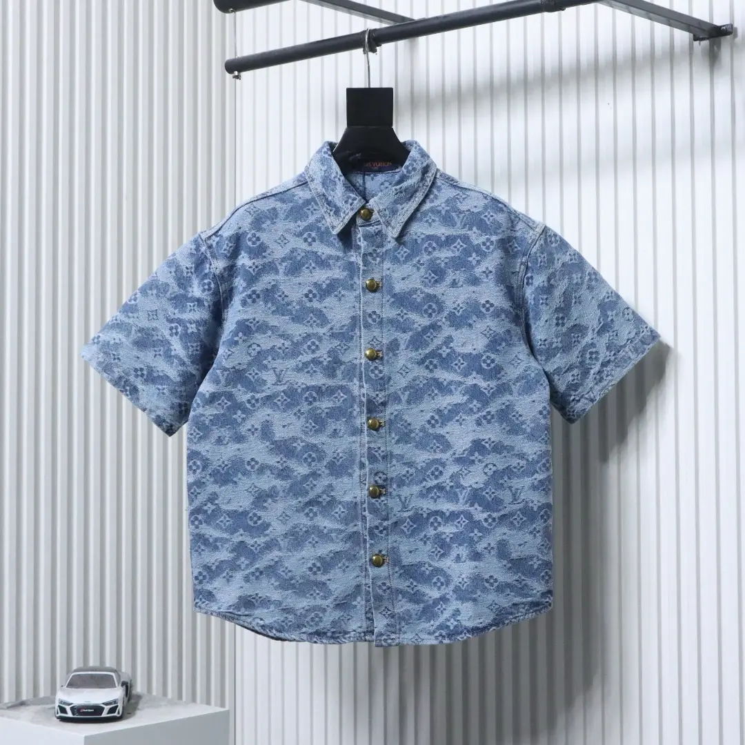 Set aus kurzärmeligem Hemd und Shorts aus Monogram-Jacquard-Denim