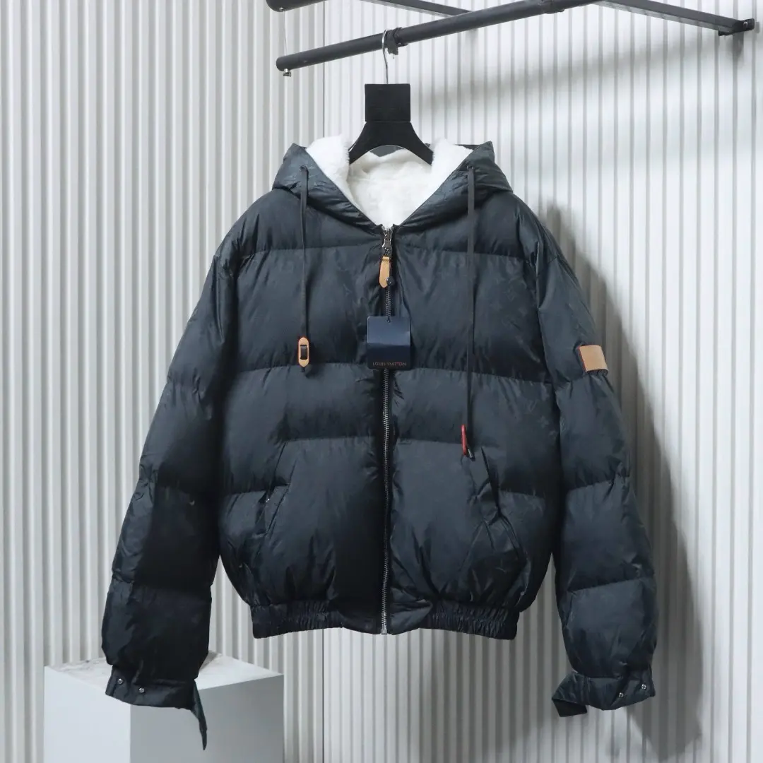 SKI Ski Kollektion Dunkel gemusterte Daunenjacke mit Kapuze und Ärmeln, Daunenjacke mit Kapuze