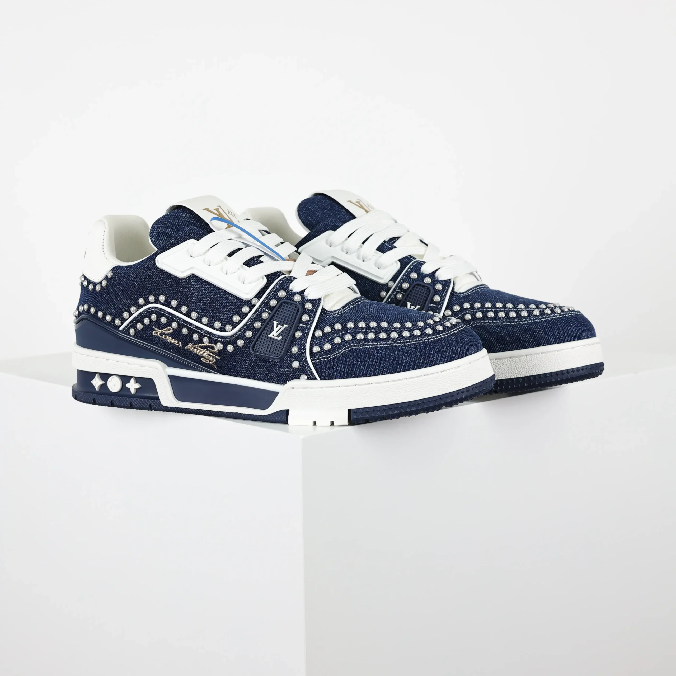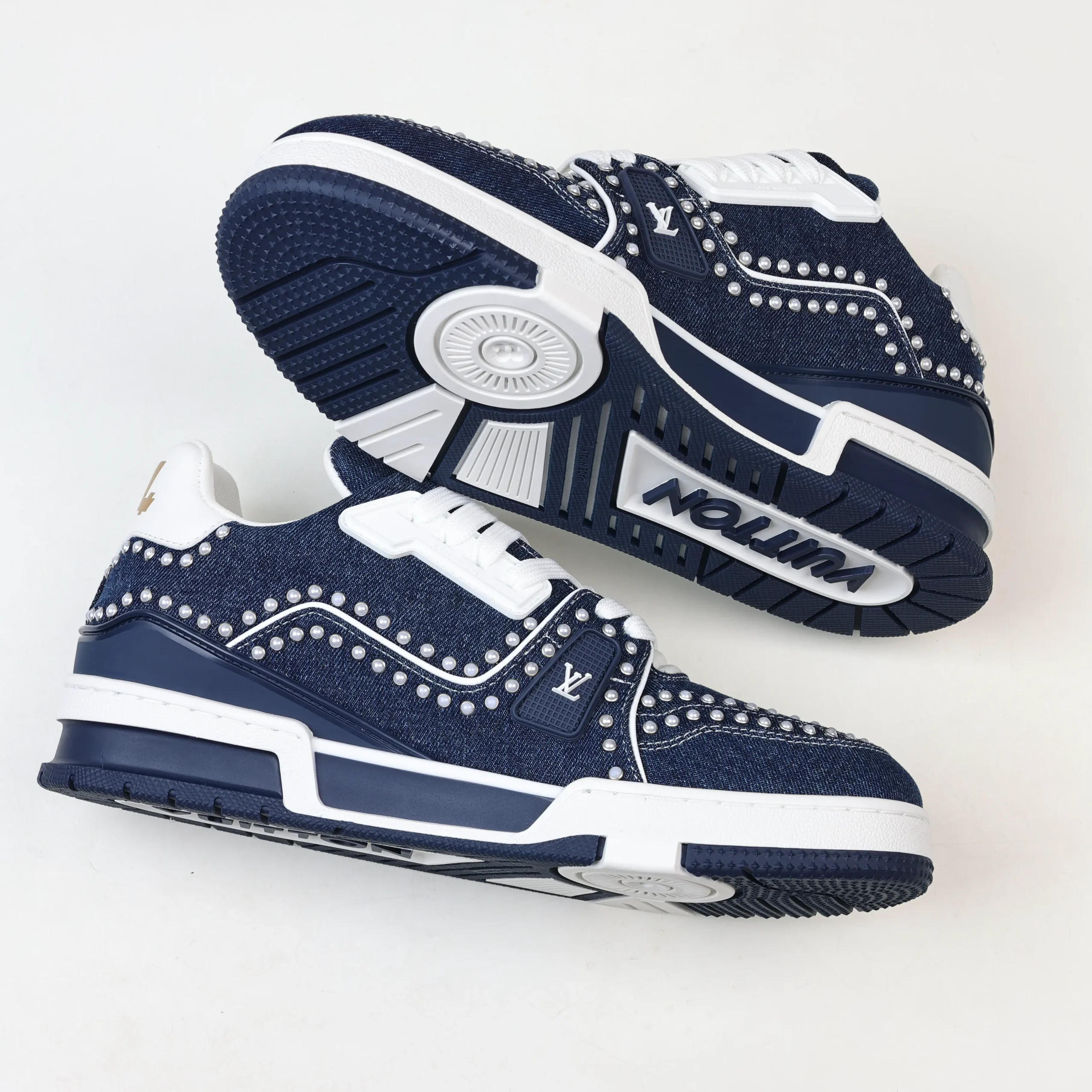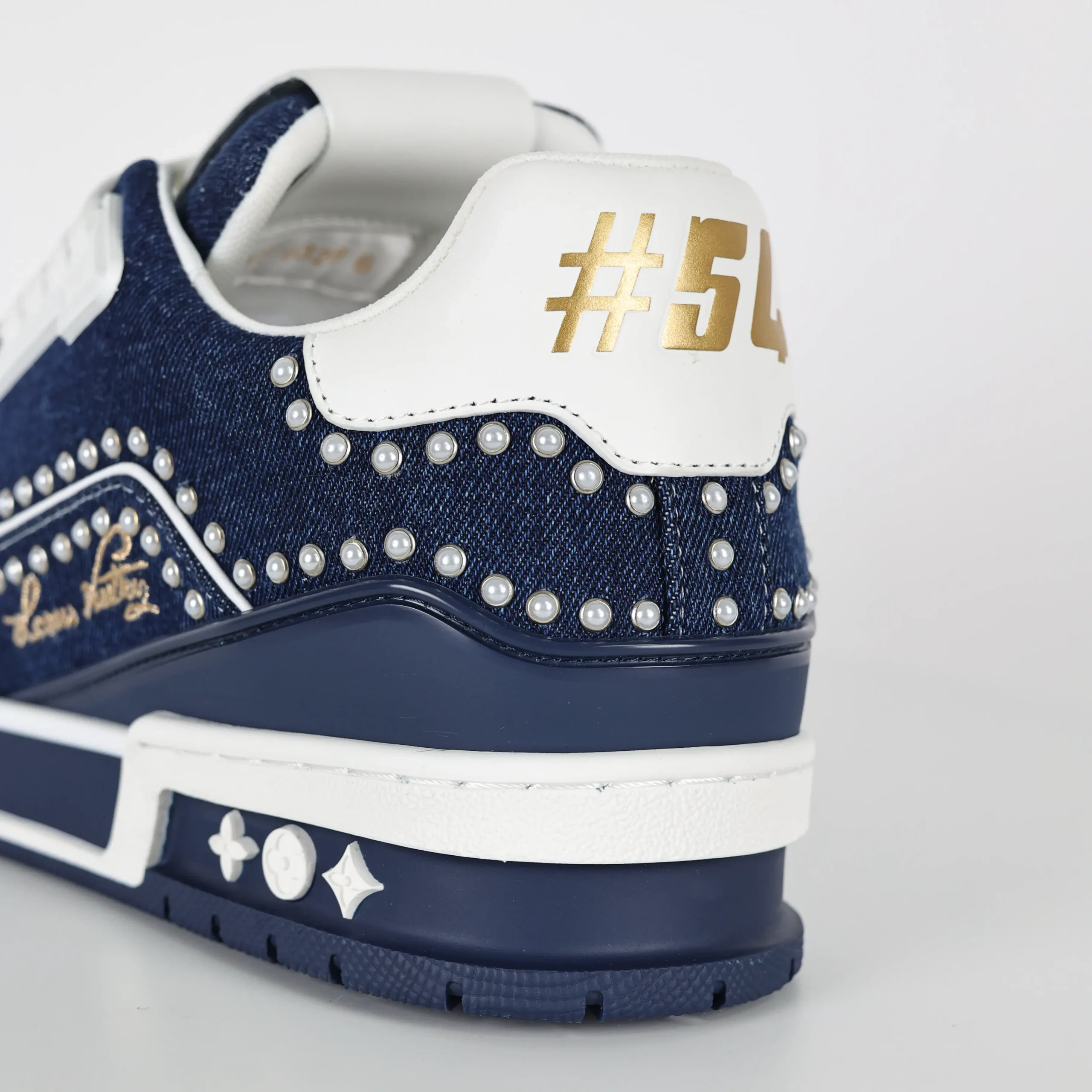 Trainer Monogram Sneakers aus genarbtem Kalbsleder, weißem und rotem Lackleder