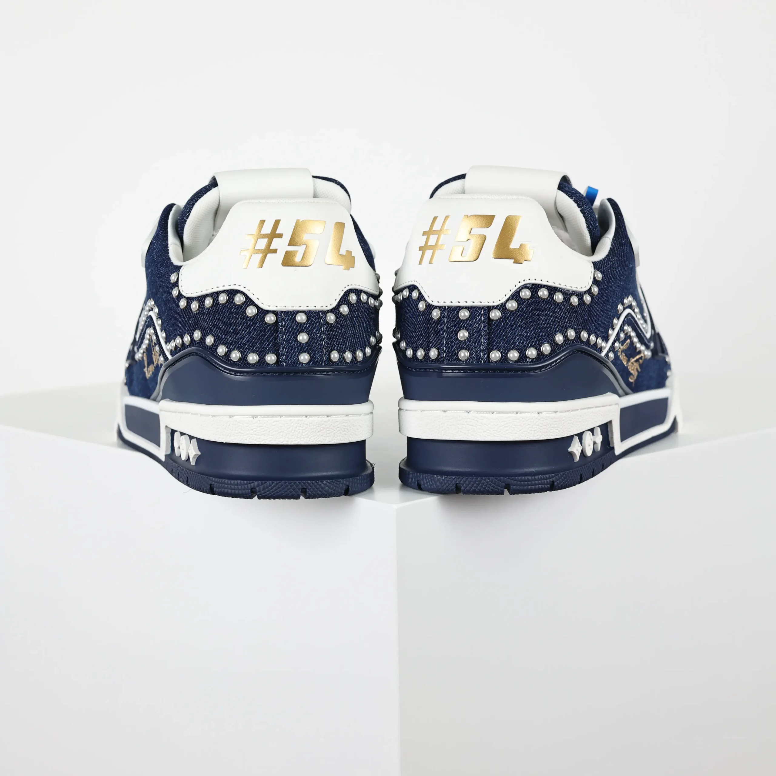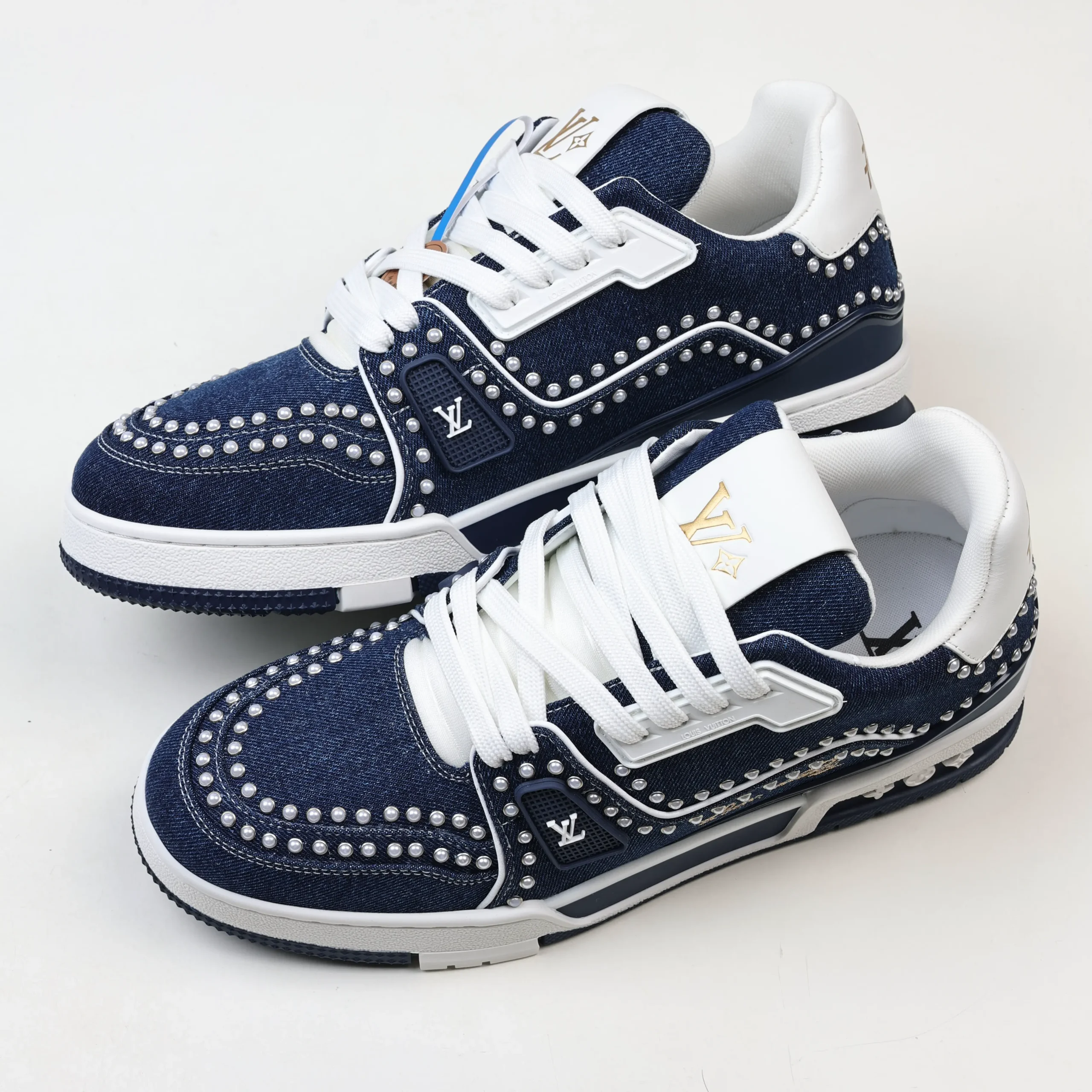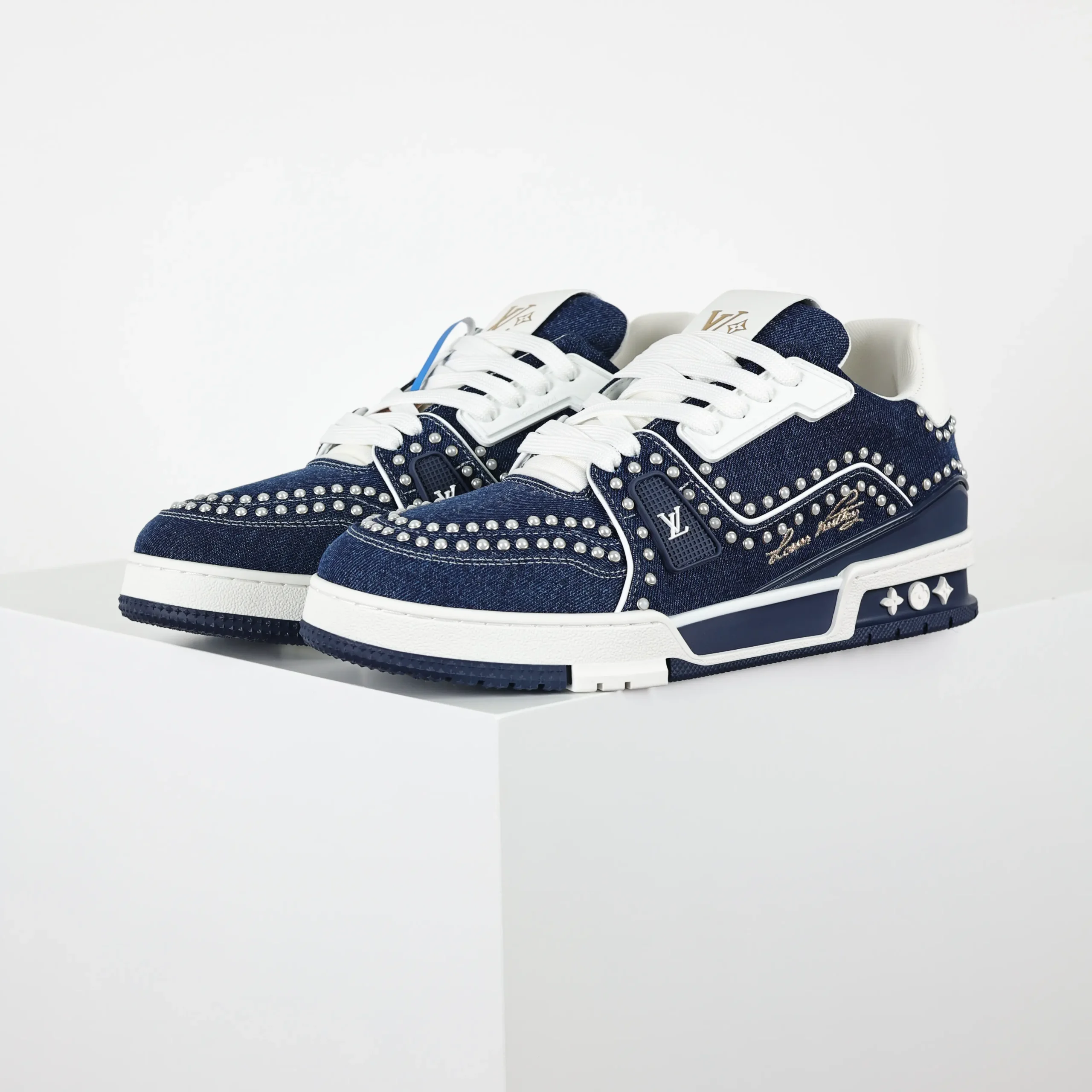 Trainer Monogram Sneakers aus genarbtem Kalbsleder, weißem und rotem Lackleder