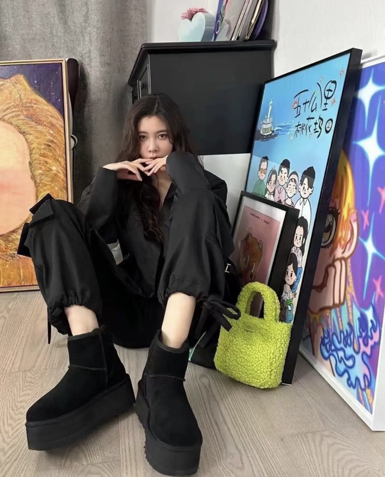 UGG Mini-Schuhe mit dünner Sohle, kurz, 1,5 cm, Grau